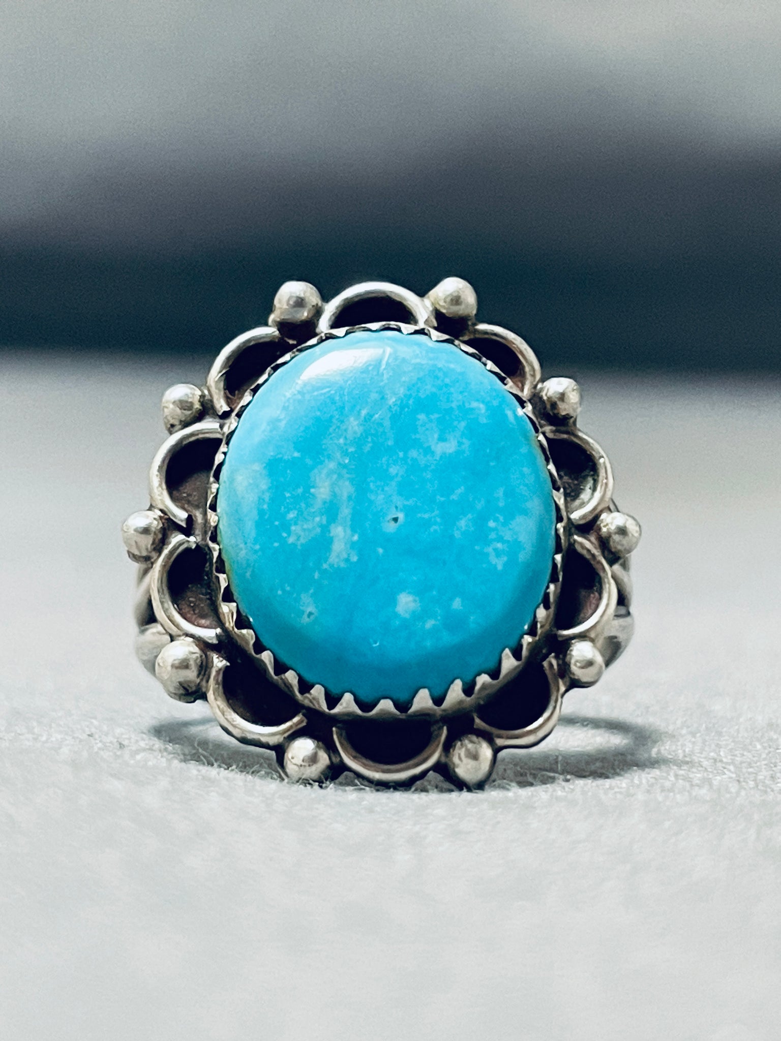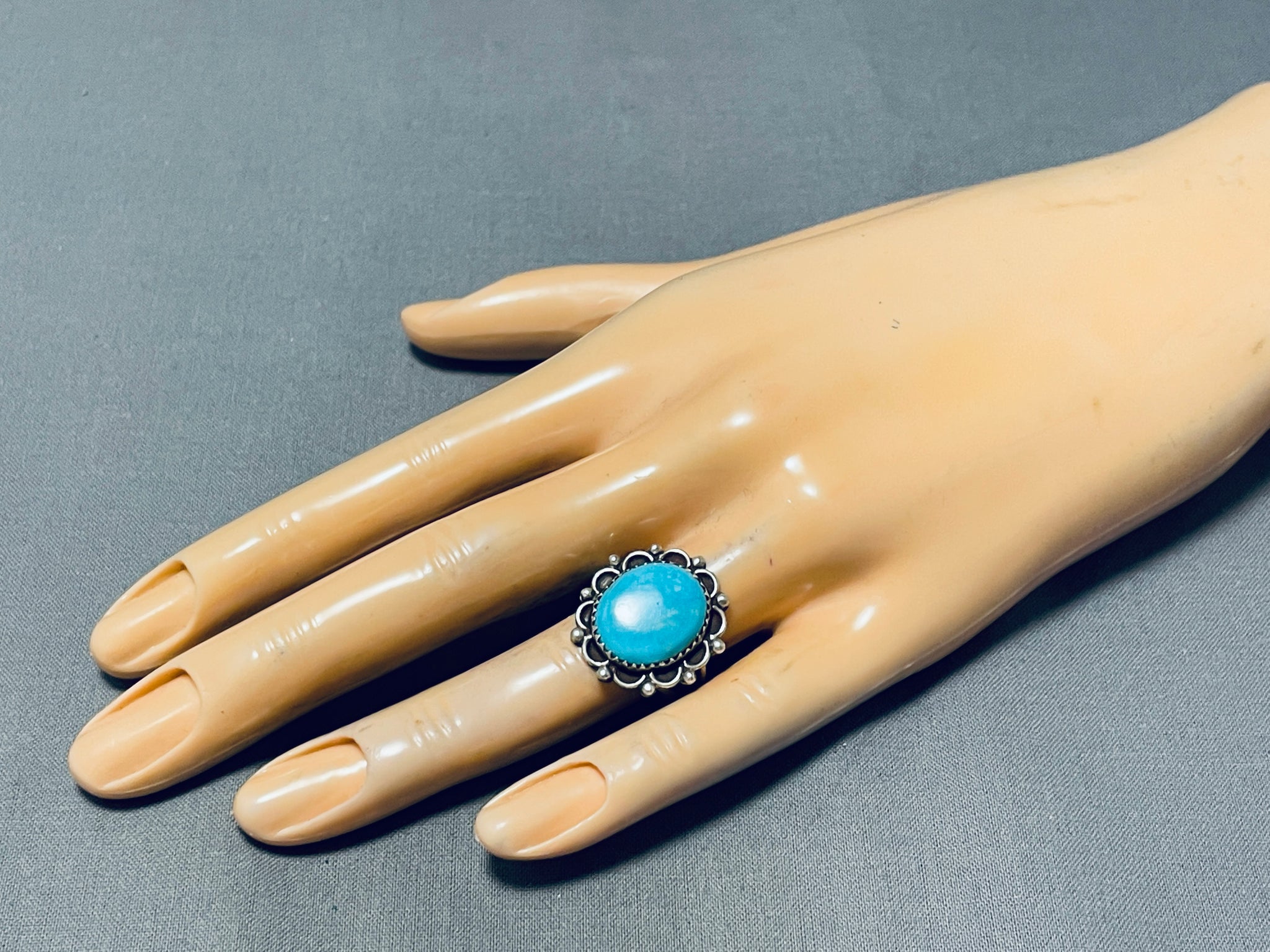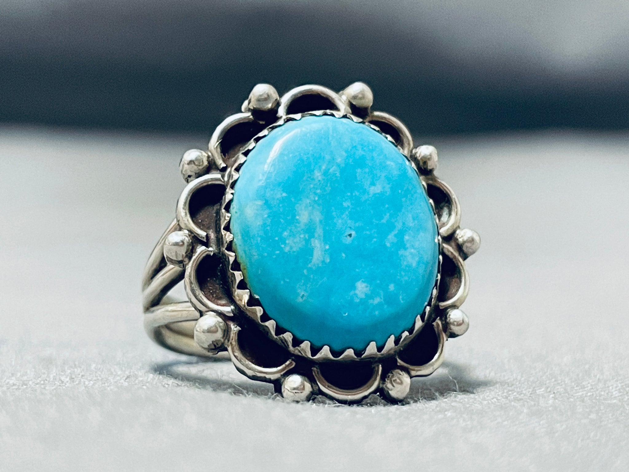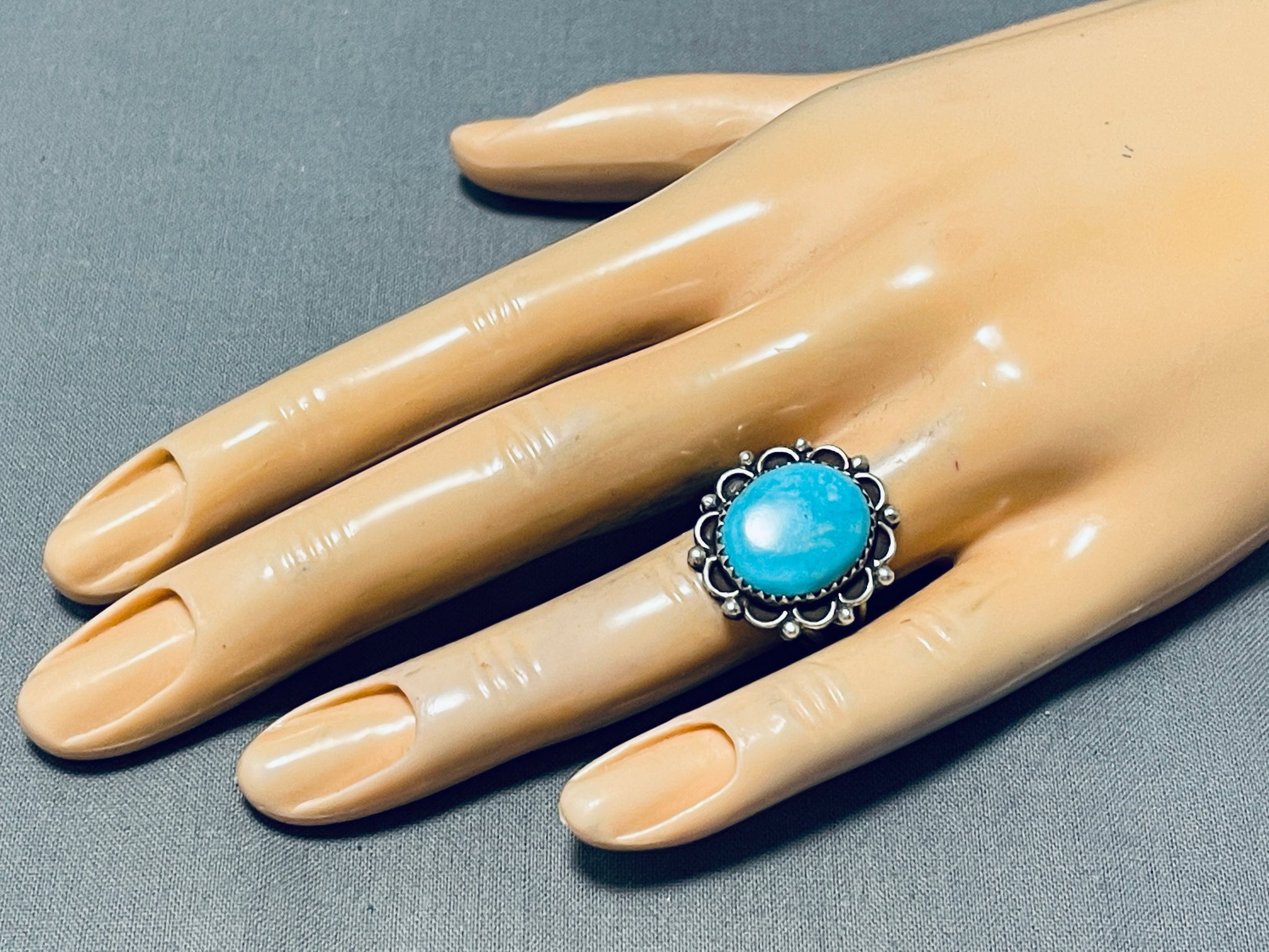 Dynamic Vintage Native American Navajo Blue Gem Turquoise Sterling Silver Ring Signed C. Bia