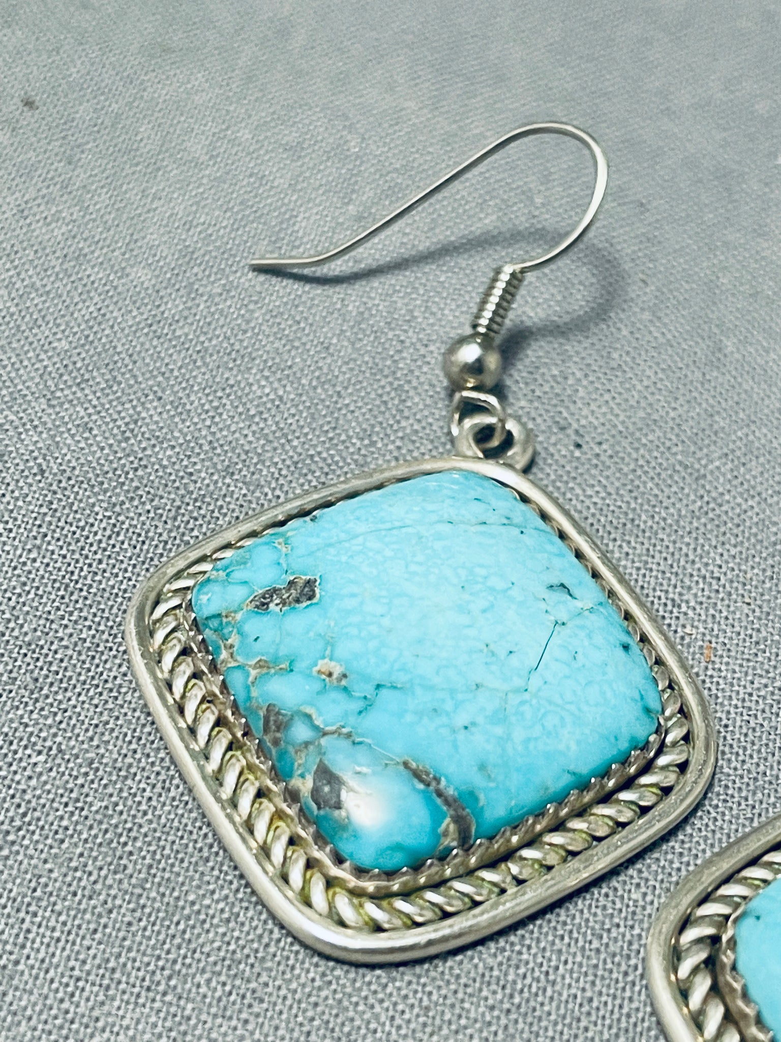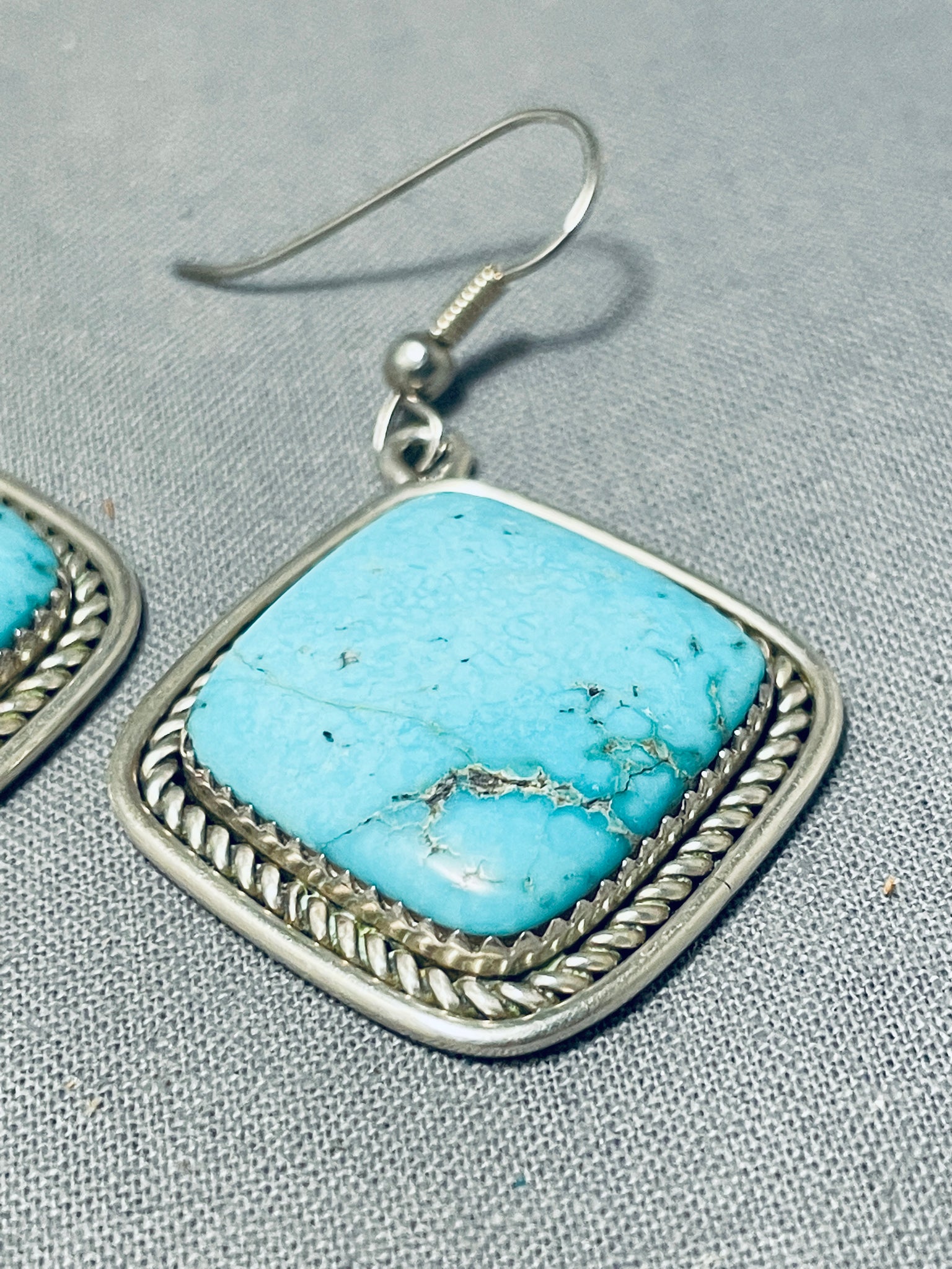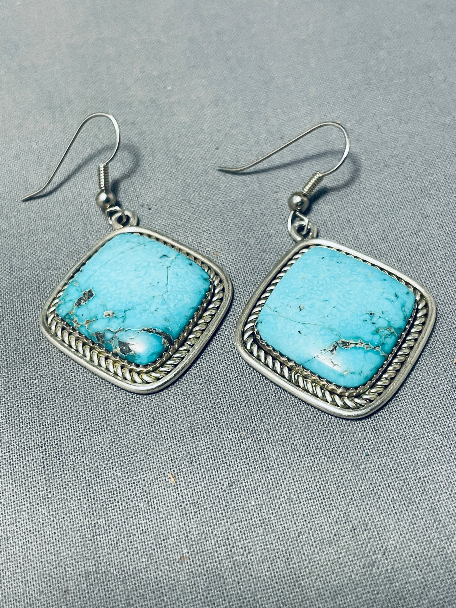 Dynamic Vintage Native American Navajo Kingman Turquoise Sterling Silver Earrings
