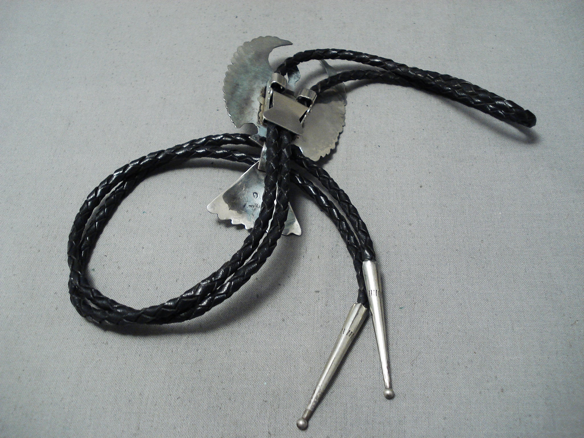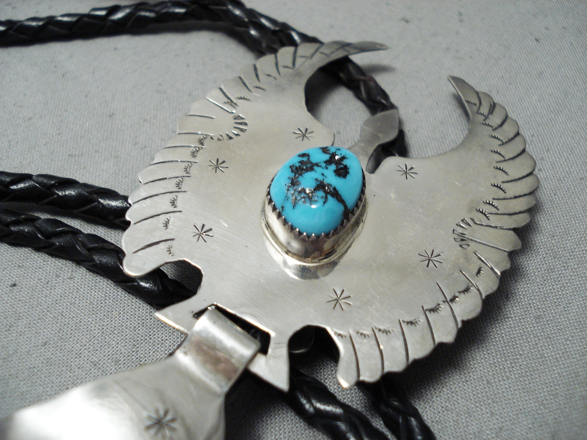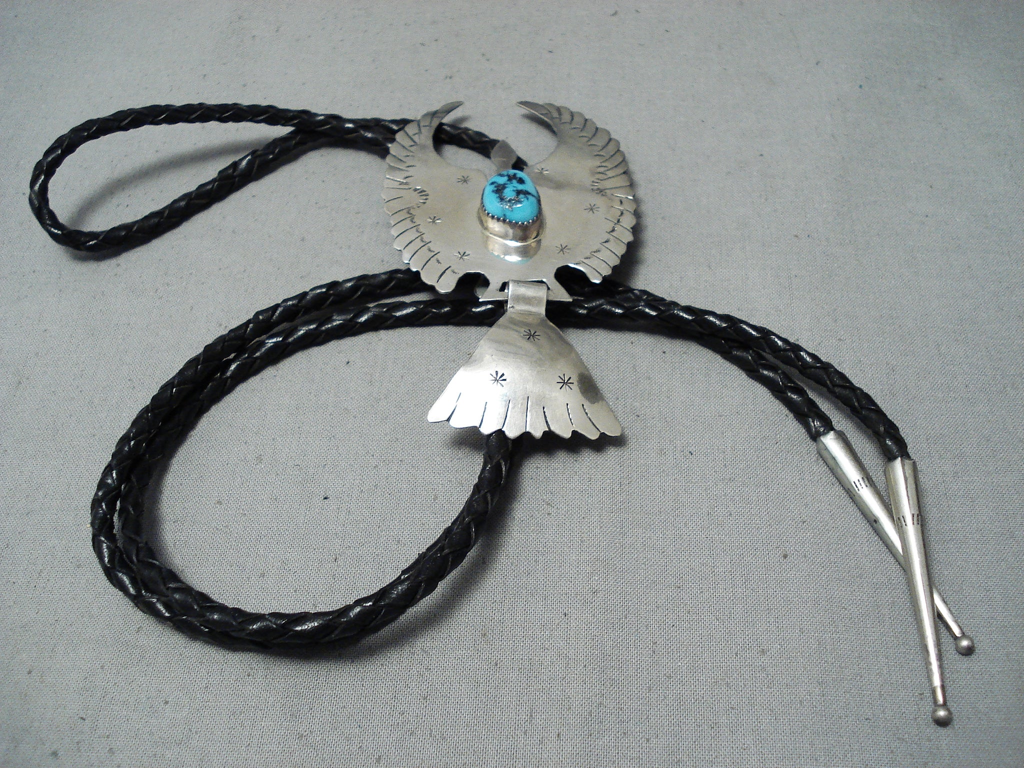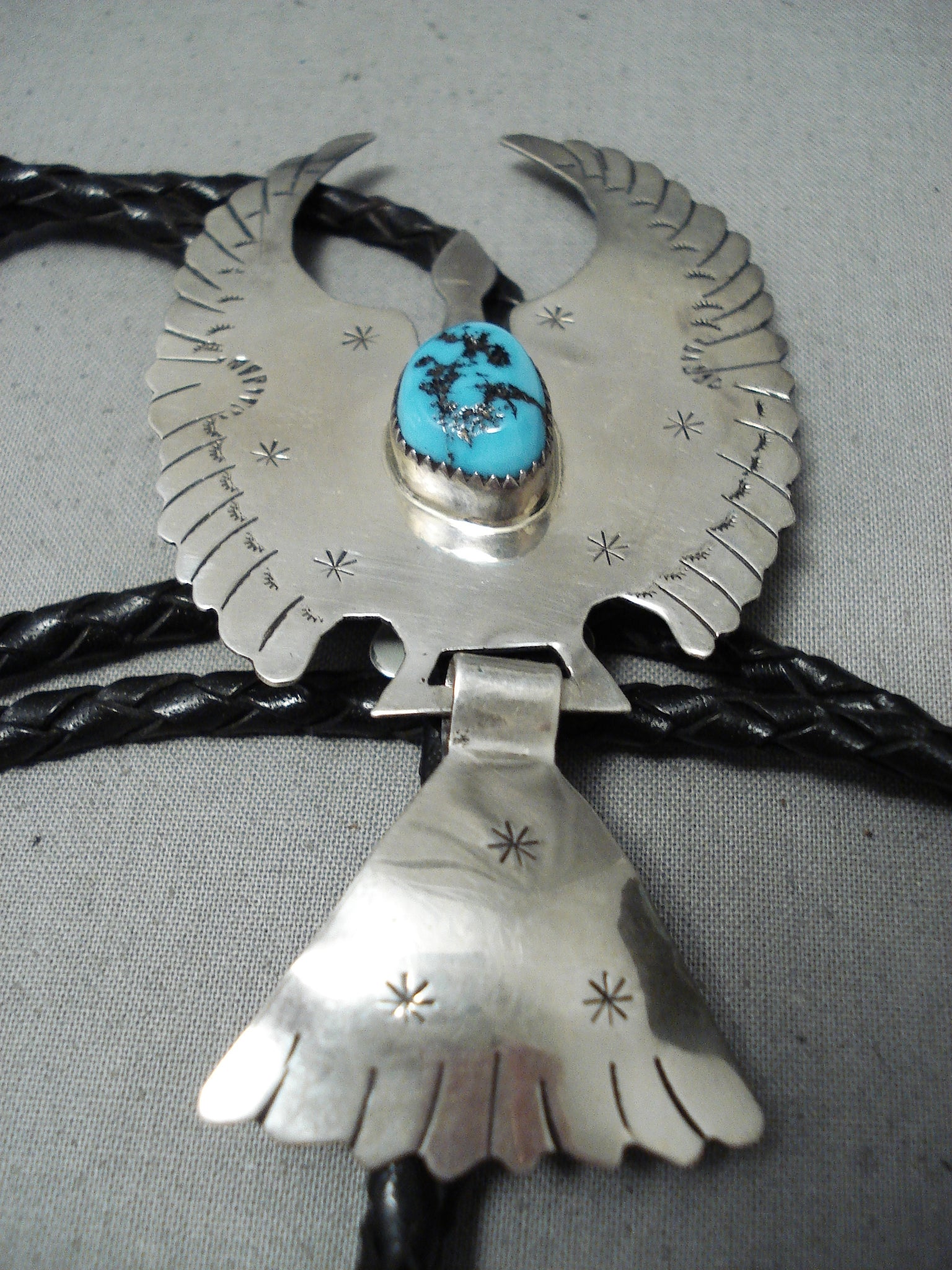 Dynamic Vintage Native American Navajo Sleeping Beauty Turquoise Sterling Silver Bolo Old