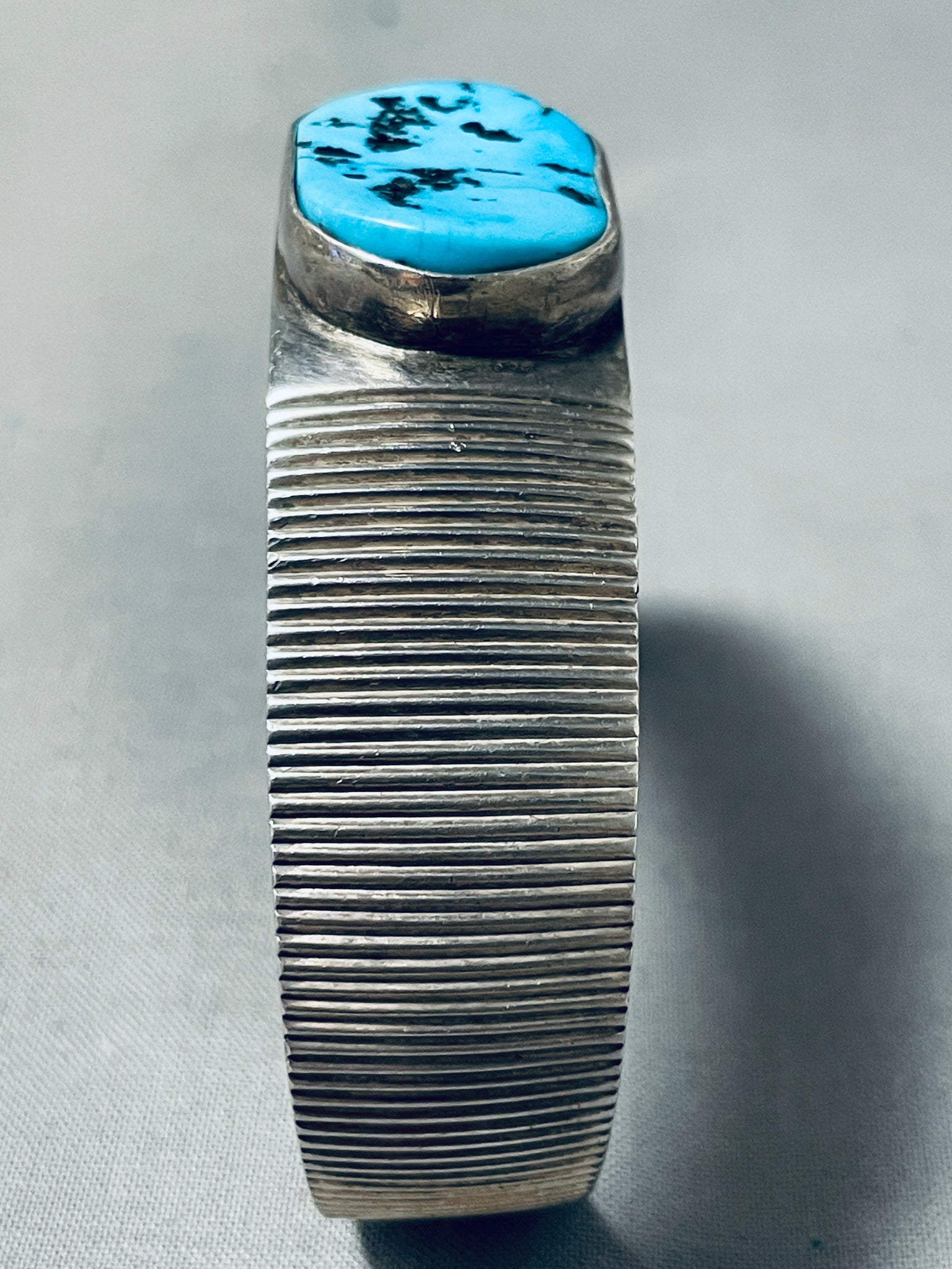 Dynamic Vintage Native American Navajo Sleeping Beauty Turquoise Sterling Silver Bracelet Signed