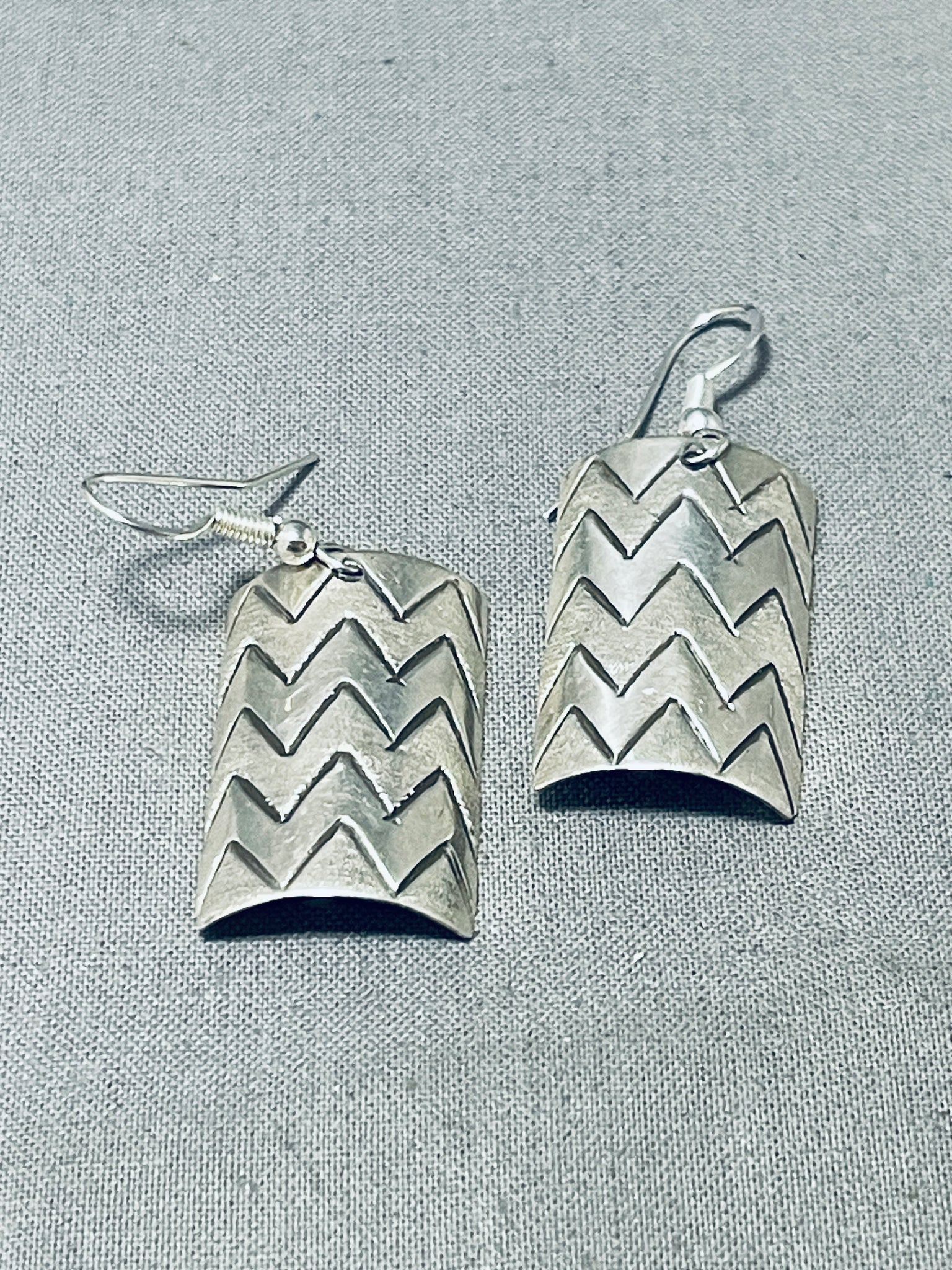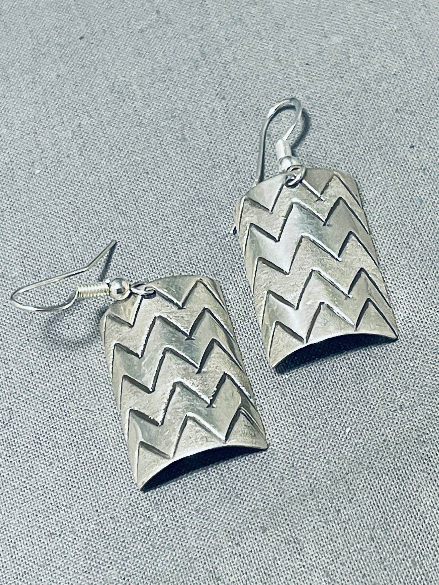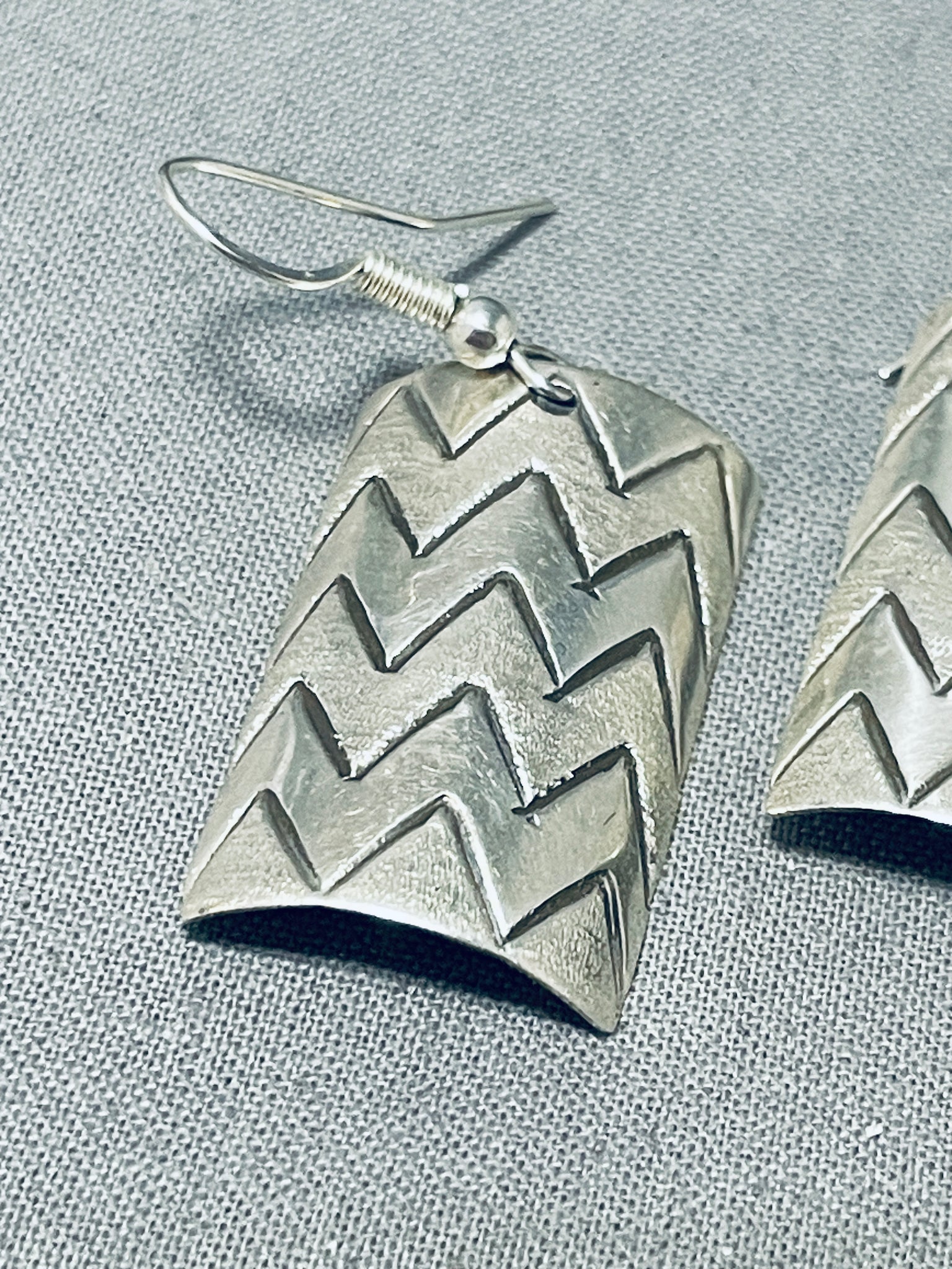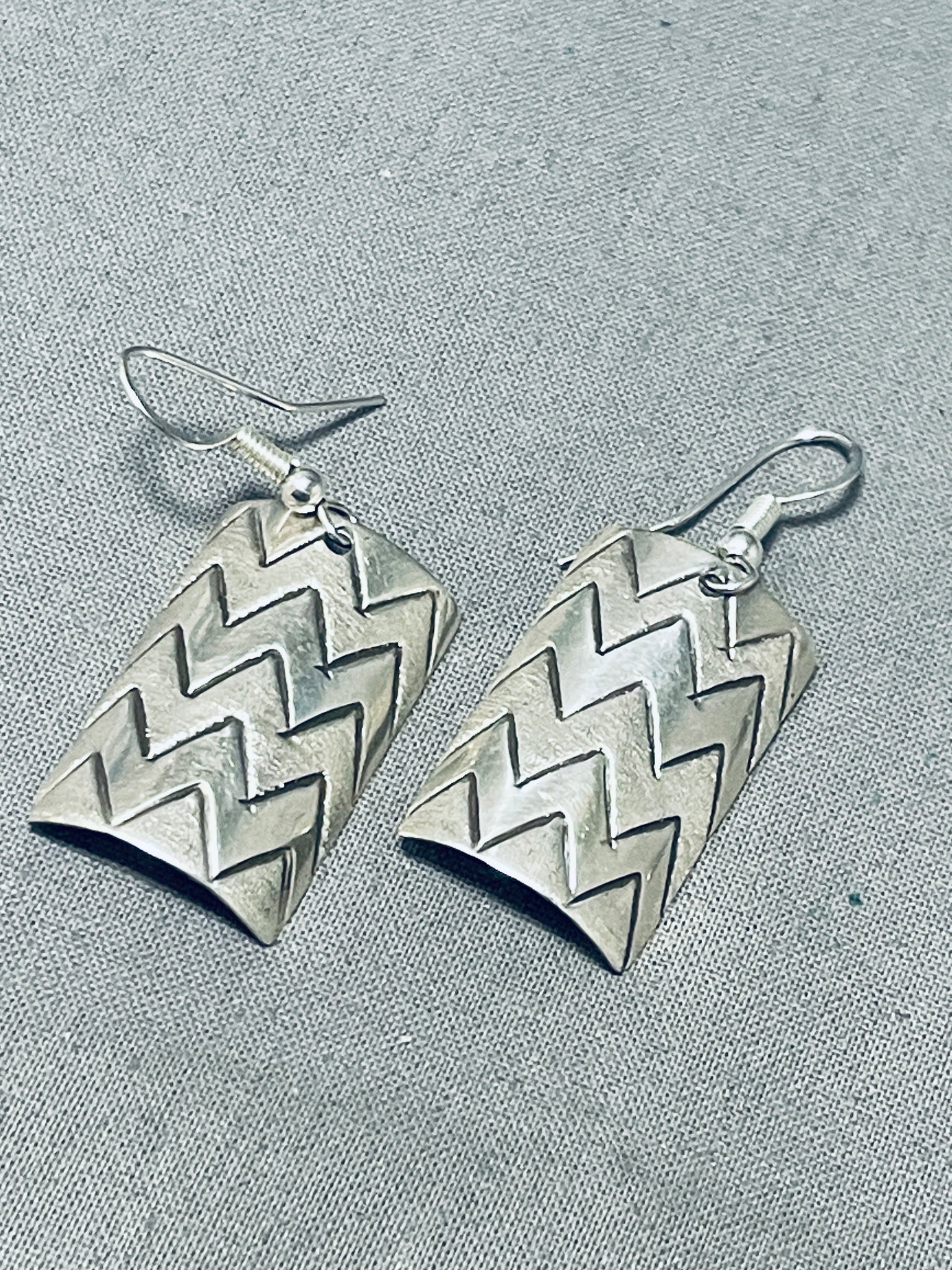 Dynamic Vintage Native American Navajo Sterling Silver Dangle Earrings