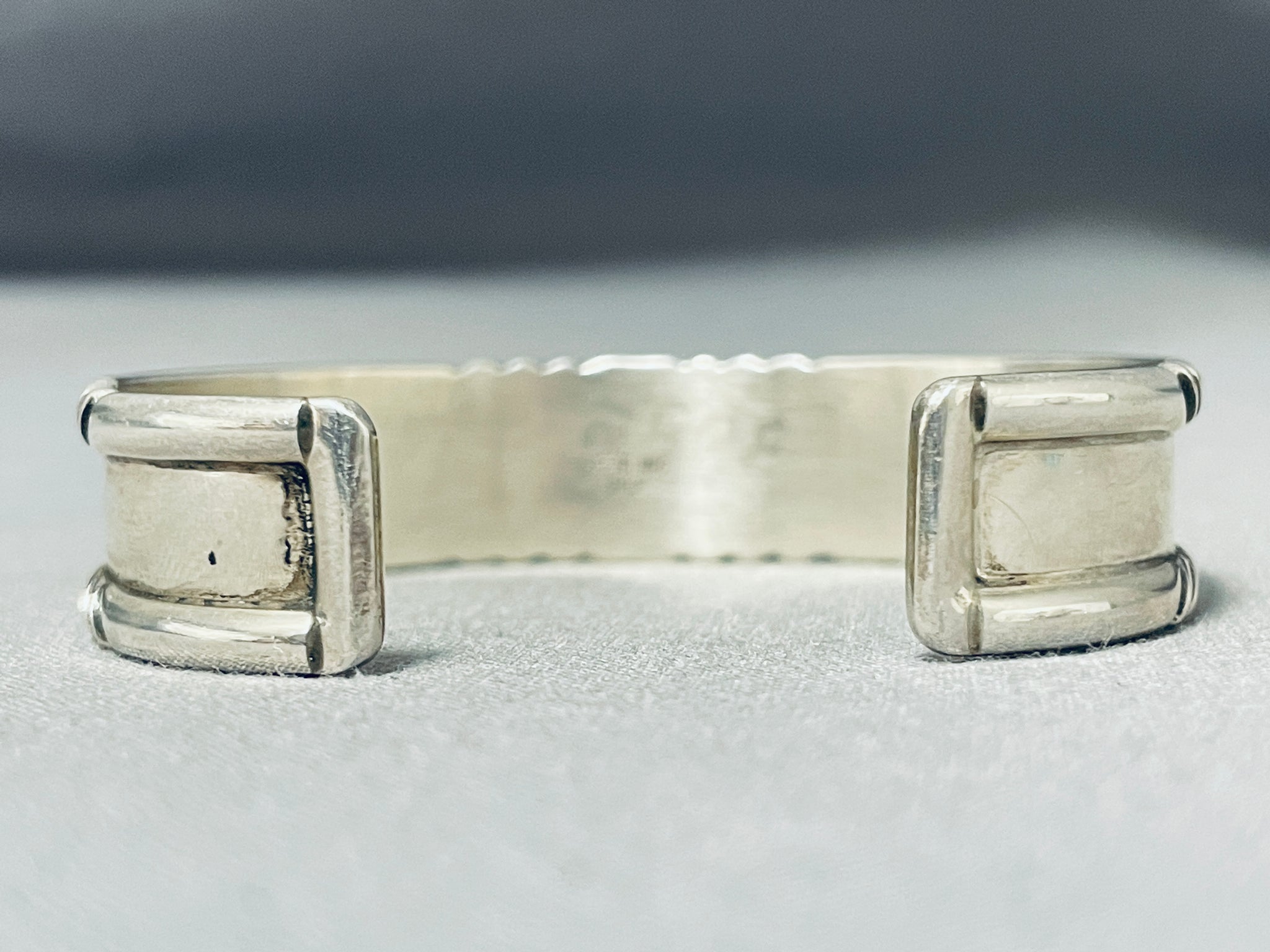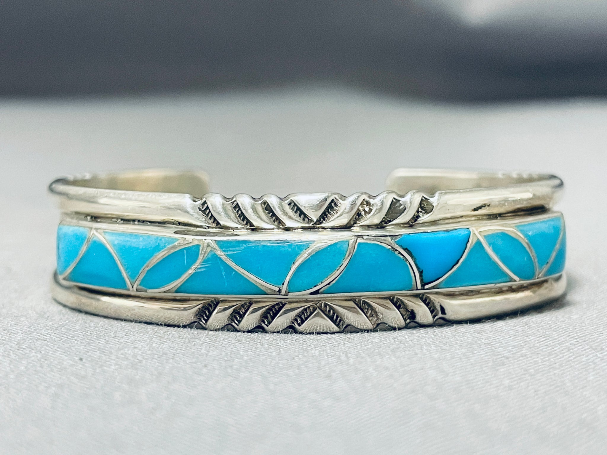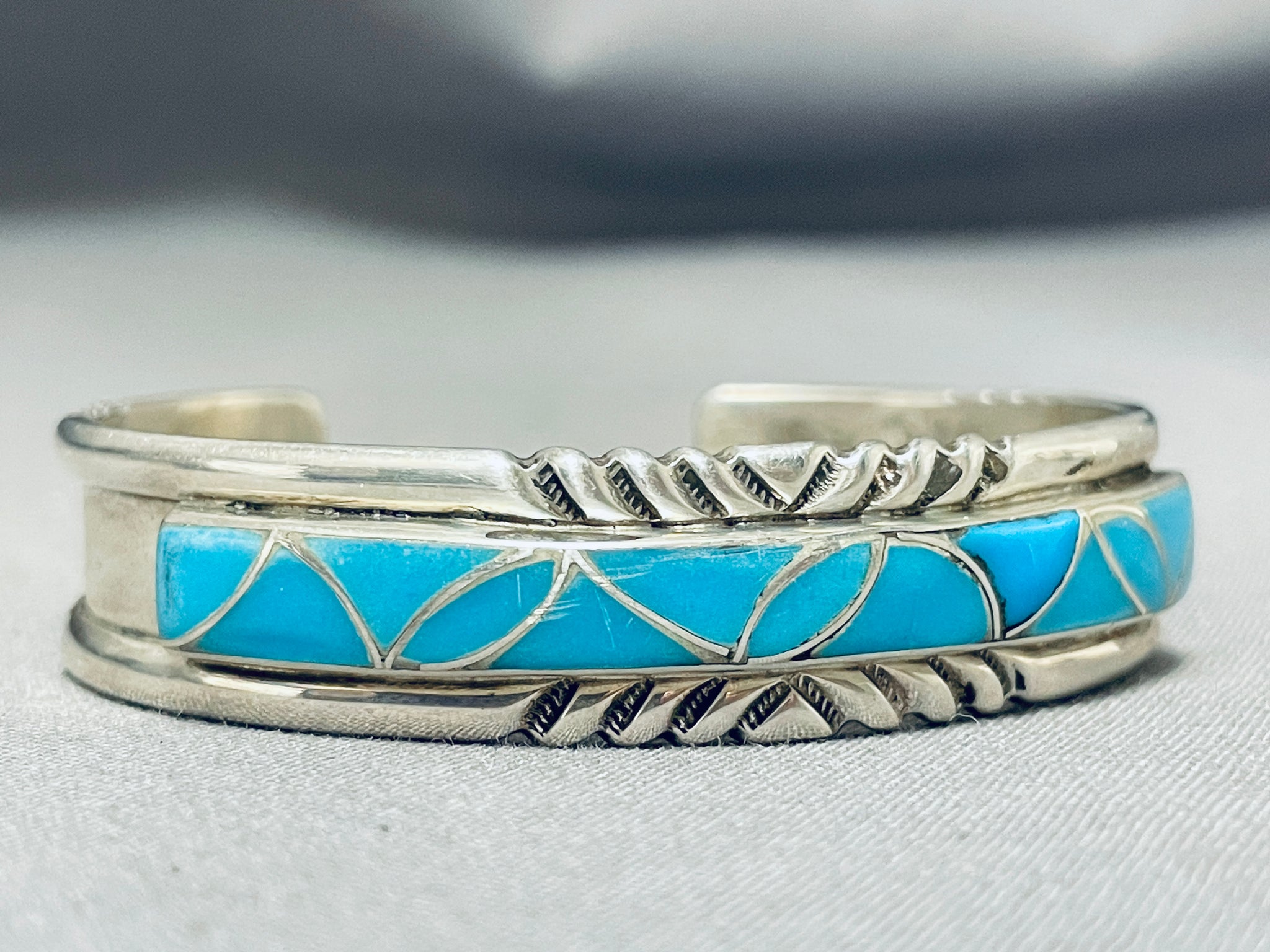 Dynamic Vintage Native American Zuni Blue Gem Turquoise Sterling Silver Bracelet