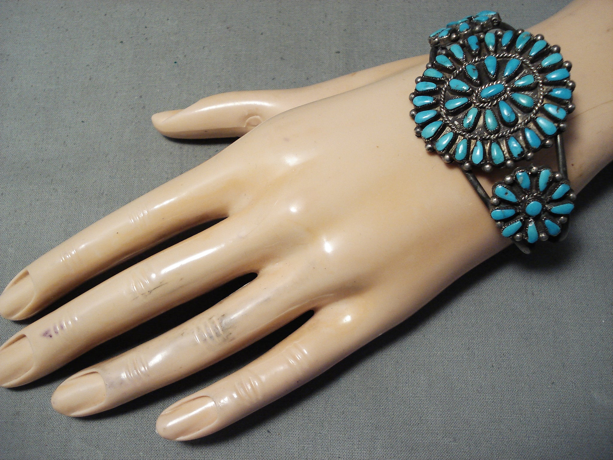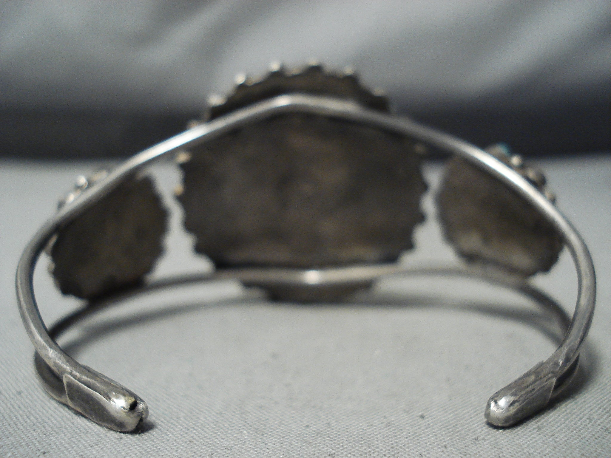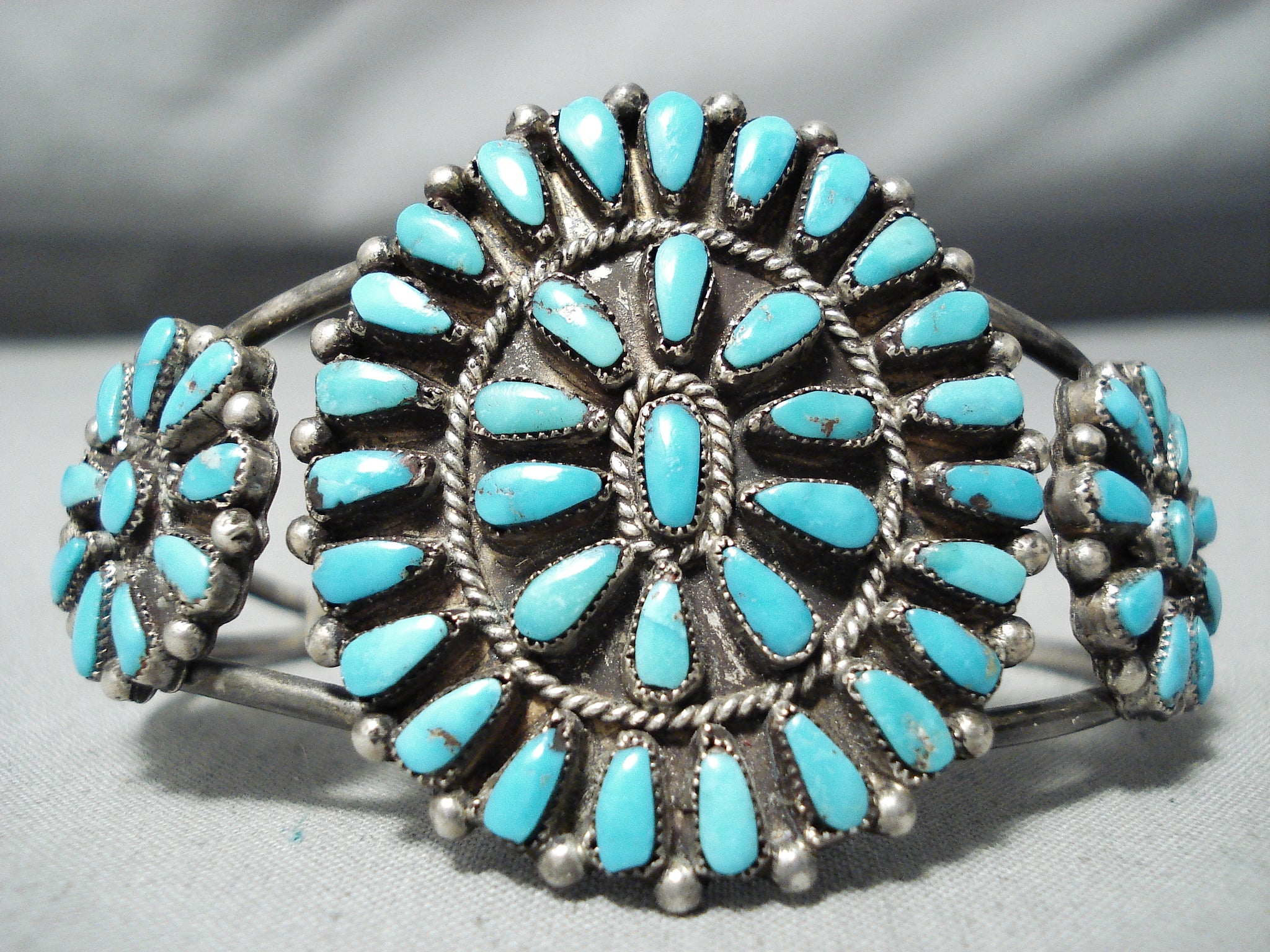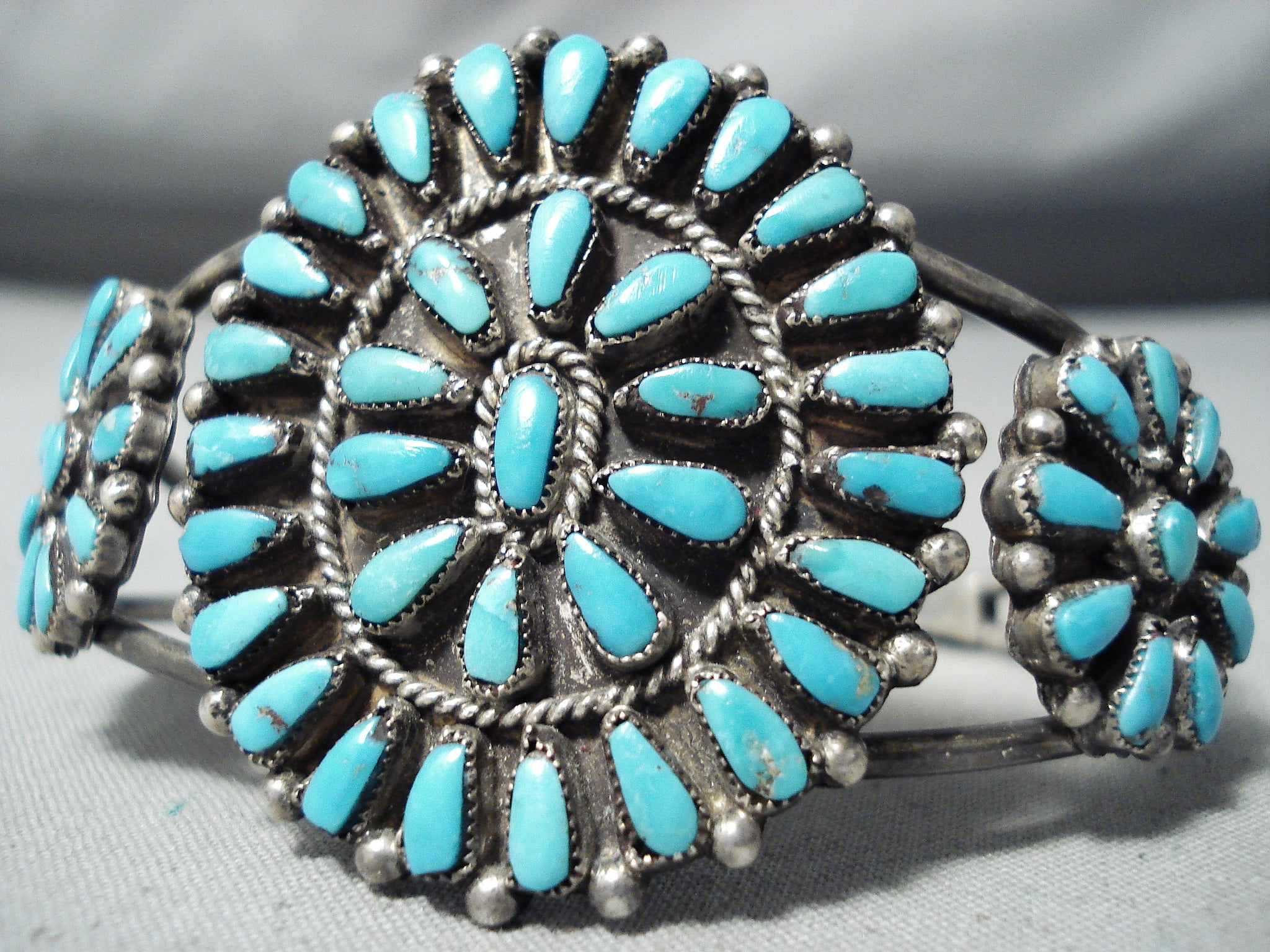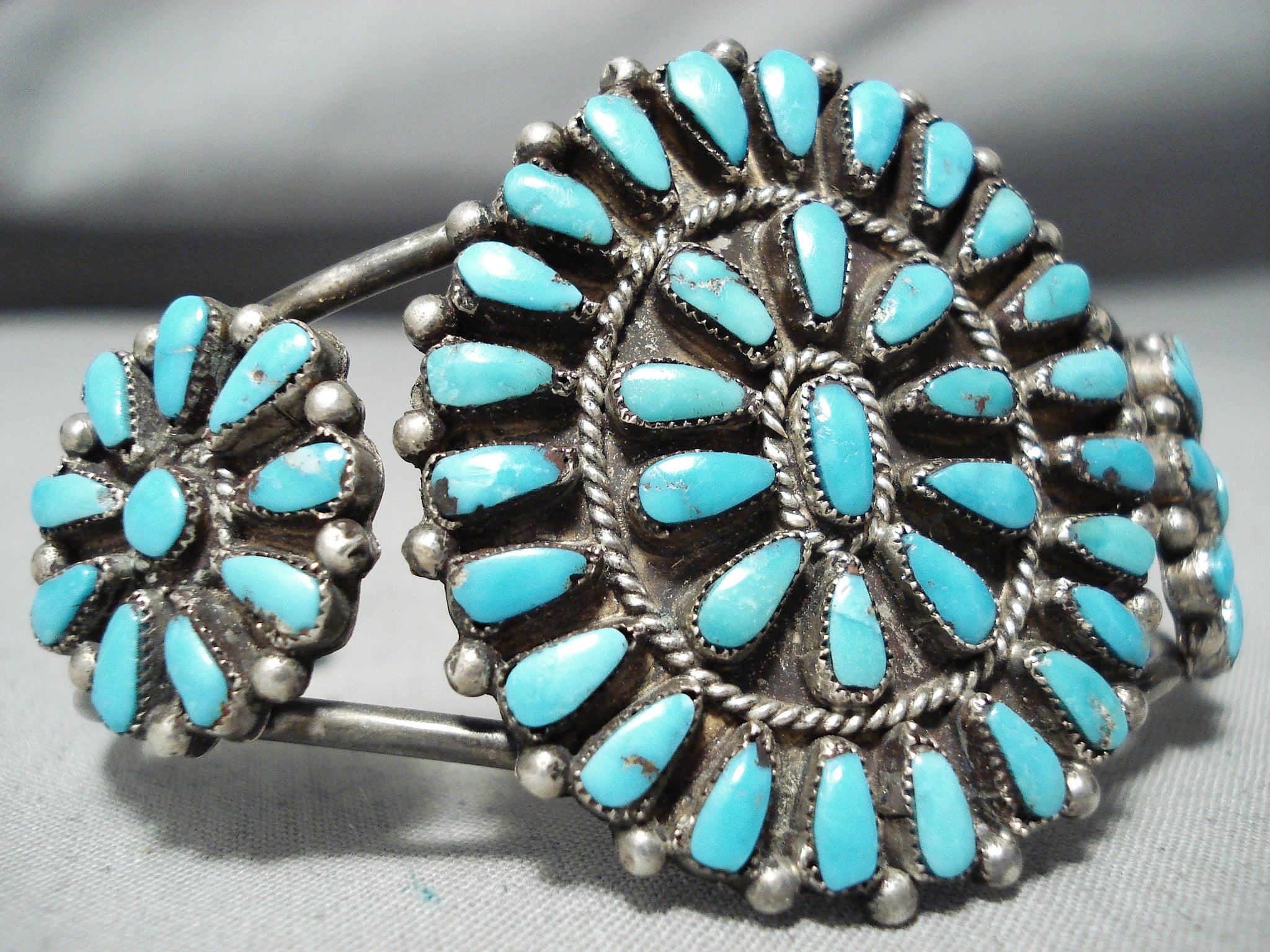 Dynamite Vintage Native American Navajo Blue Gem Turquoise Cluster Sterling Silver Bracelet