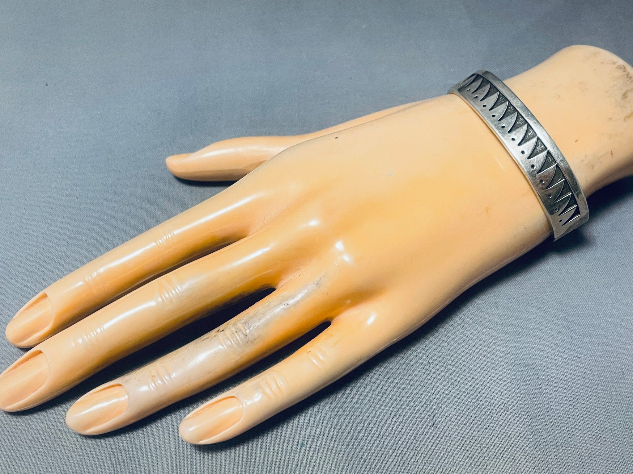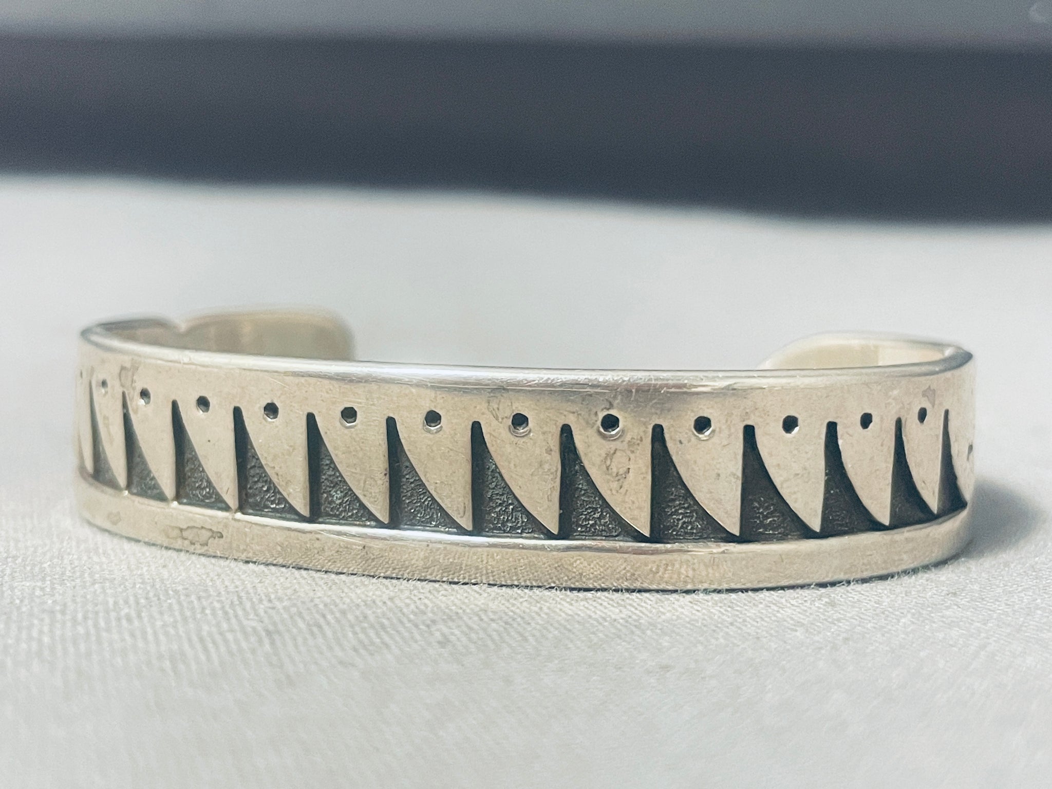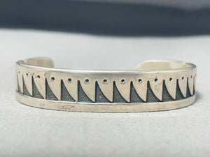 Eagle End Cuff Vintage Native American Navajo Sterling Silver Waterwave Bracelet