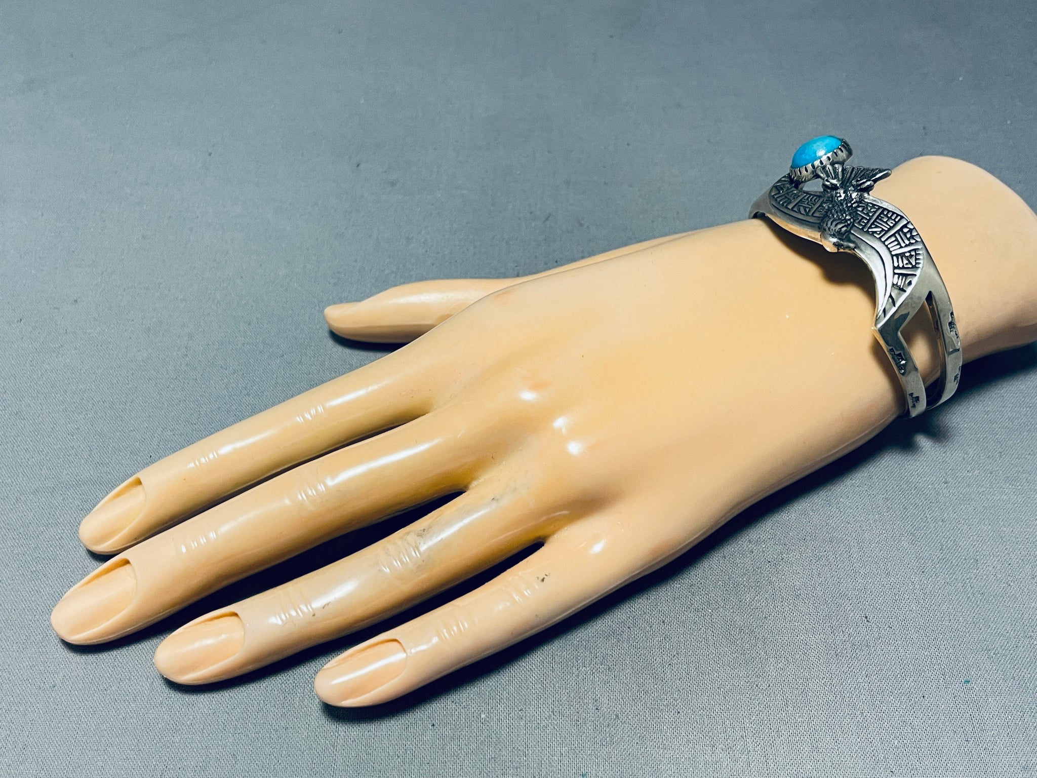 Eagle Has Landed Vintage Native American Kewa Turquoise Sterling Silver Bracelet