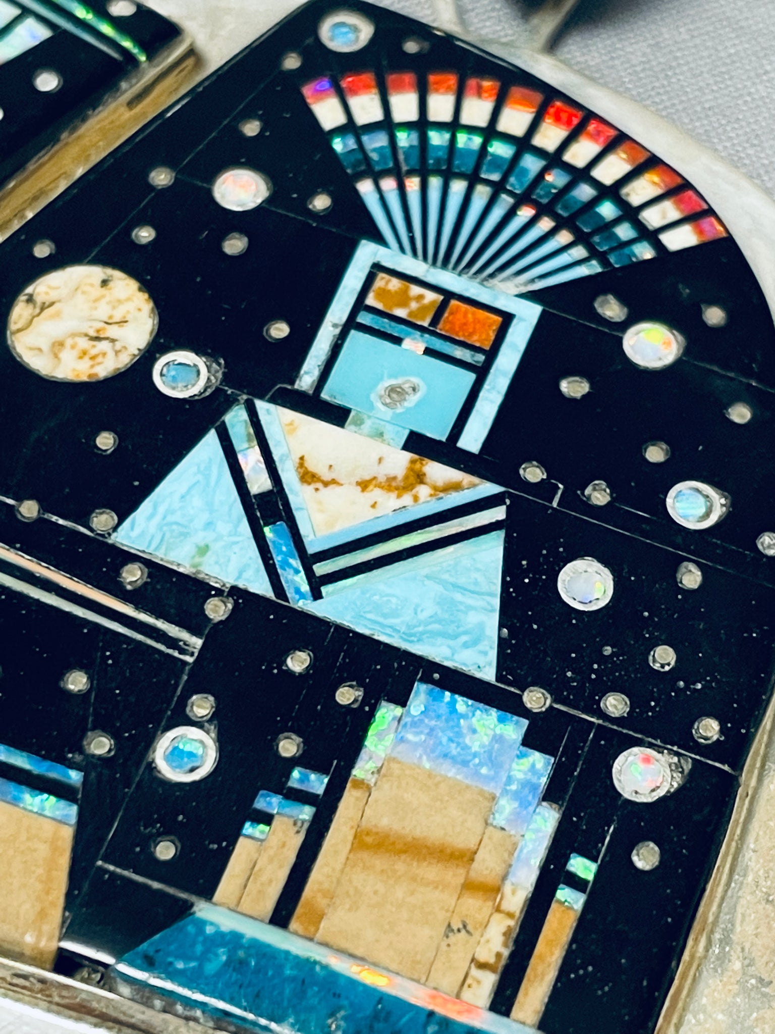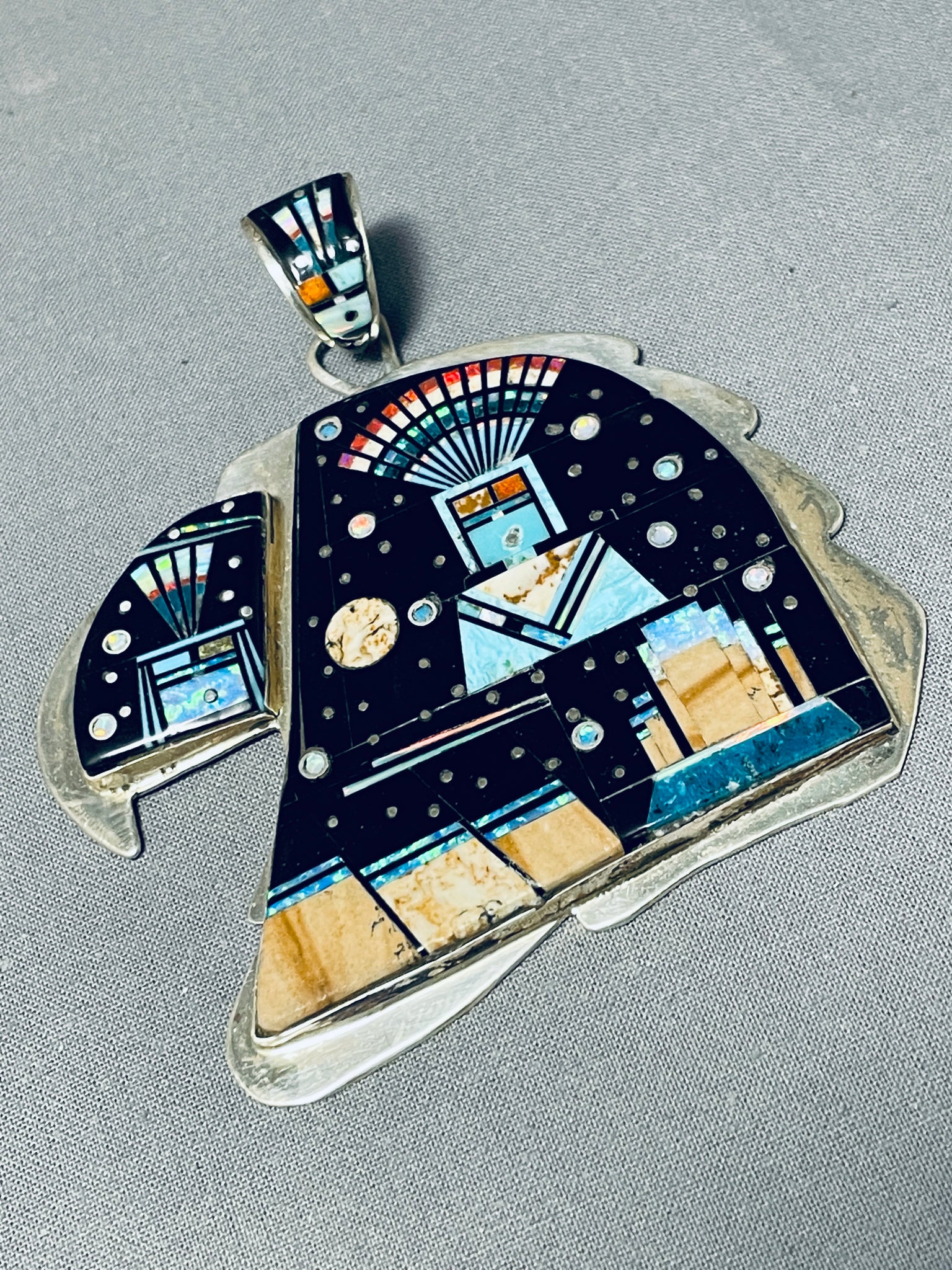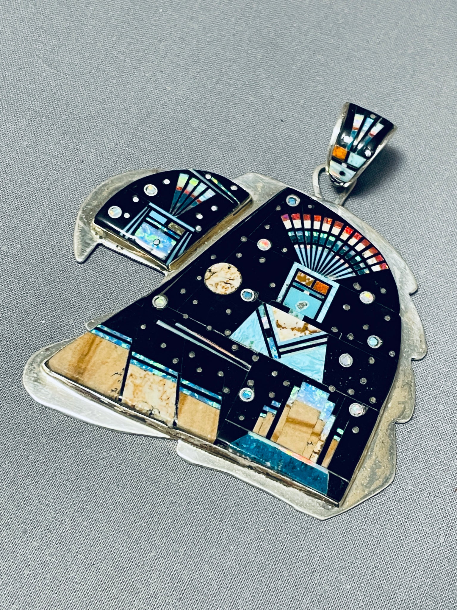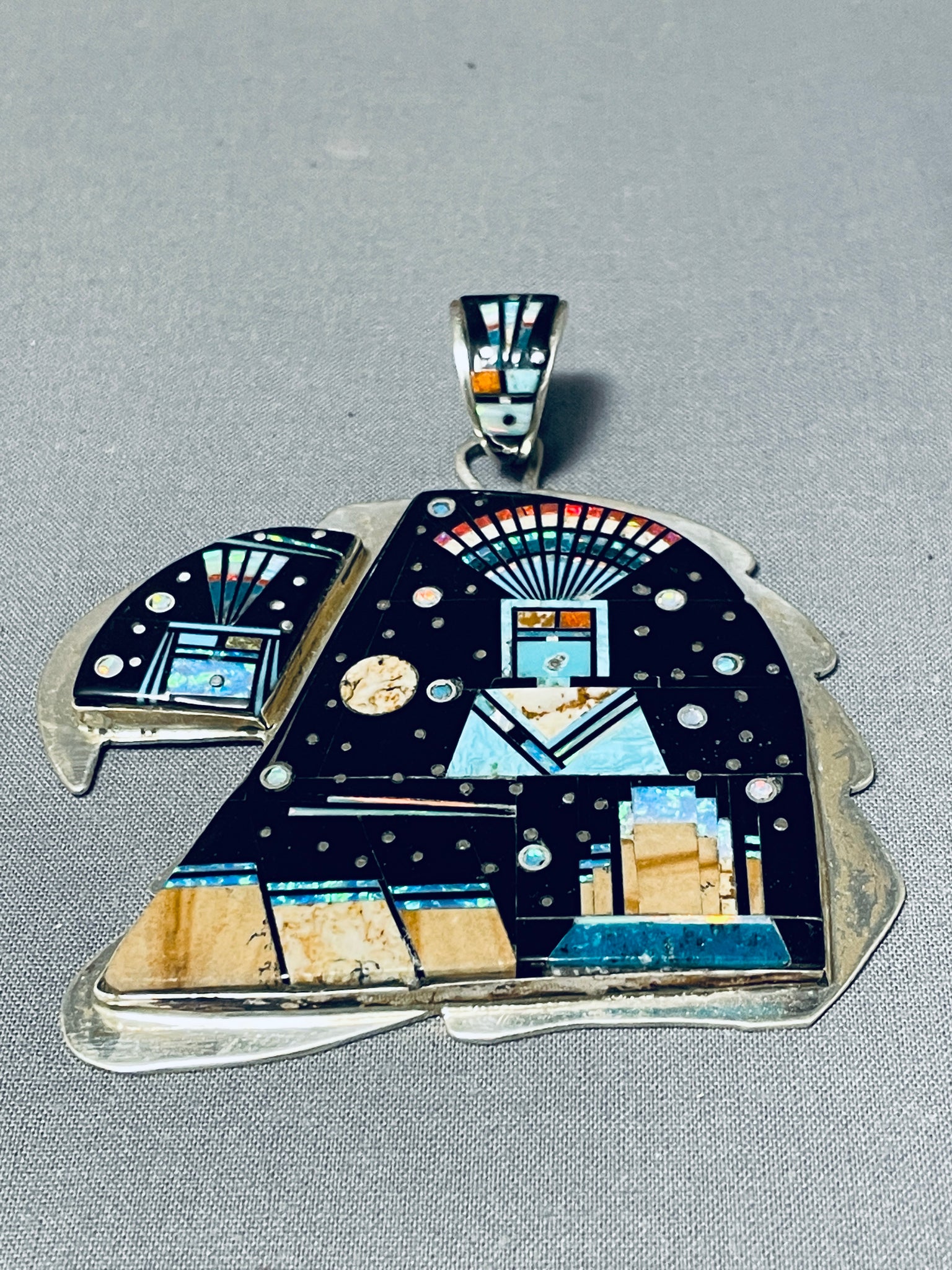 Eagle Head Incredible Inlay Native American Navajo Turquoise Sterling Silver Opal Pendant