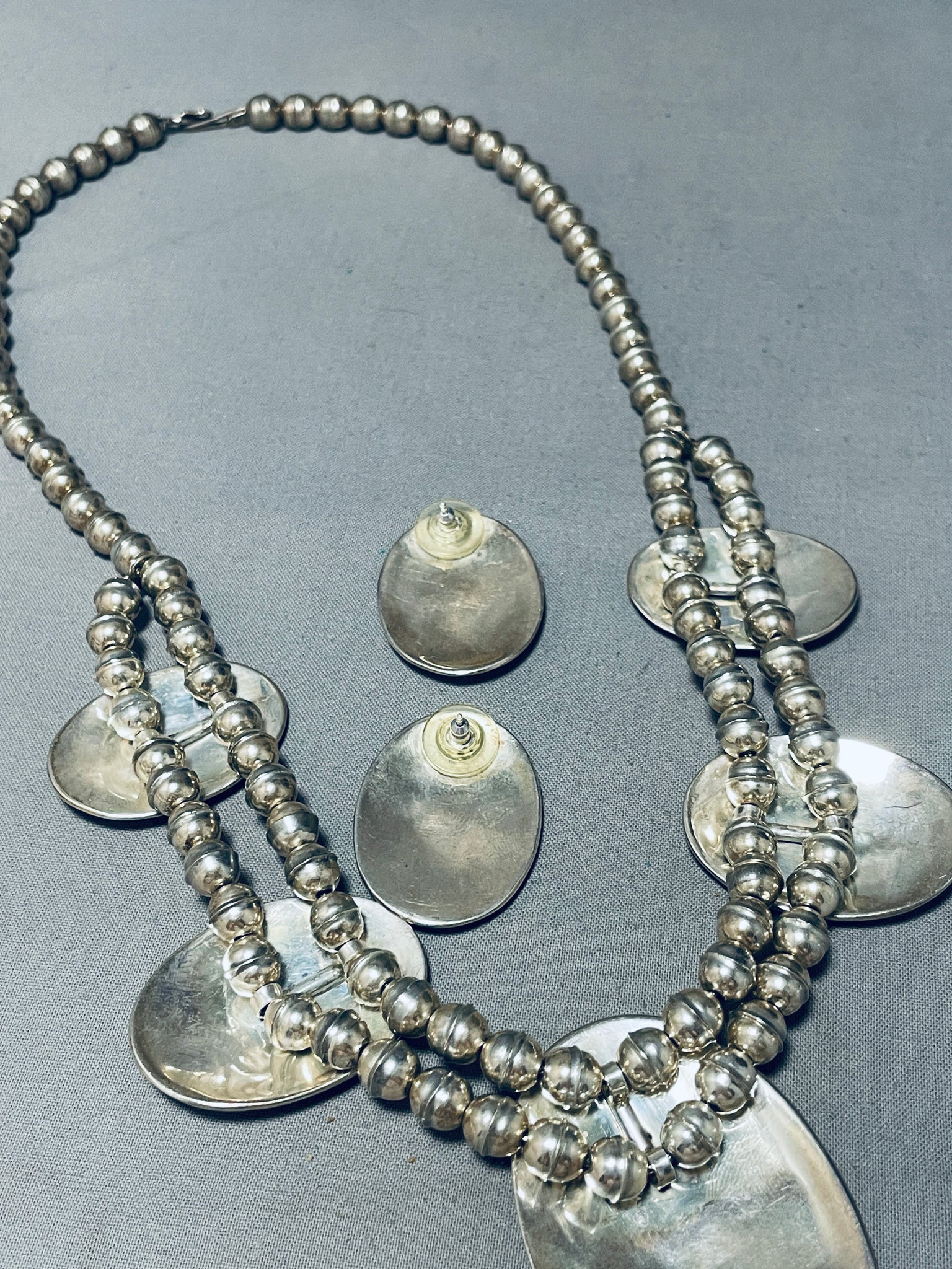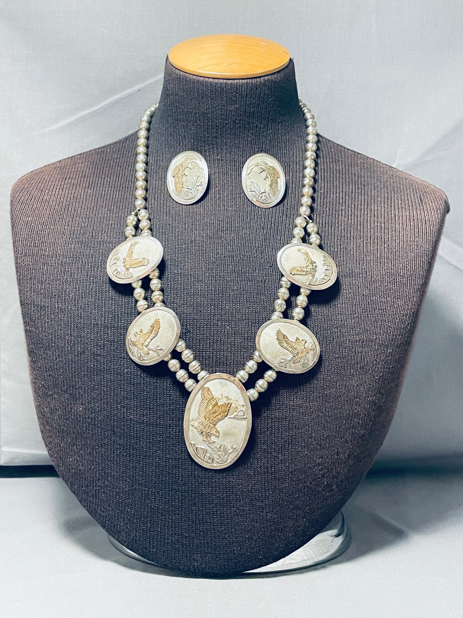 Eagles Have Landed!! Vintage Native American Navajo Sterling Silver Gold Necklace Earrings