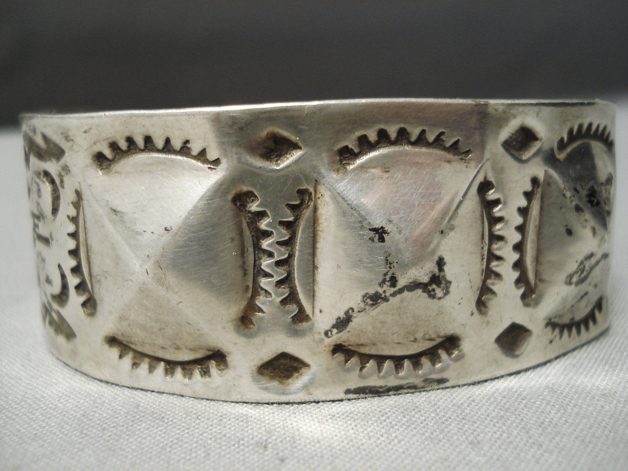 Earlier 1900's Vintage Native American Navajo Big Shell Sterling Silver Repoussed Bracelet Old