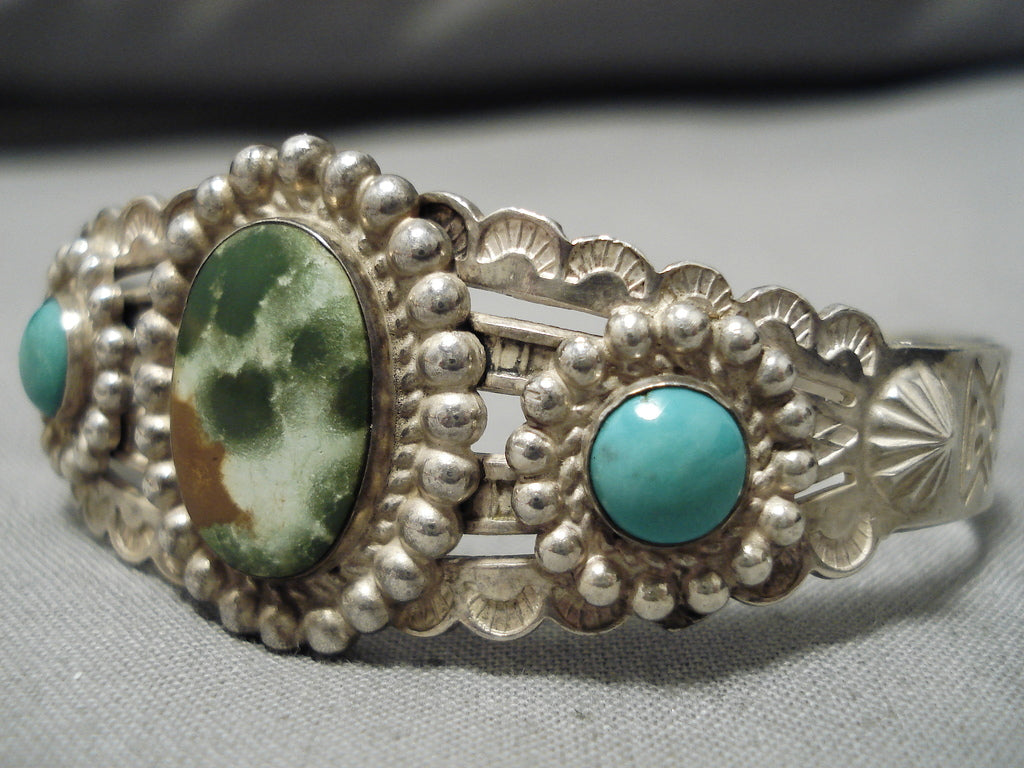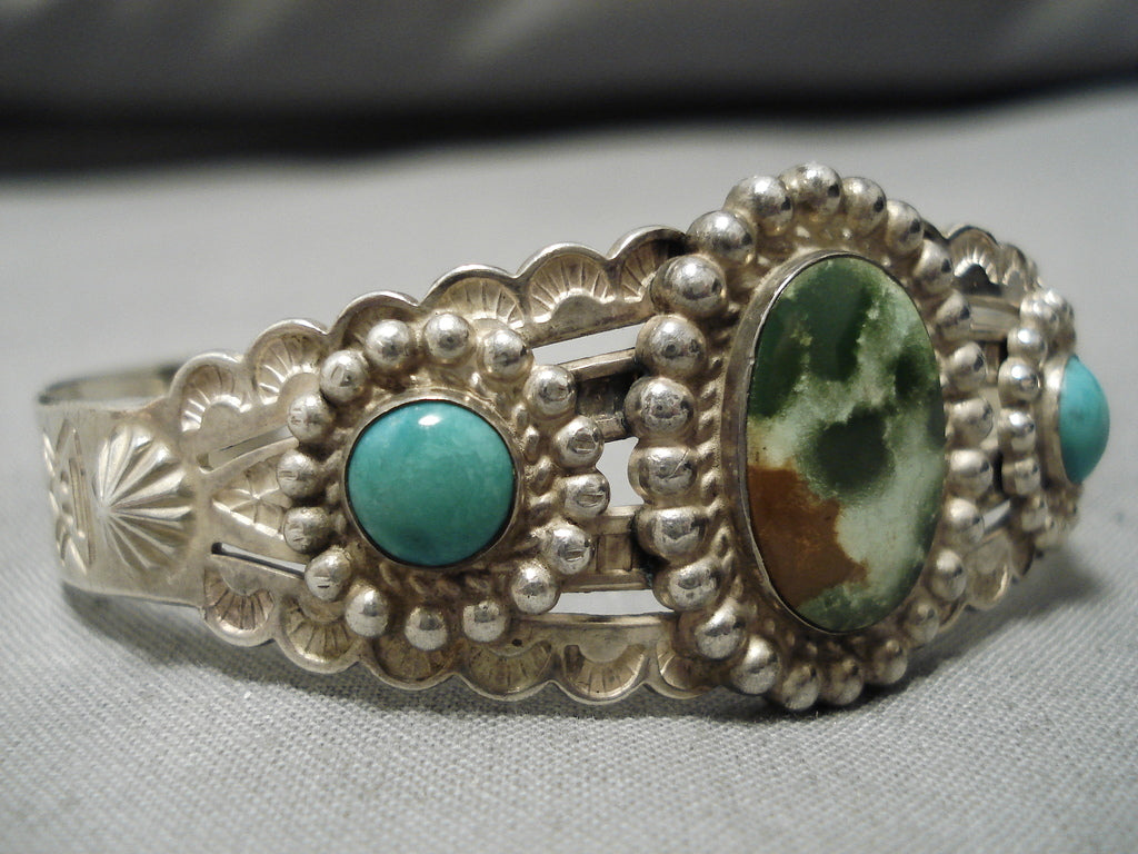 Earlier 1900's Vintage Native American Navajo Royston Turquoise Sterling Silver Bracelet Old
