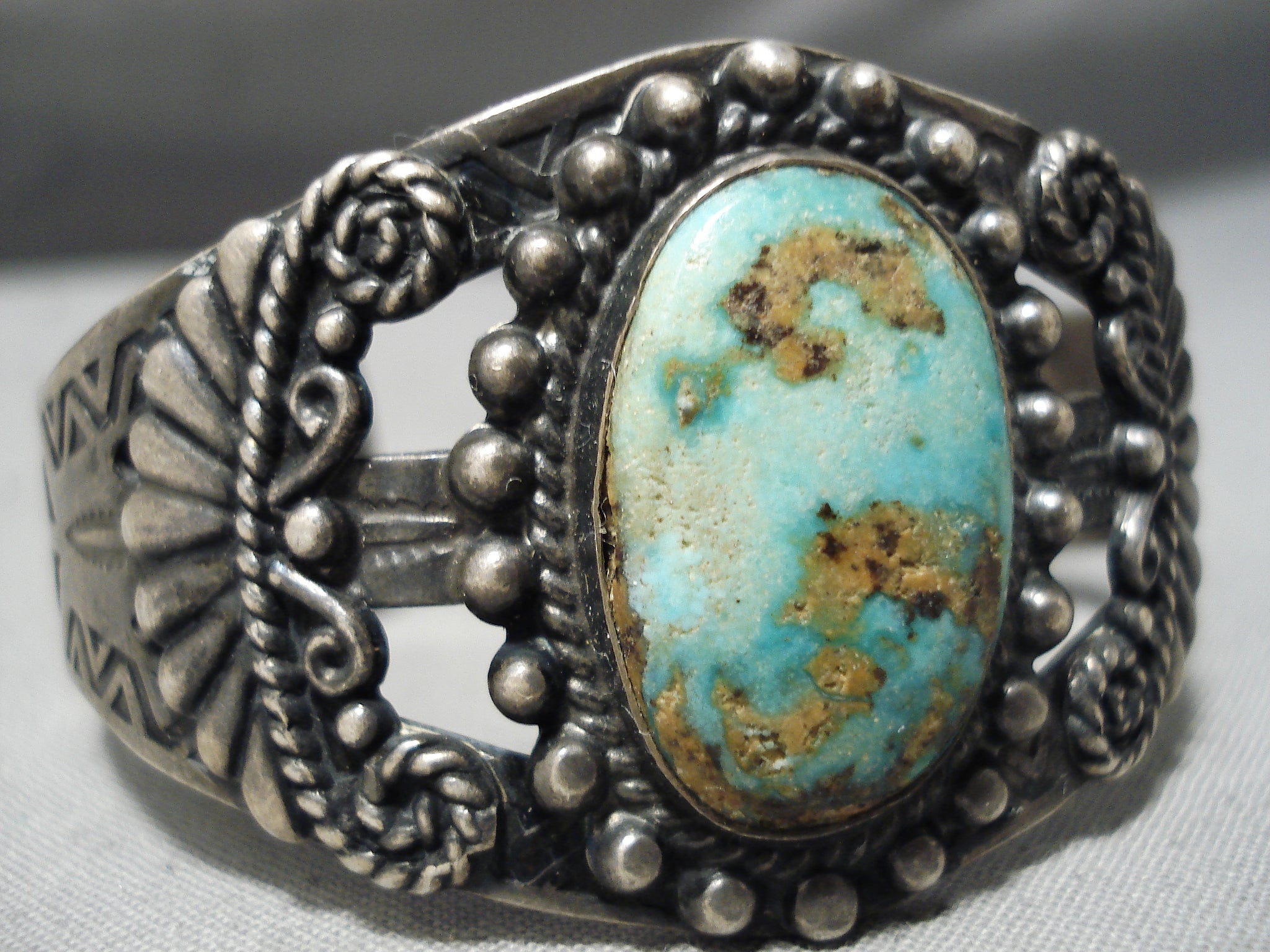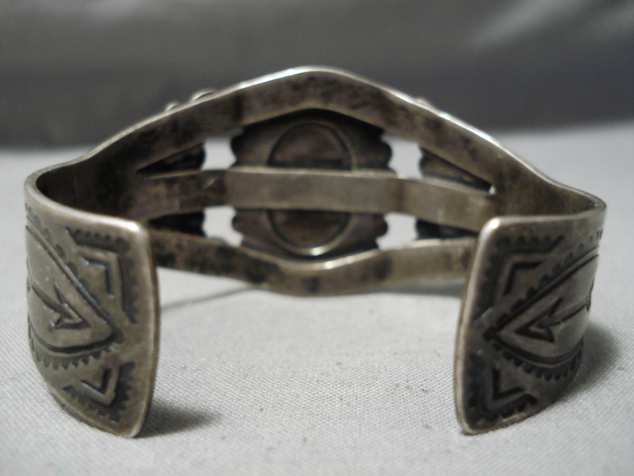 Earlier Vintage Native American Navajo Hachita Turquoise Sterling Silver Bracelet Old Cuff