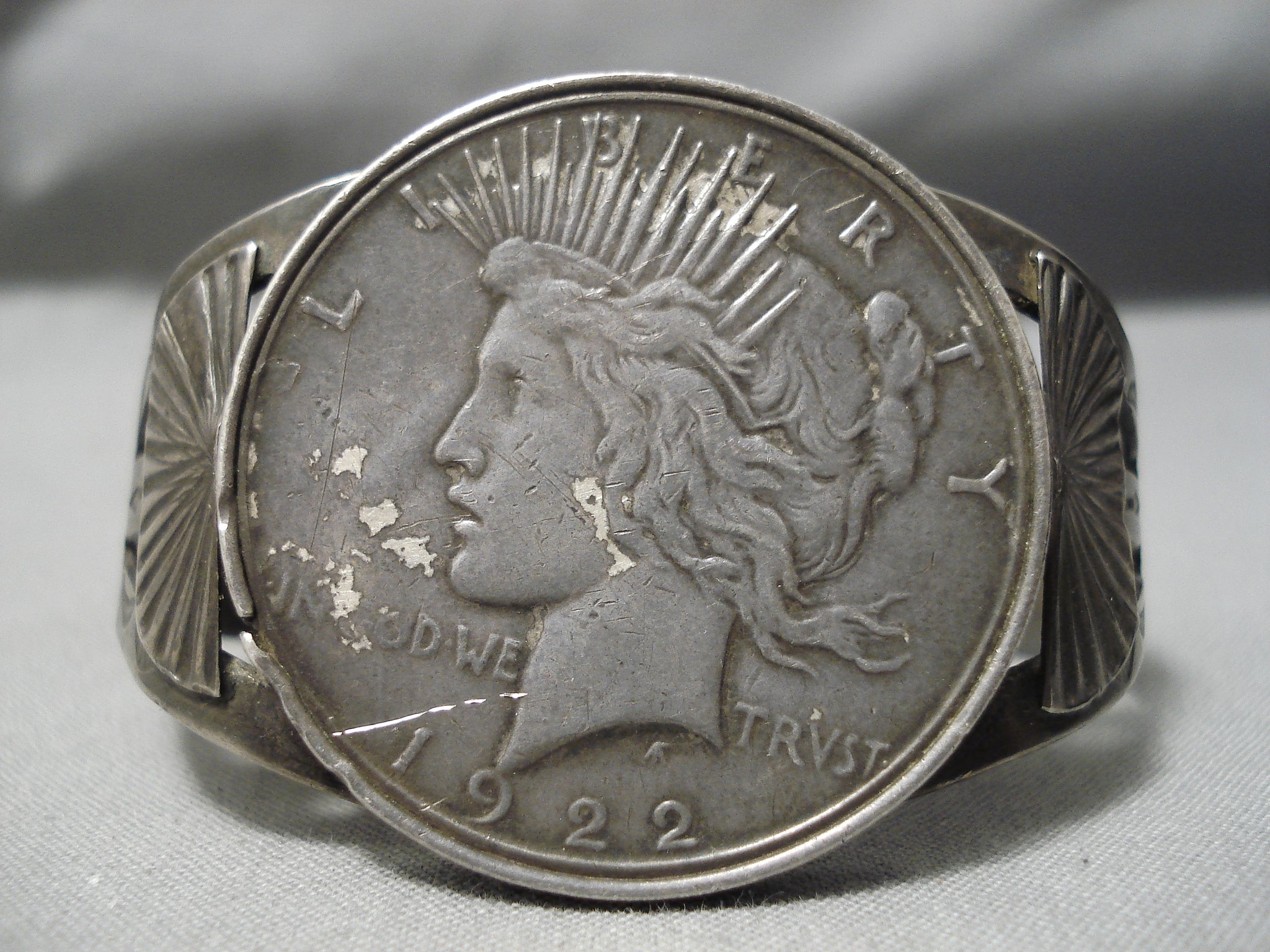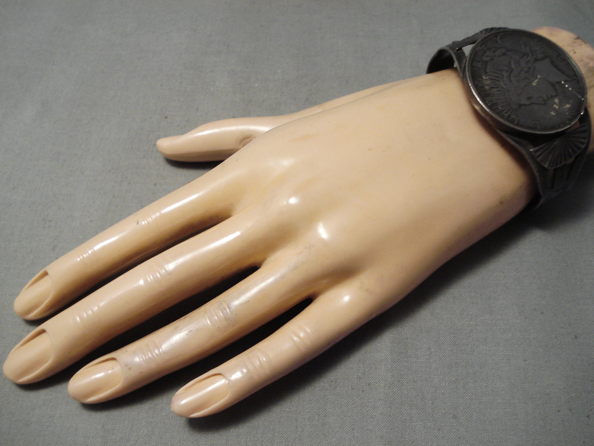 Earlier Vintage Navajo 1900's Sterling Silver Native American Coin Bracelet Old