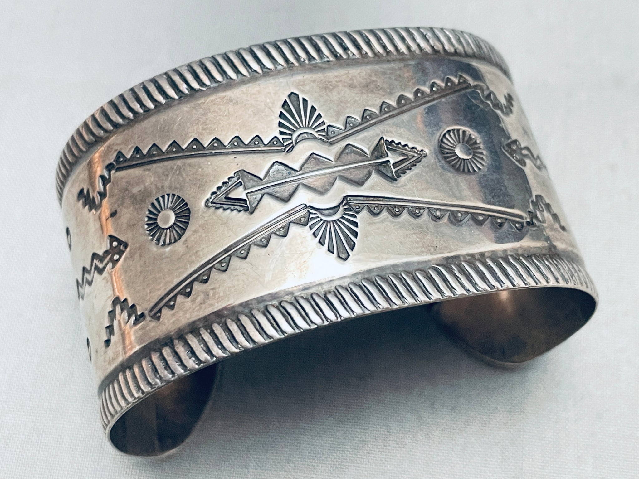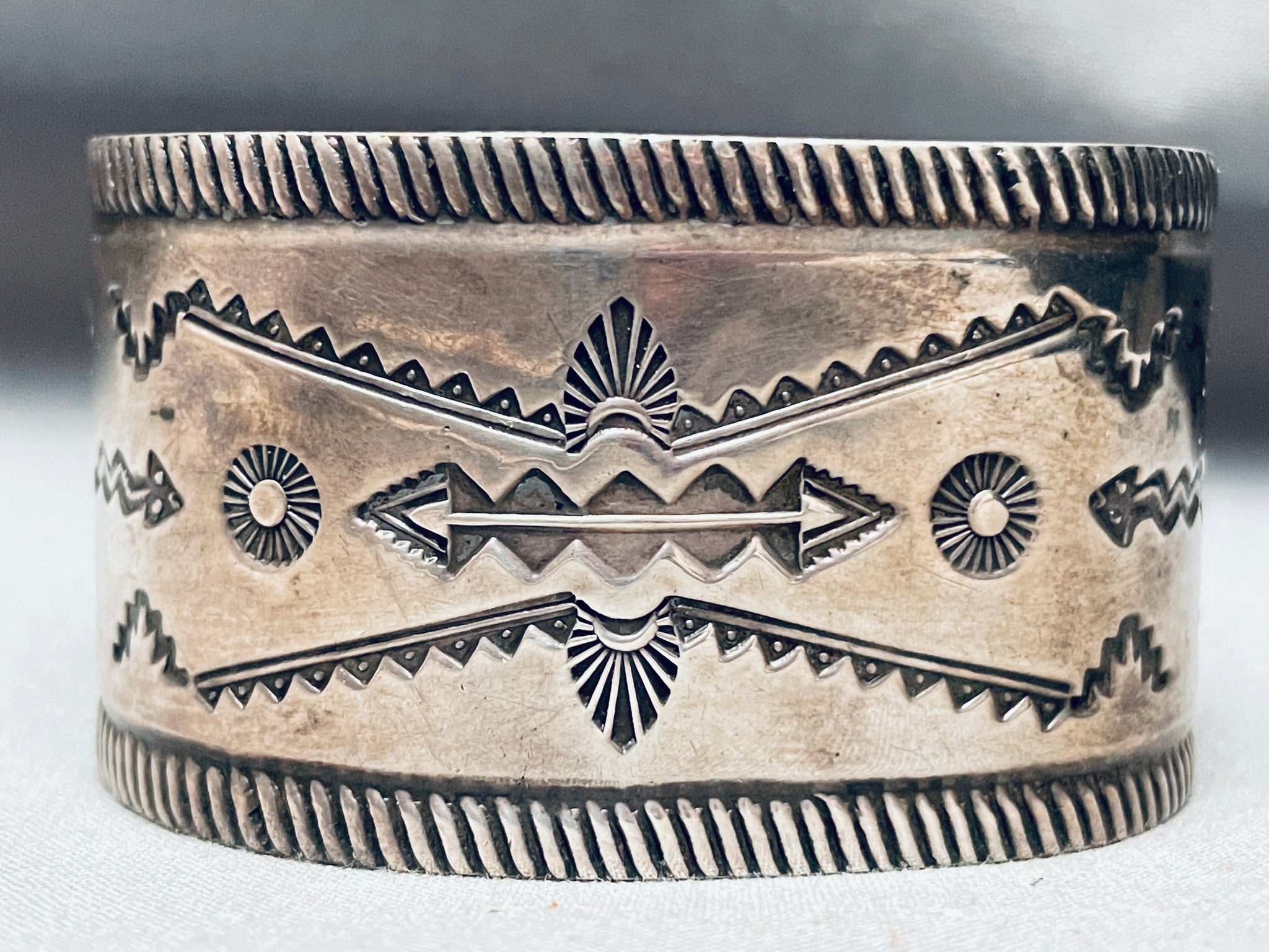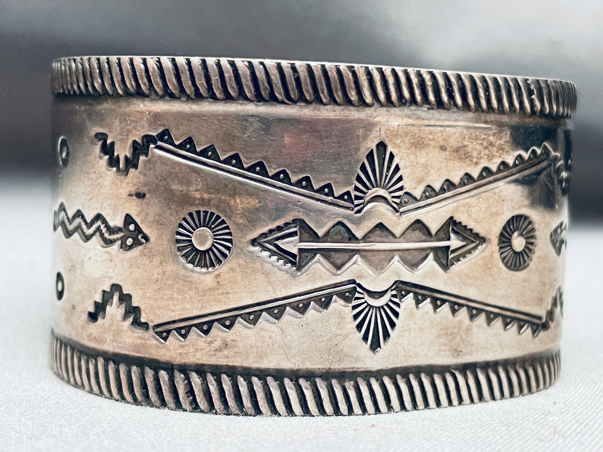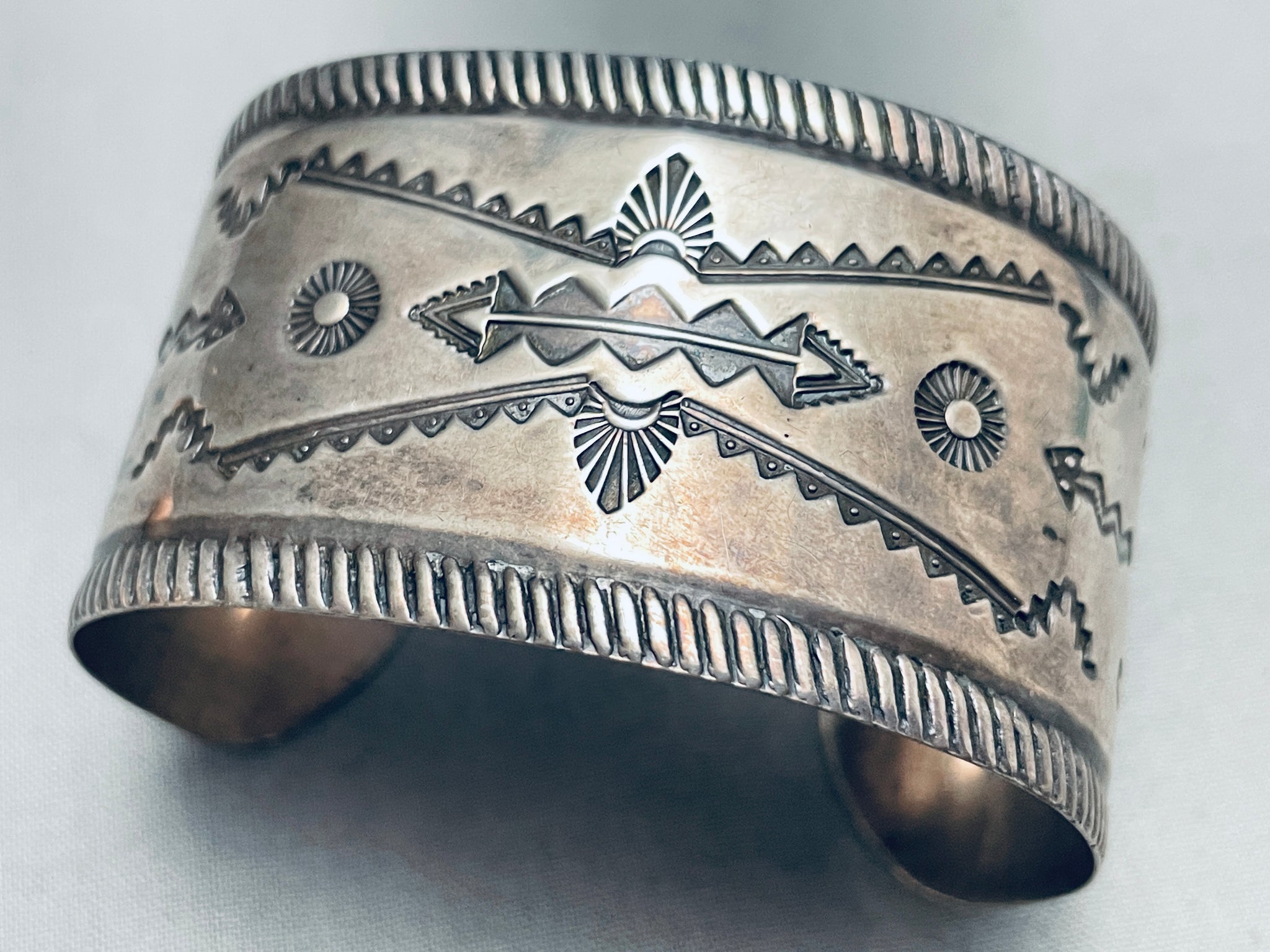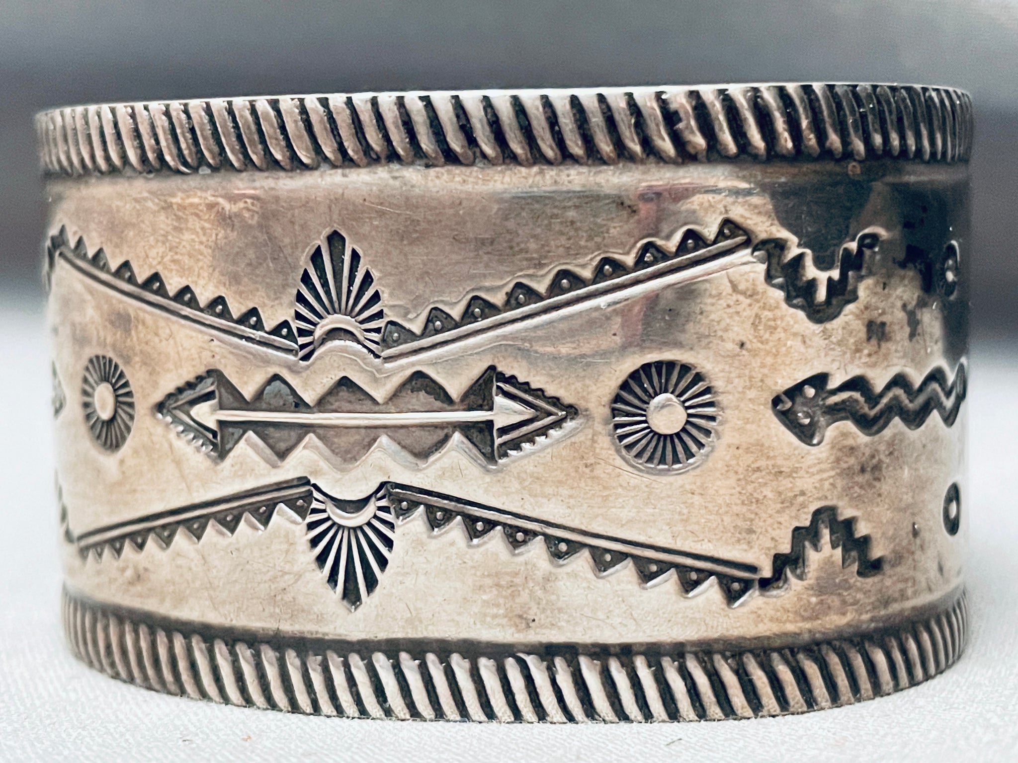 Early 1900's Huge Hand Tooled Vintage Native American Navajo Sterling Silver Bracelet