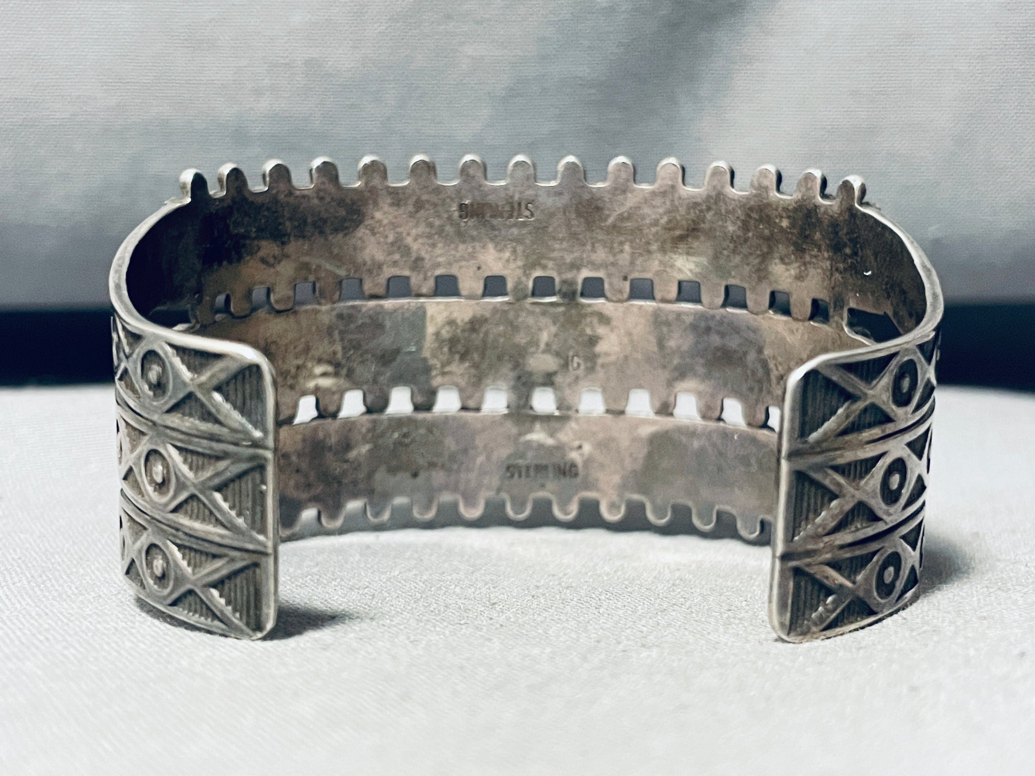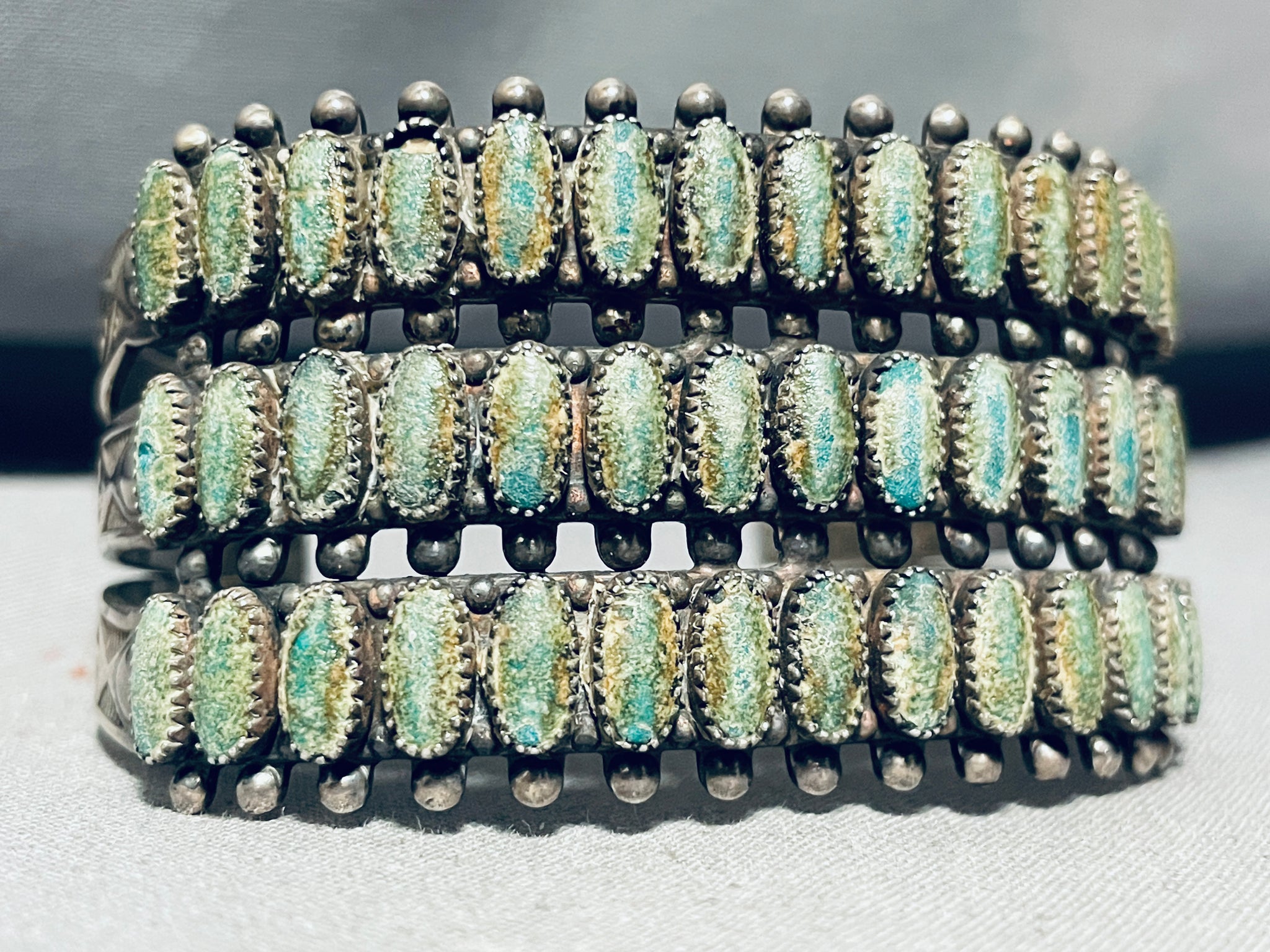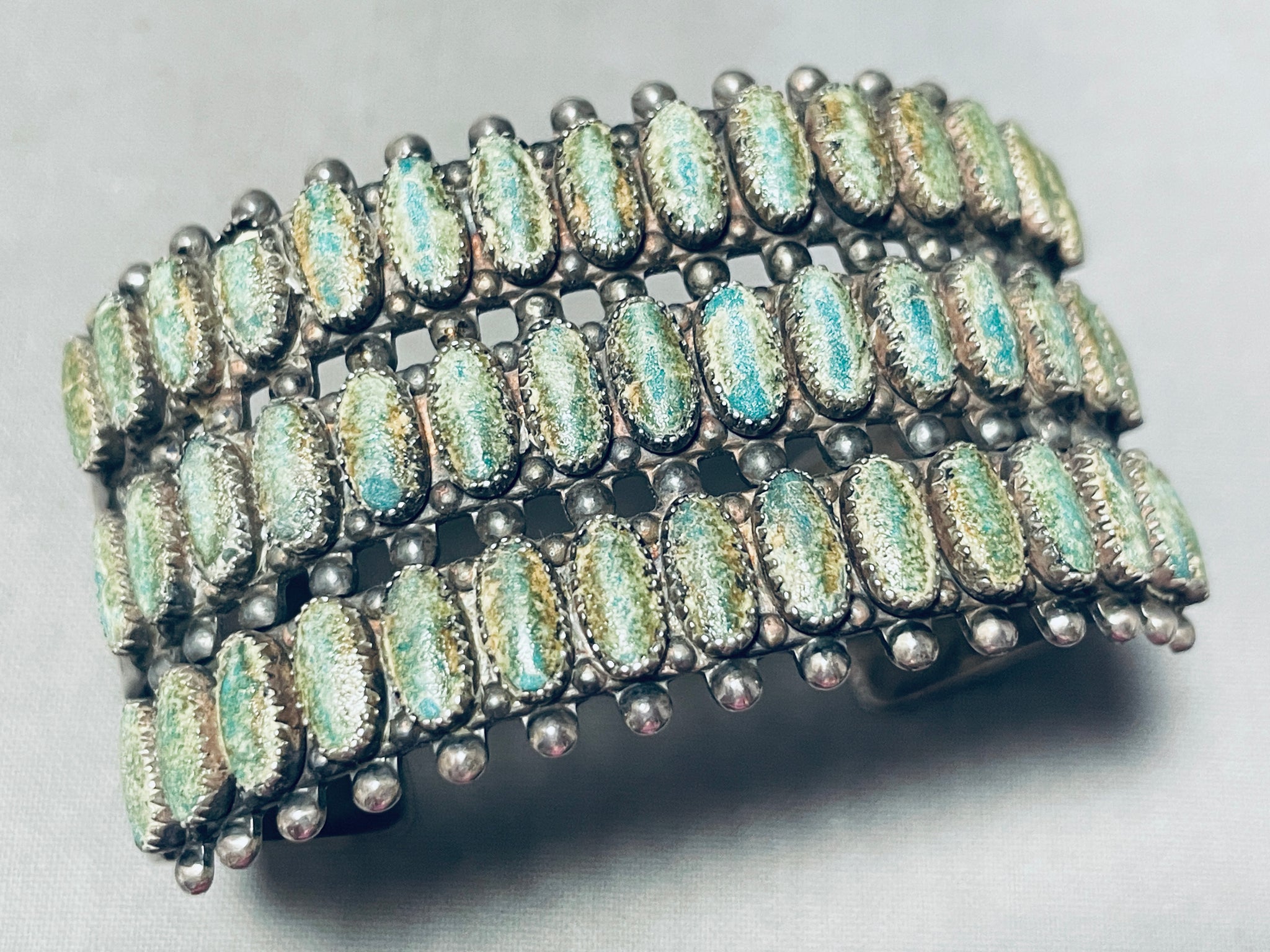 Early 1900's Opulent Vintage Native American Navajo Green Turquoise Sterling Silver Bracelet