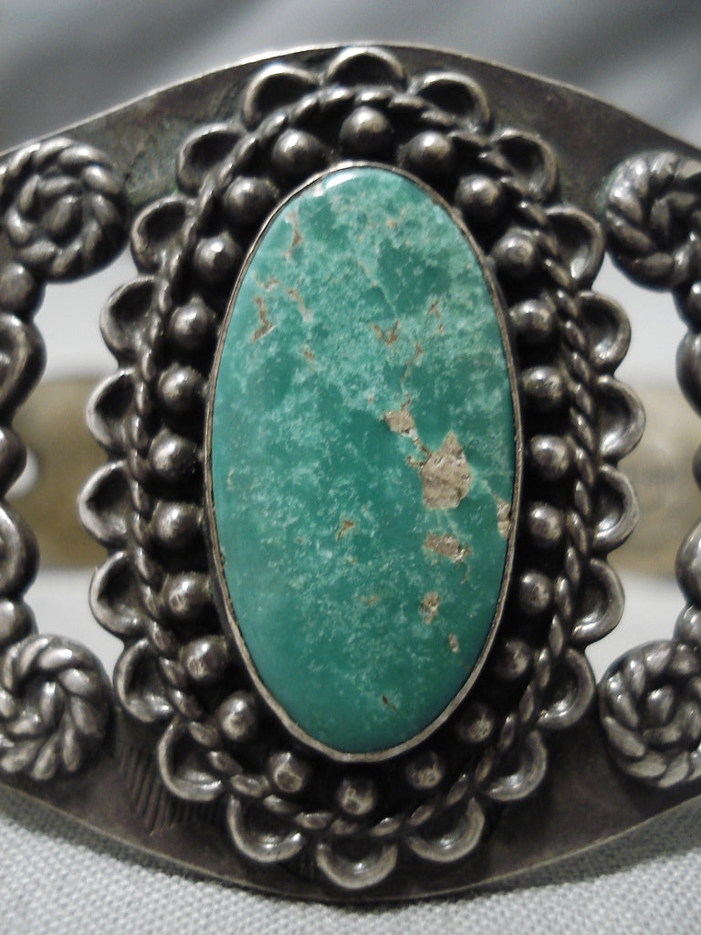 Early 1900's Vintage Native American Navajo Cerrillos Turquoise Sterling Silver Bracelet