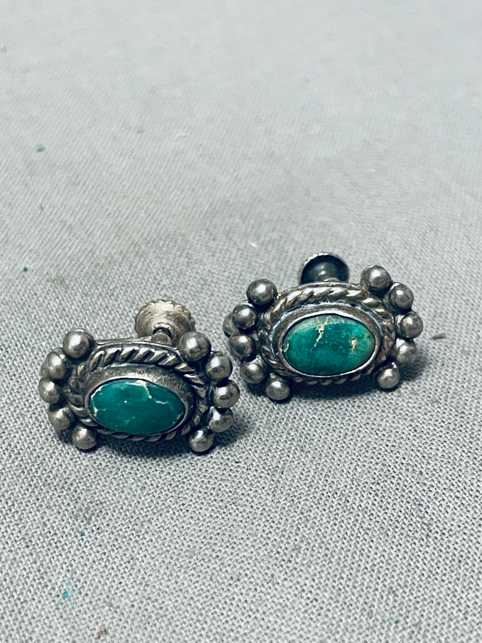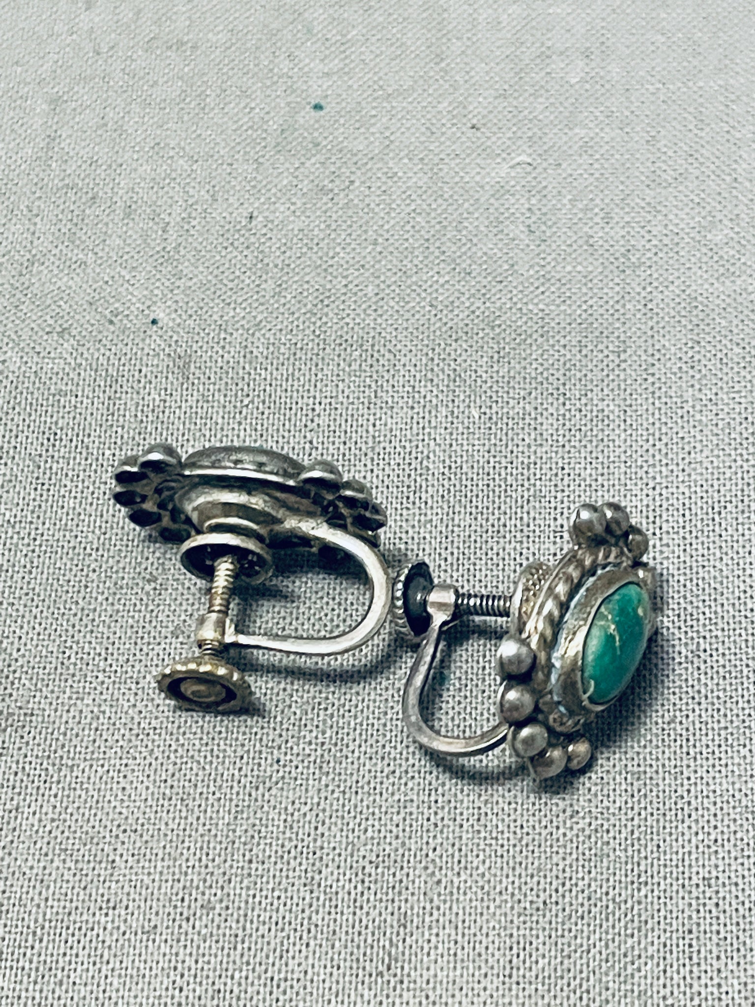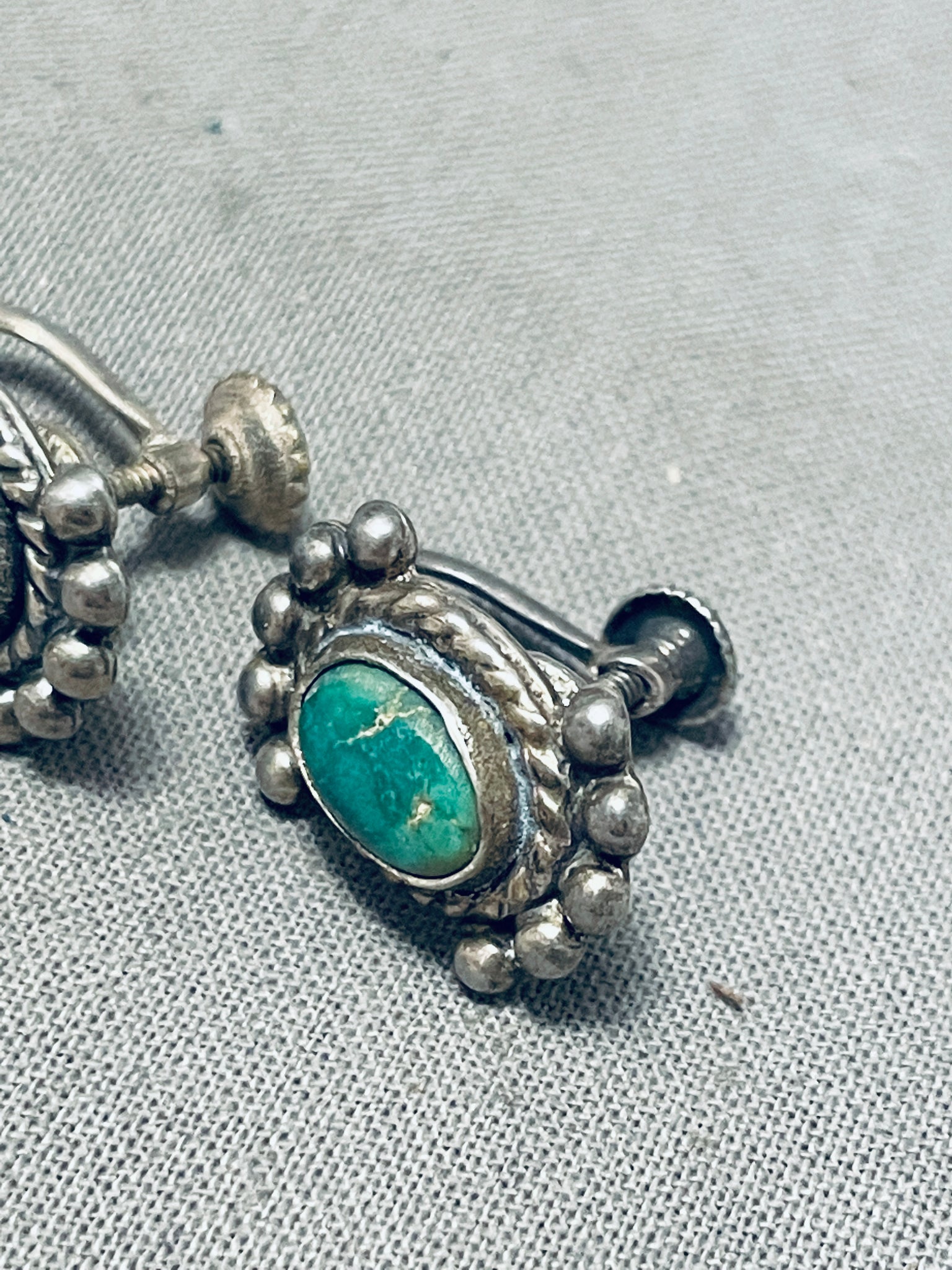 Early 1900's Vintage Native American Navajo Cerrillos Turquoise Sterling Silver Earrings