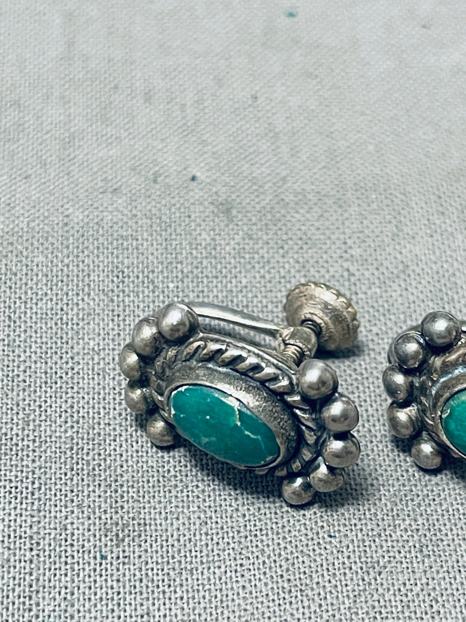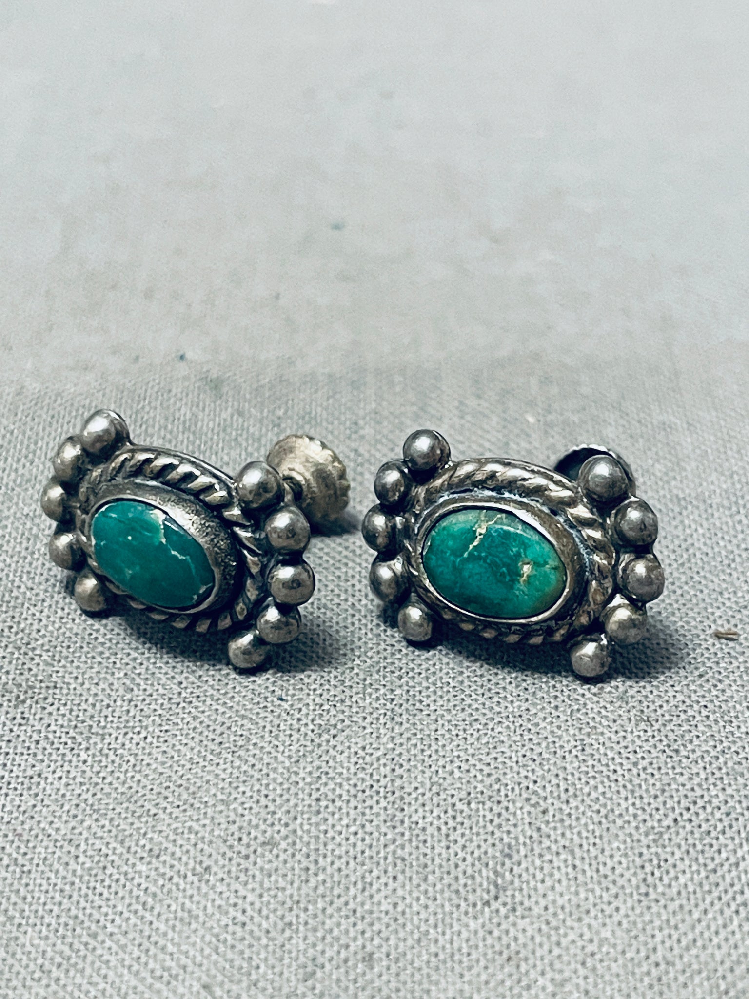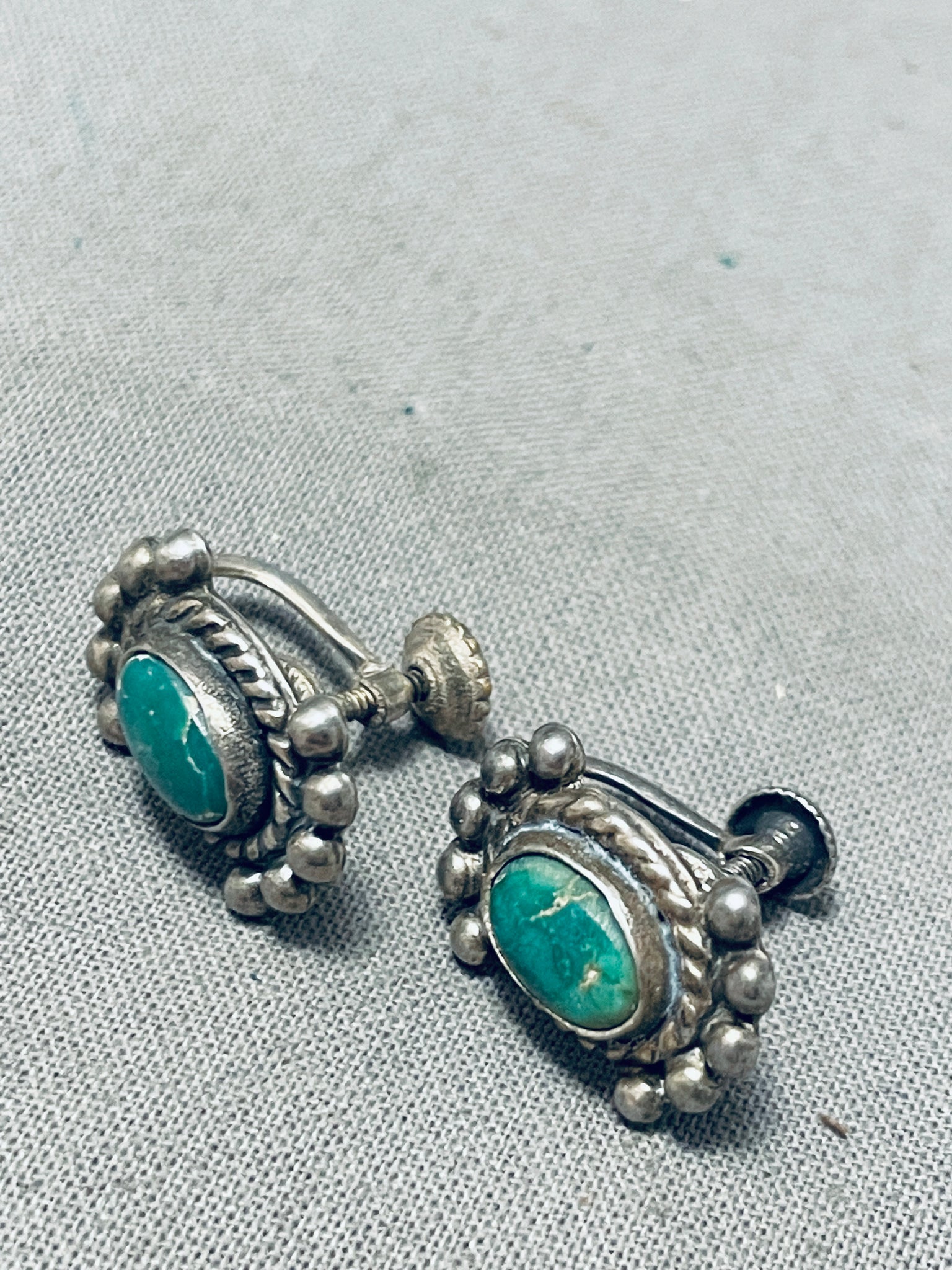 Early 1900's Vintage Native American Navajo Cerrillos Turquoise Sterling Silver Earrings