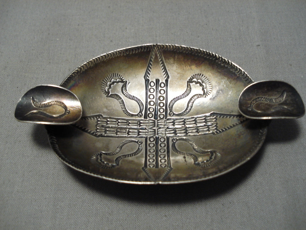 Early 1900's Vintage Native American Navajo Coin Silver Sterling Ashtray Old
