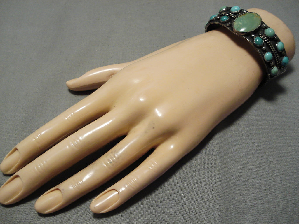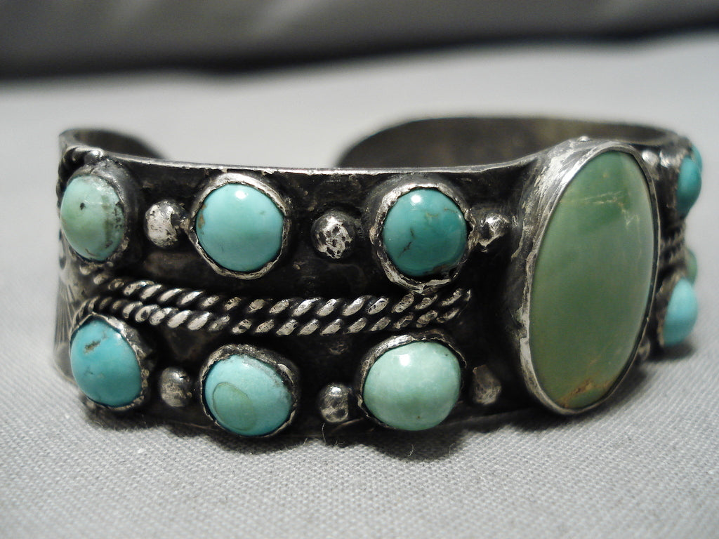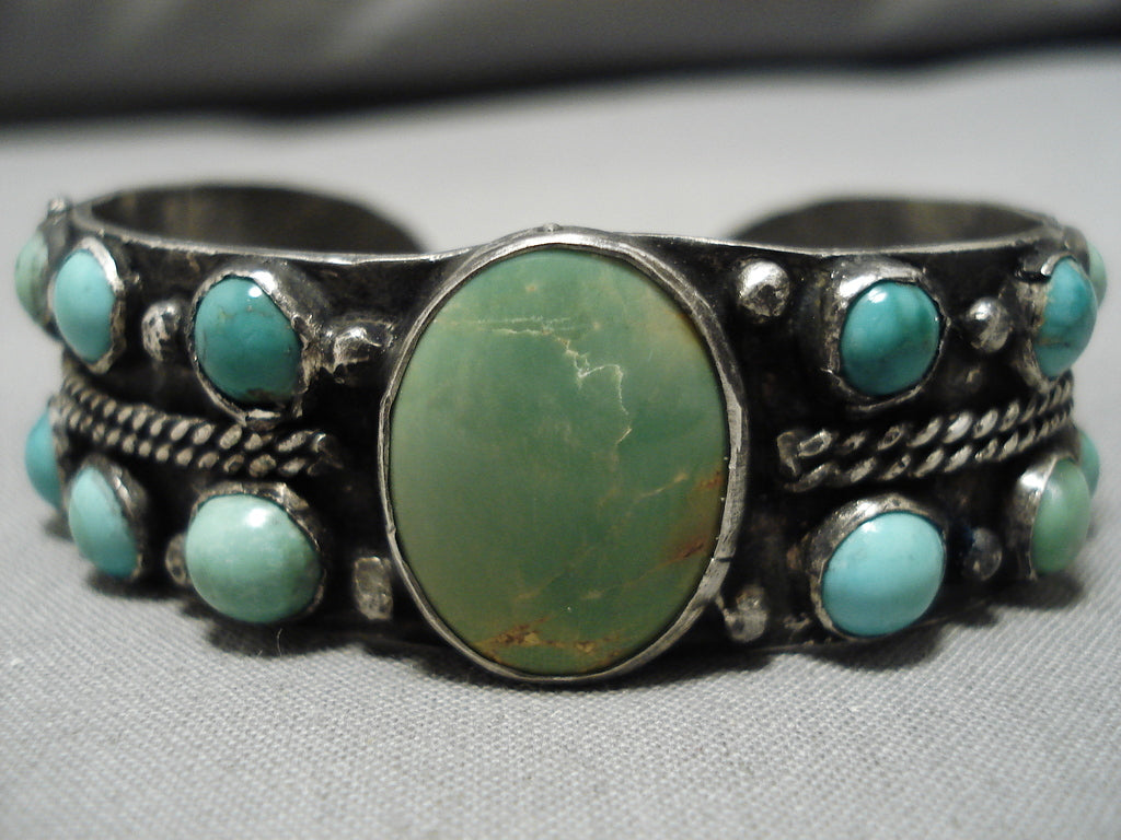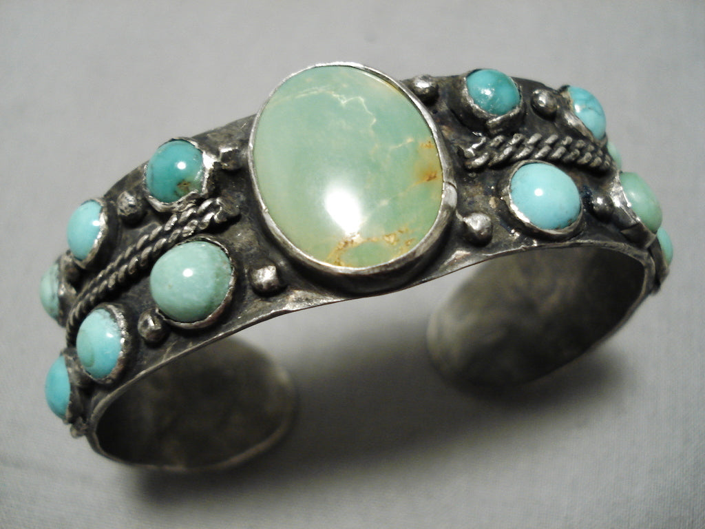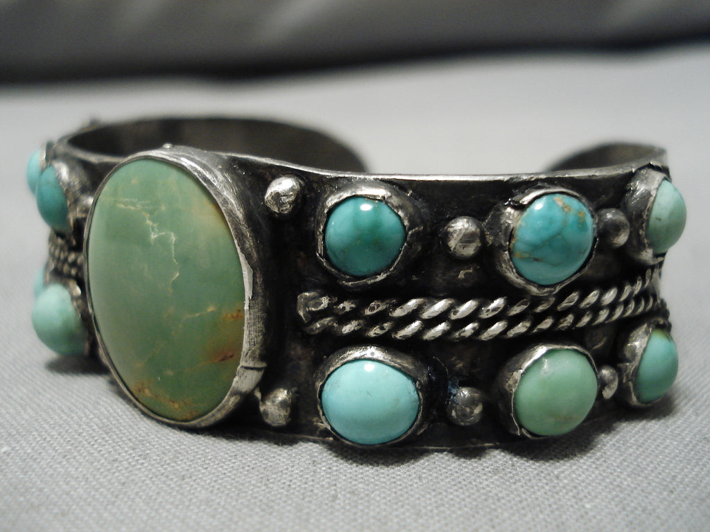 Early 1900's Vintage Native American Navajo Domed Cerrillos Turquoise Sterling Silver Bracelet