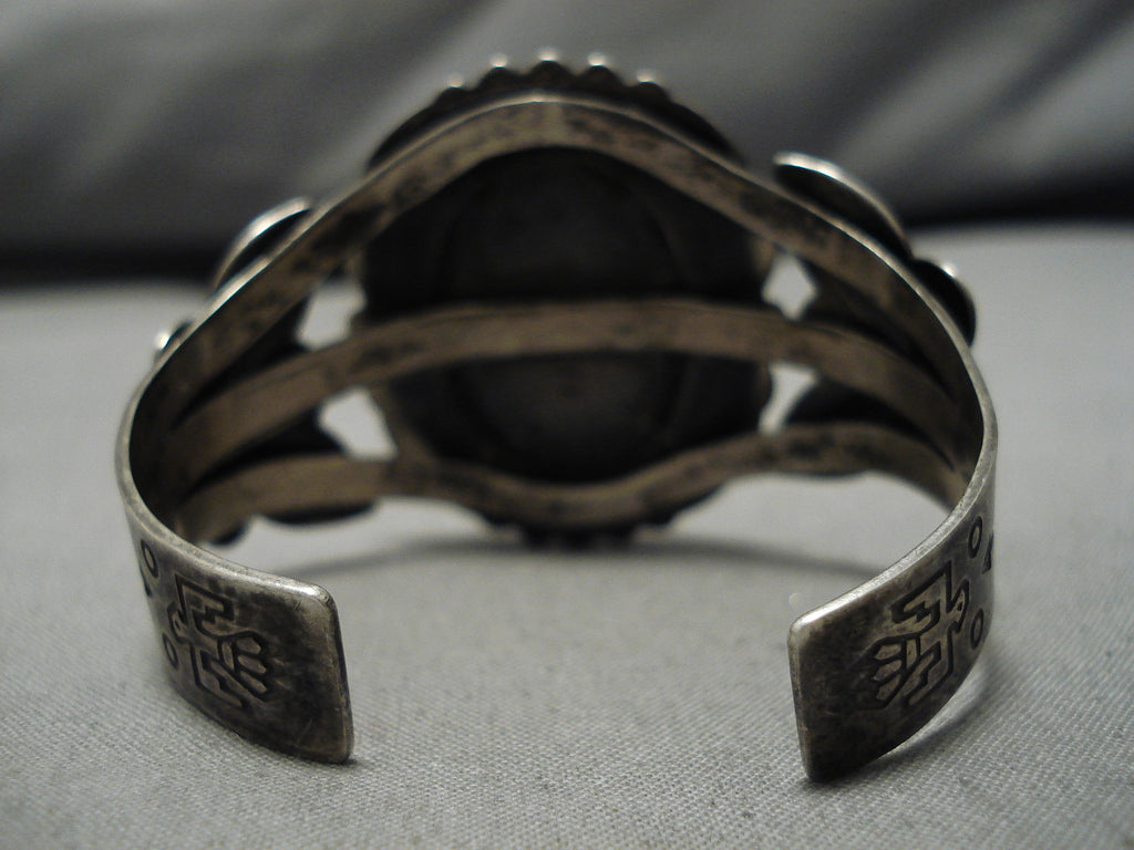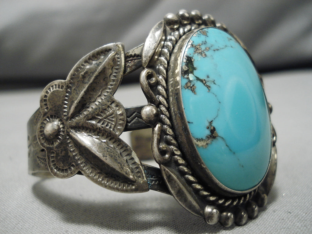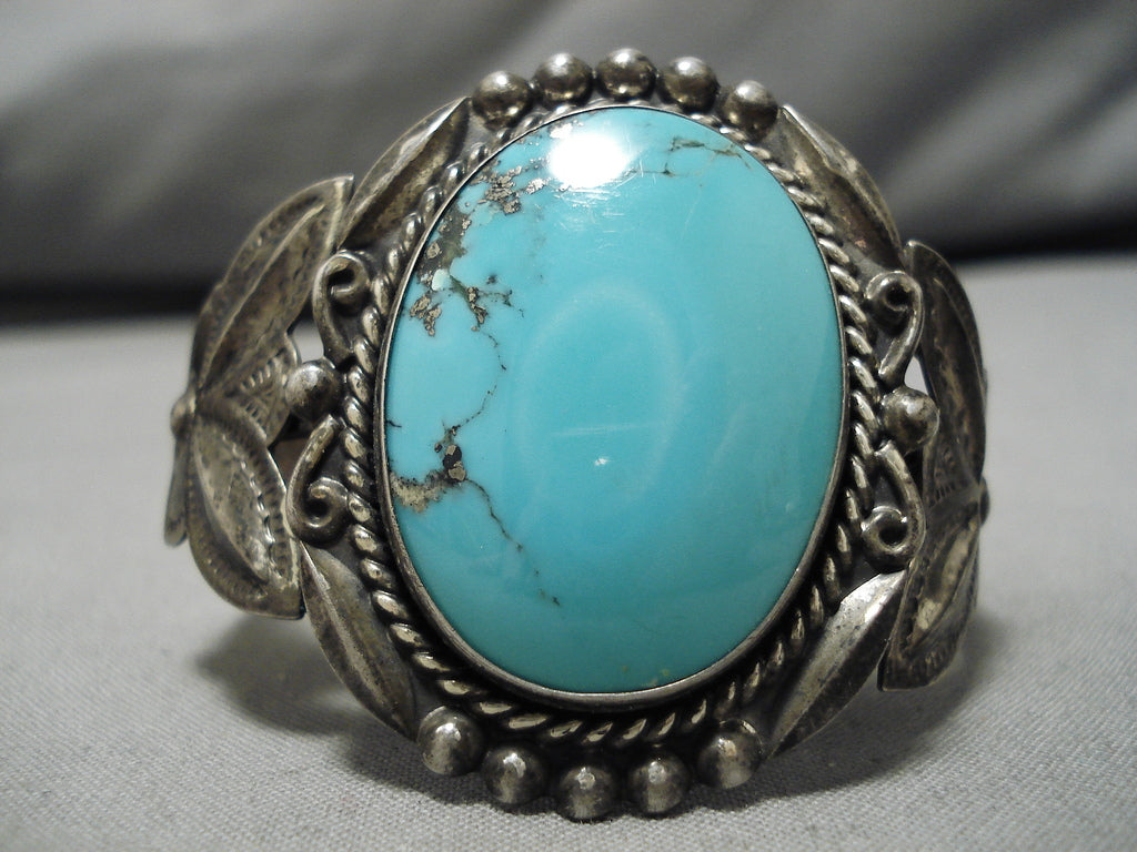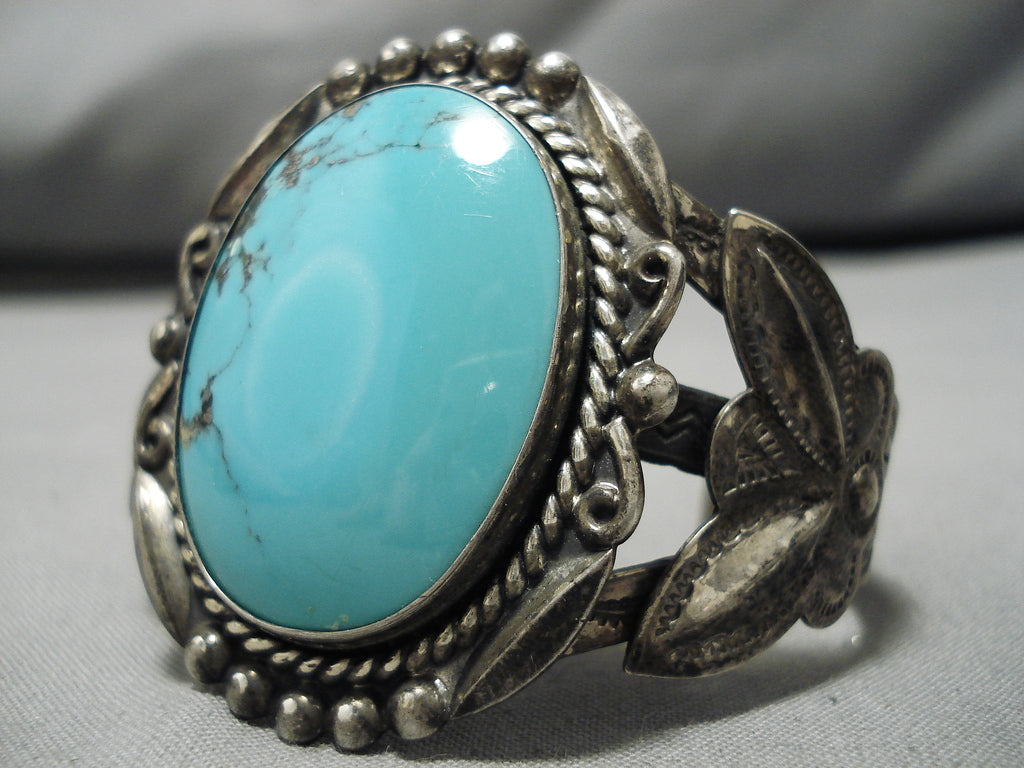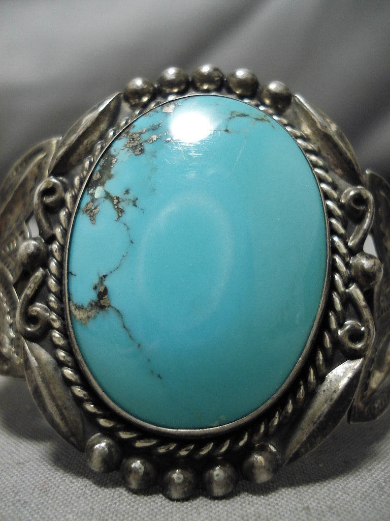 Early 1900's Vintage Native American Navajo Domed Turquoise Sterling Silver Bracelet Old