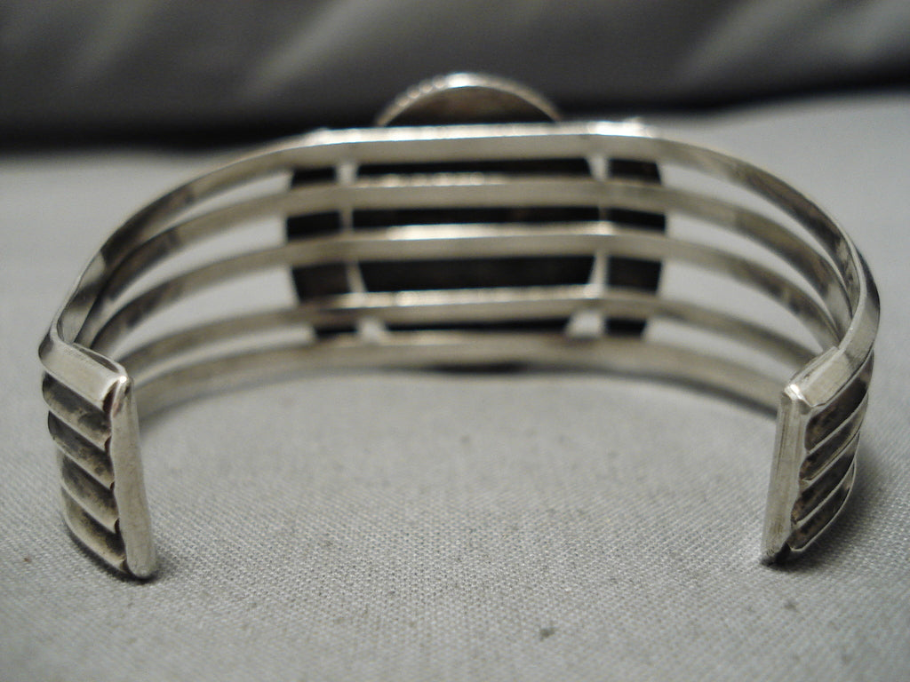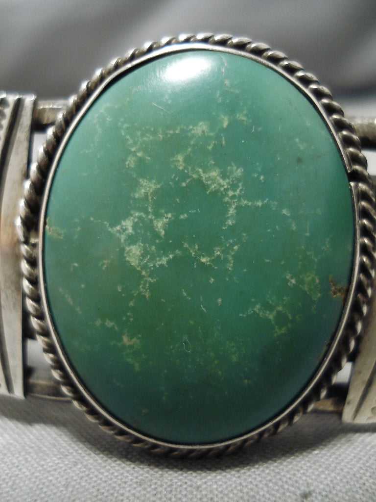 Early 1900's Vintage Native American Navajo Green Turquoise Sterling Silver Bracelet Old