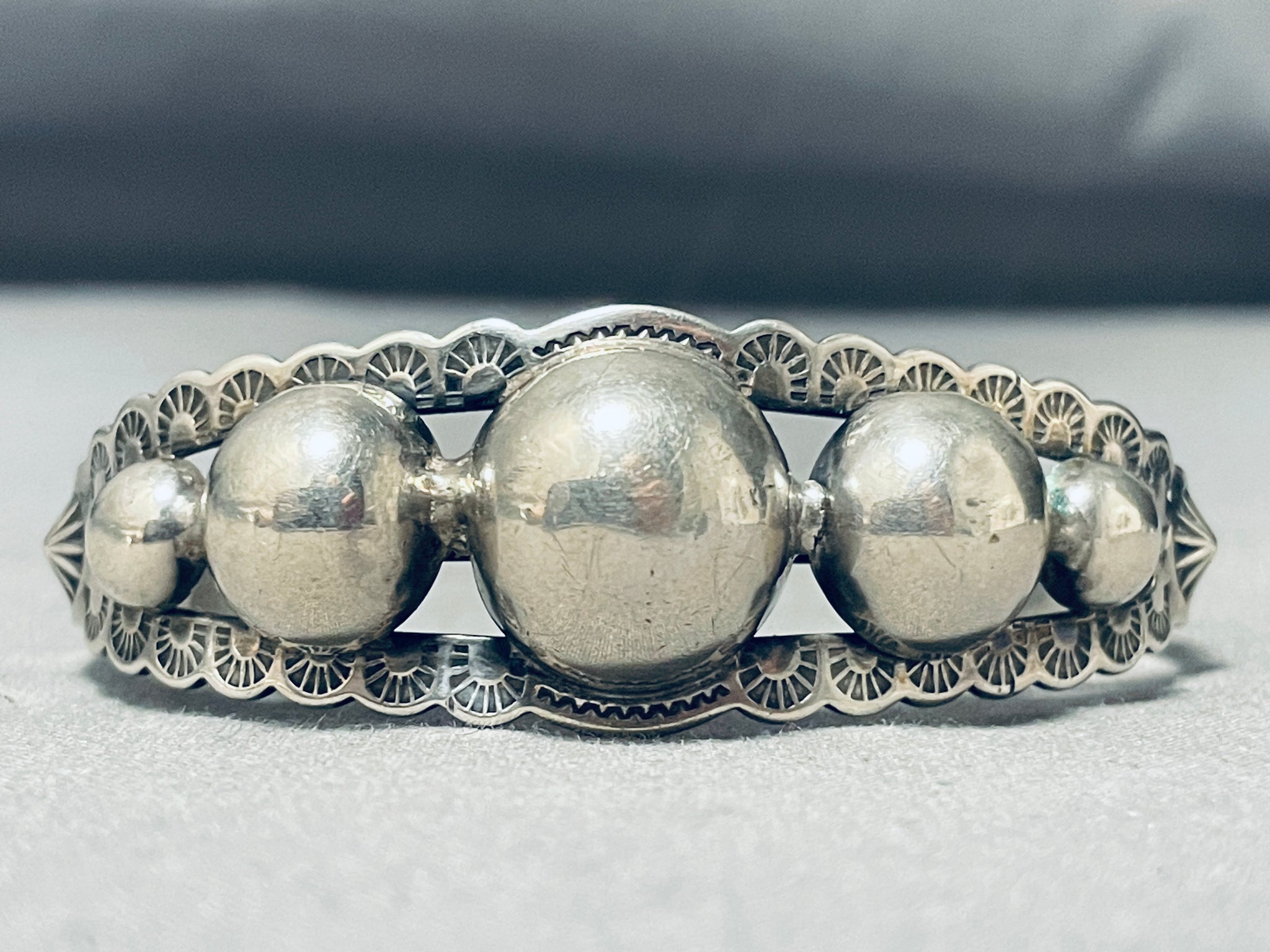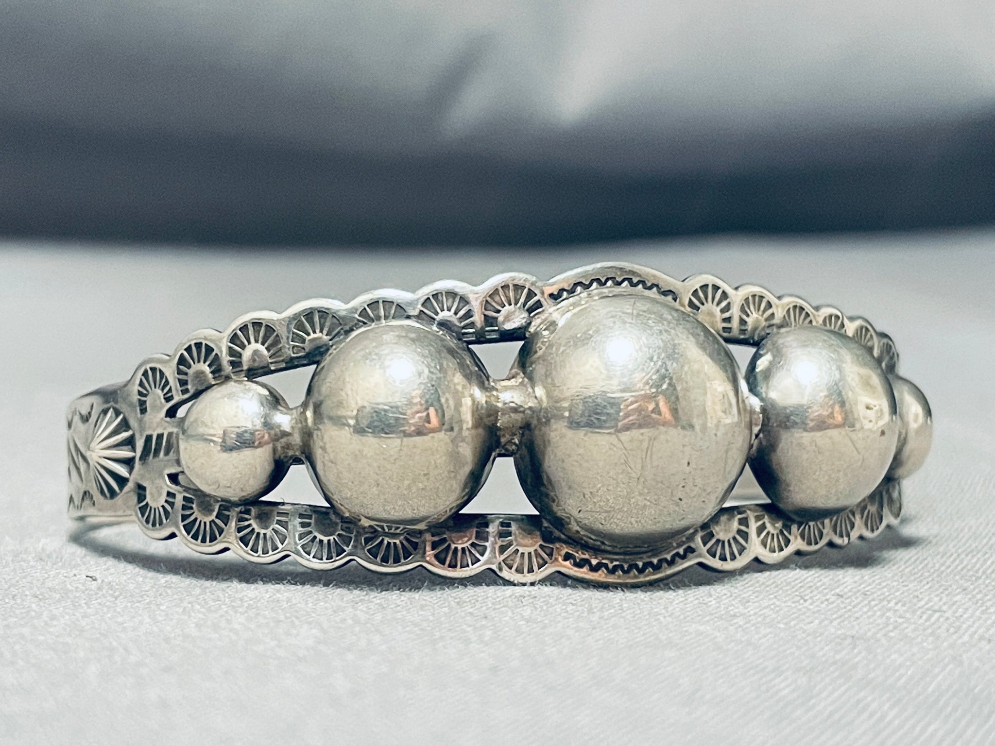 Early 1900's Vintage Native American Navajo Sterling Silver Sunstamp Bracelet Cuff