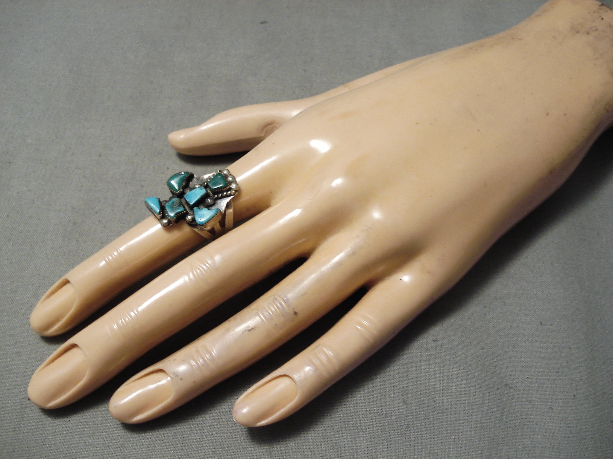 Early 1900's Vintage Native American Navajo Turquoise Sterling Silver Bird Ring Old