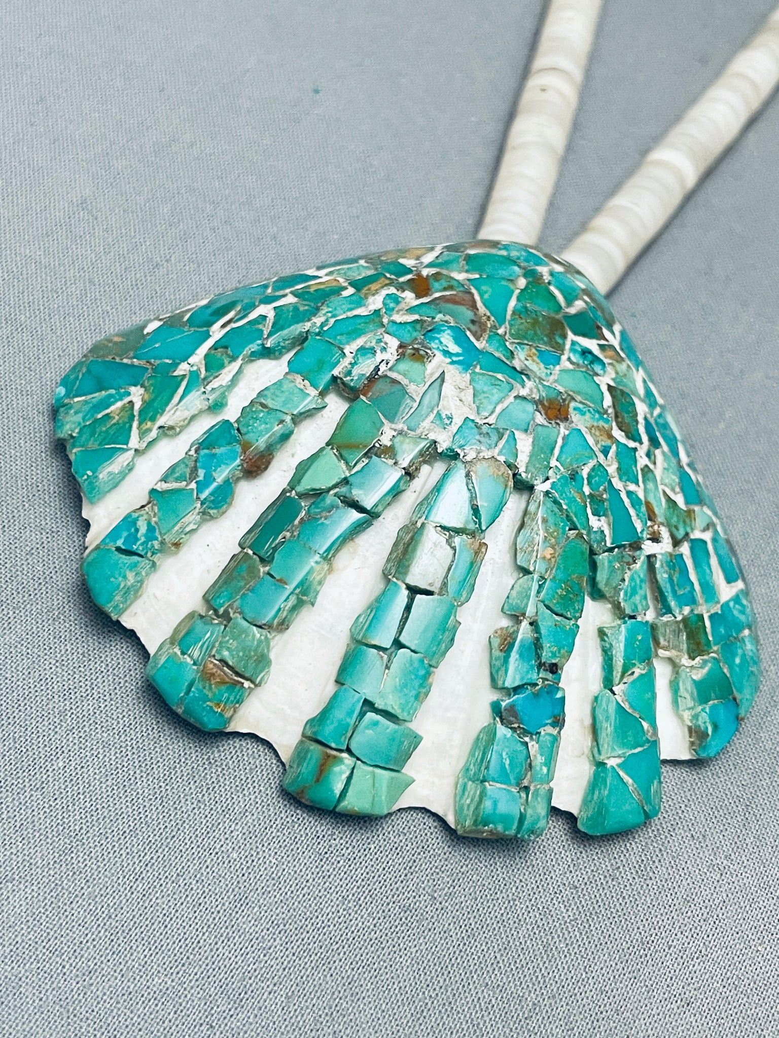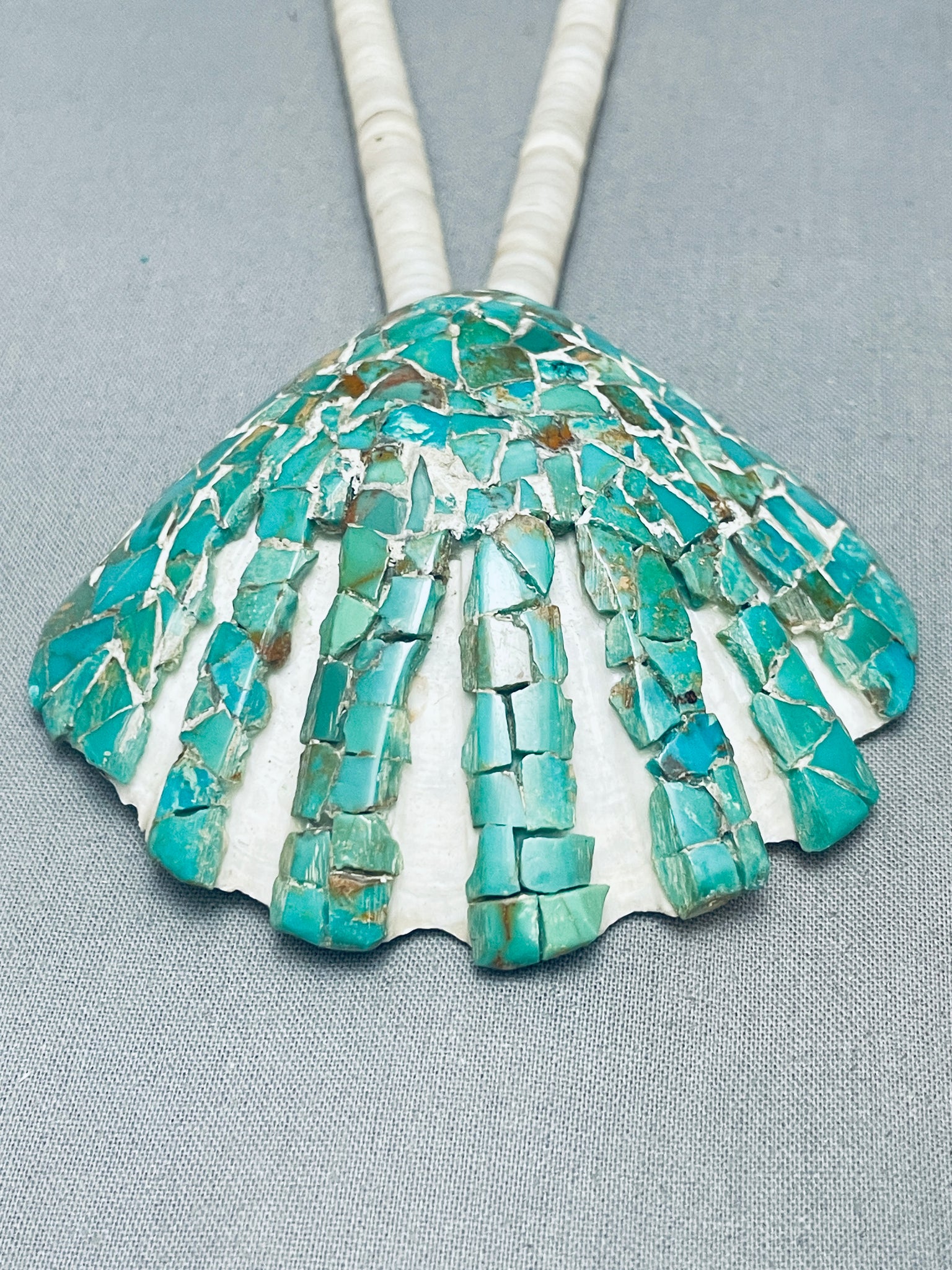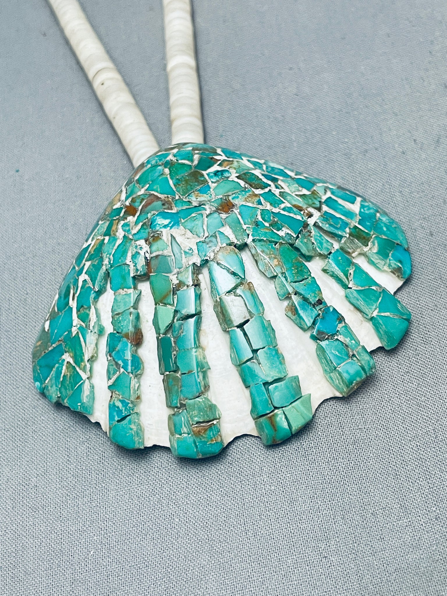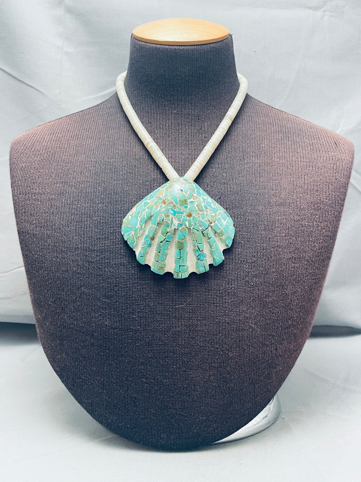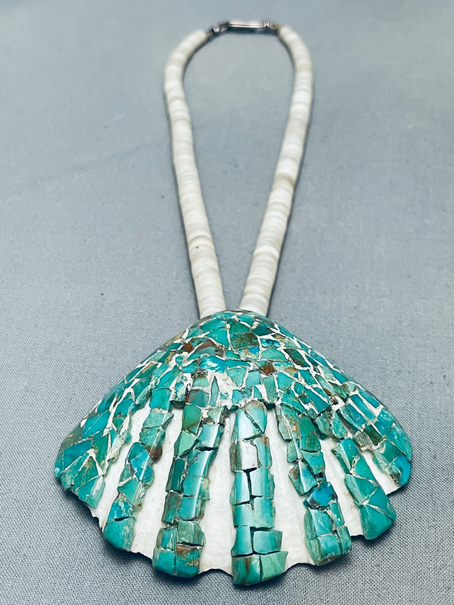 Early 1900's Vintage Santo Domingo Green Turquoise Sterling Silver Necklace