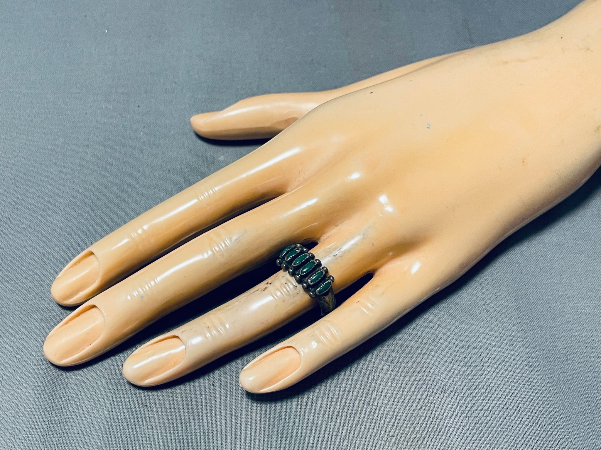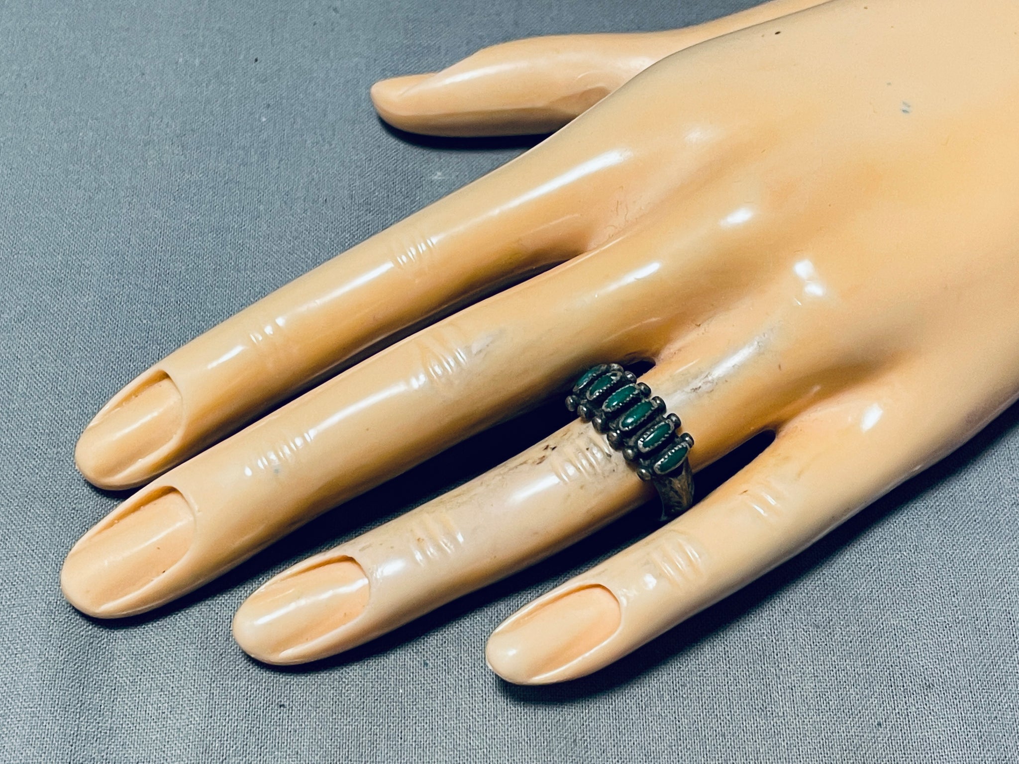 Early 1900's Vintage Zuni Green Turquoise Sterling Silver Needle Ring