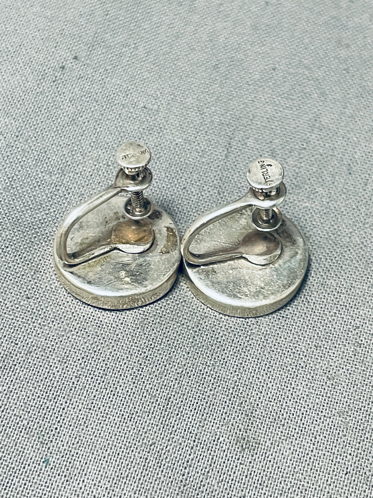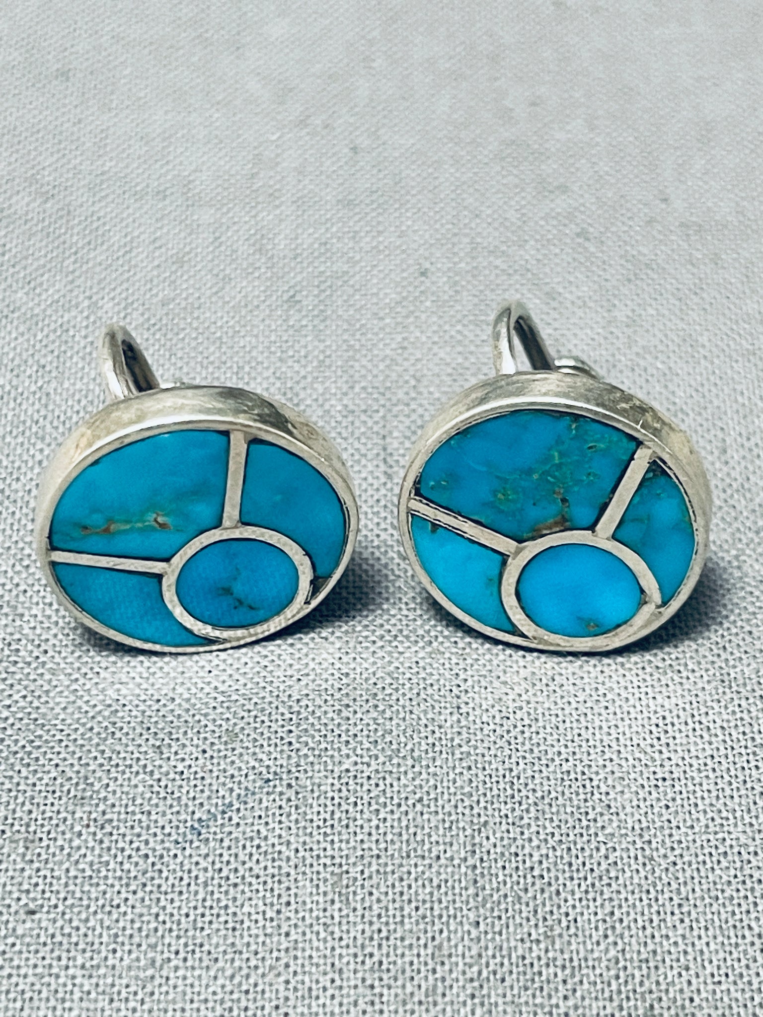 Early And Very Rare Vintage Native American Zuni Turquoise Inlay Sterling Silver Earrings