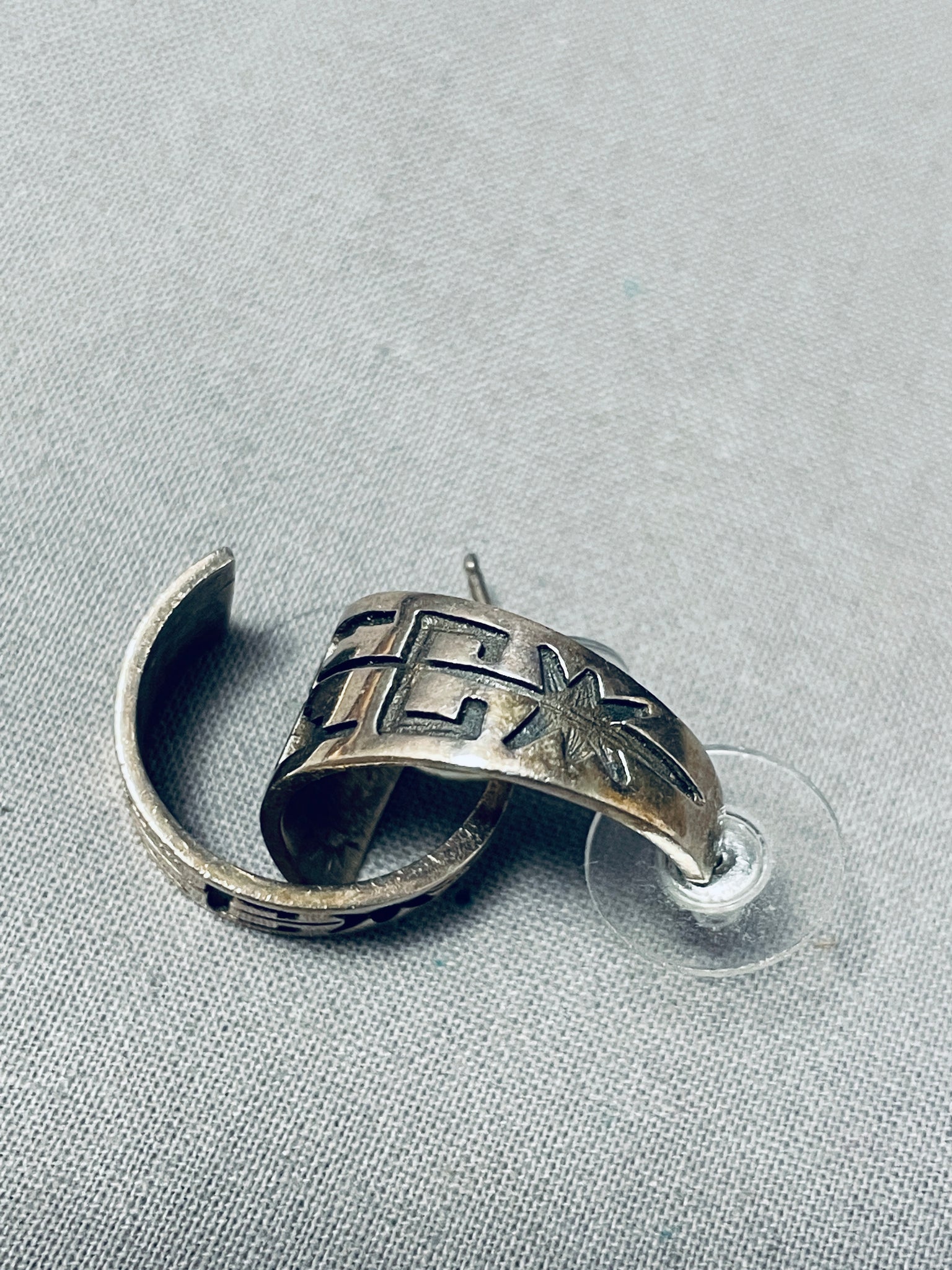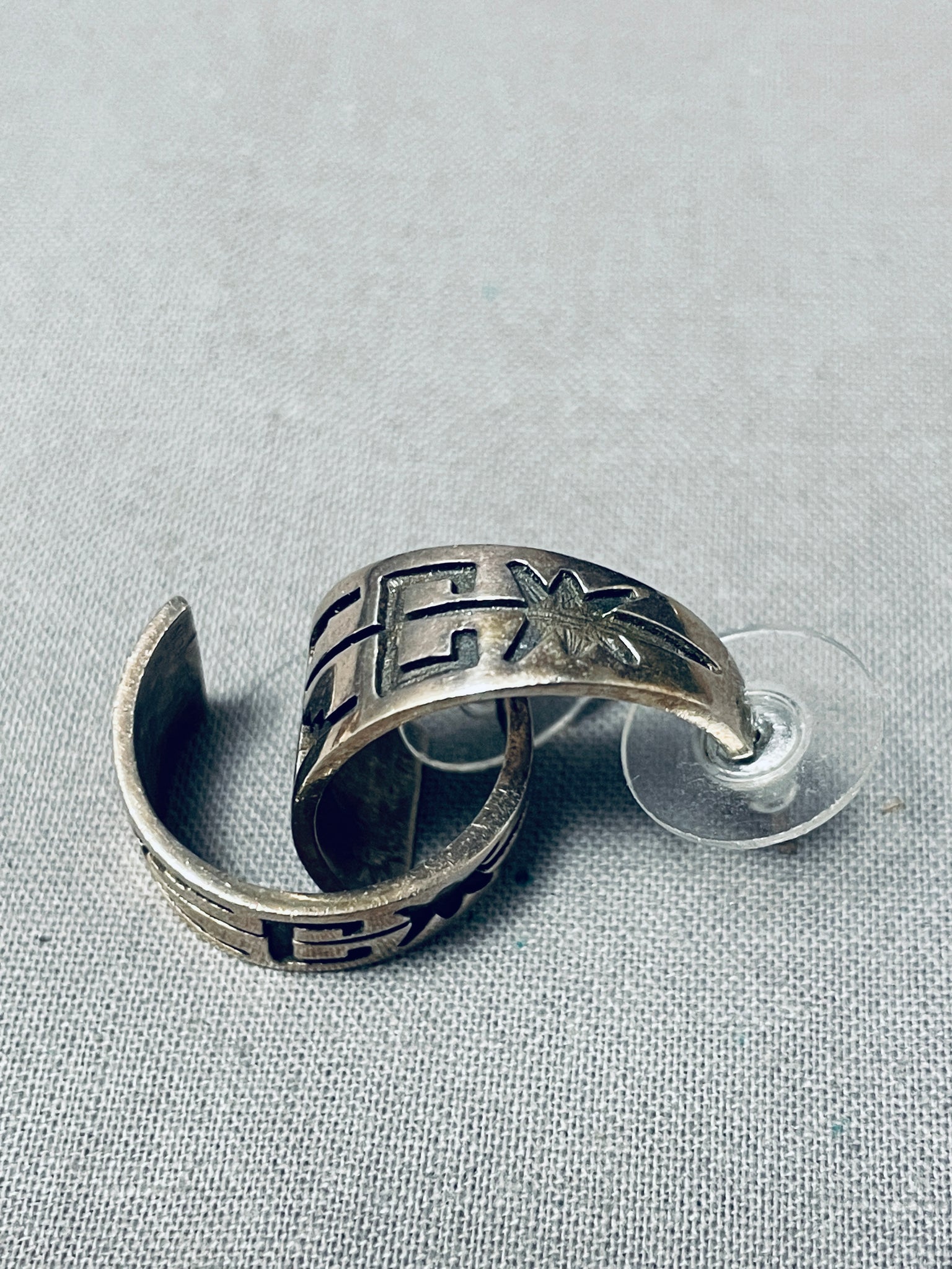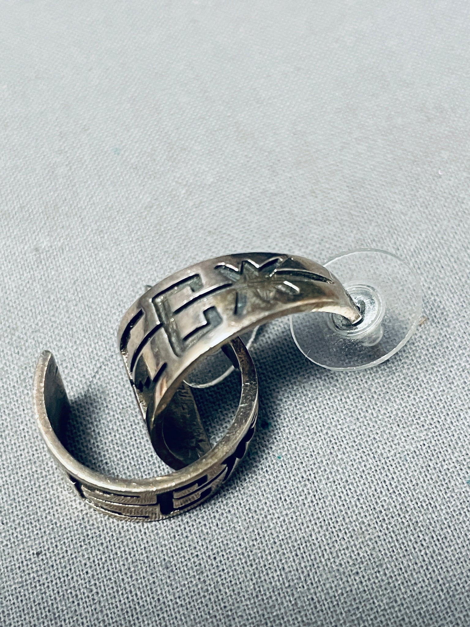 Early Authentic Vintage Native American Hopi Sterling Silver Geomtric Earrings