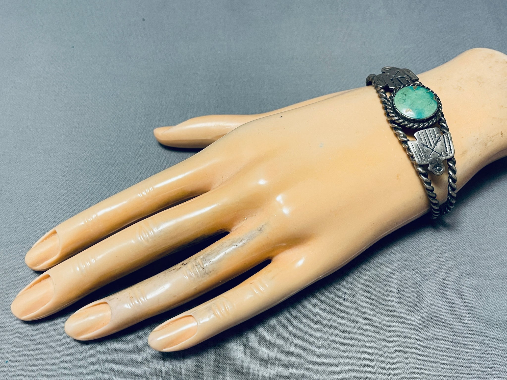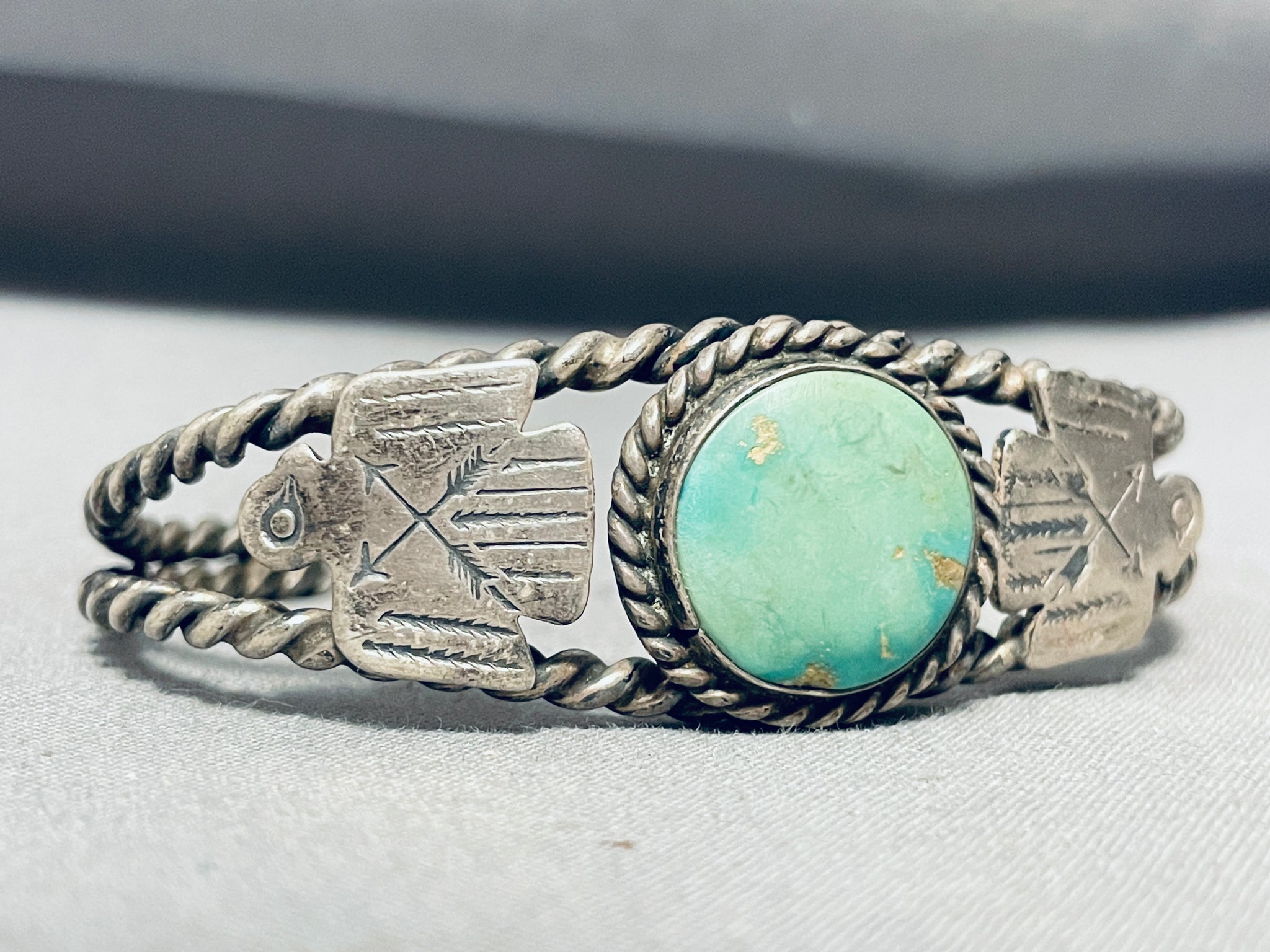 Early Coiled Thunderbird Vintage Native American Navajo Cerrillos Turquoise Bracelet