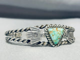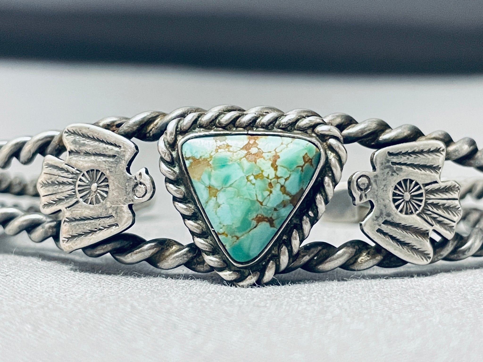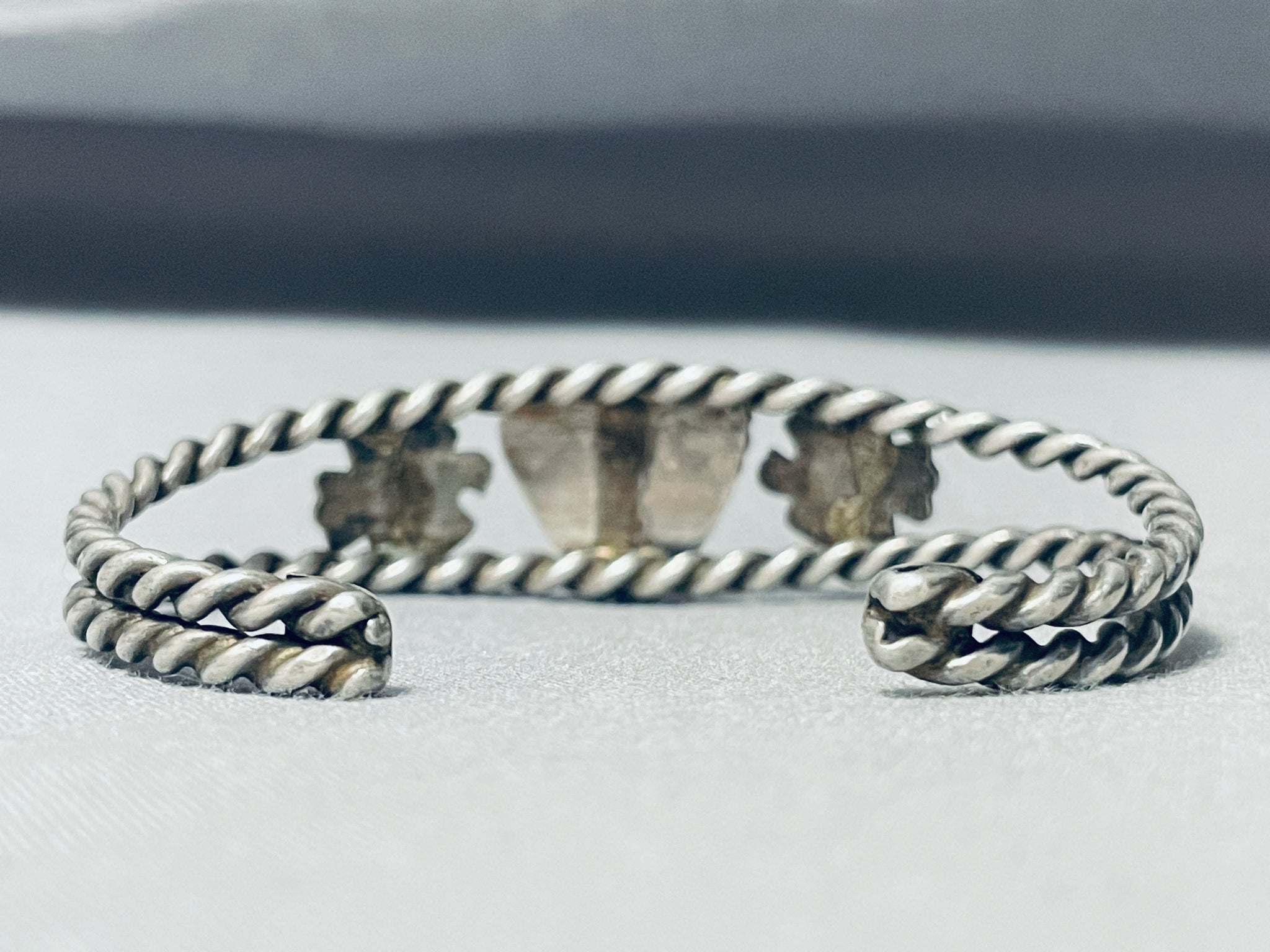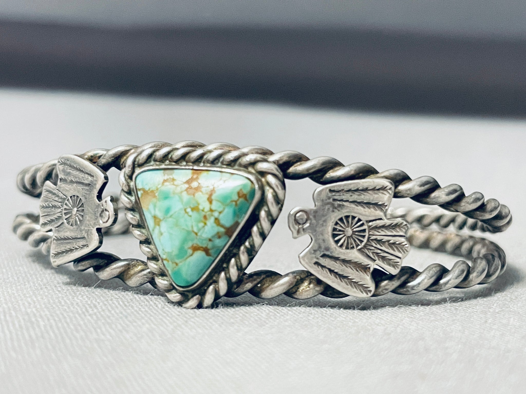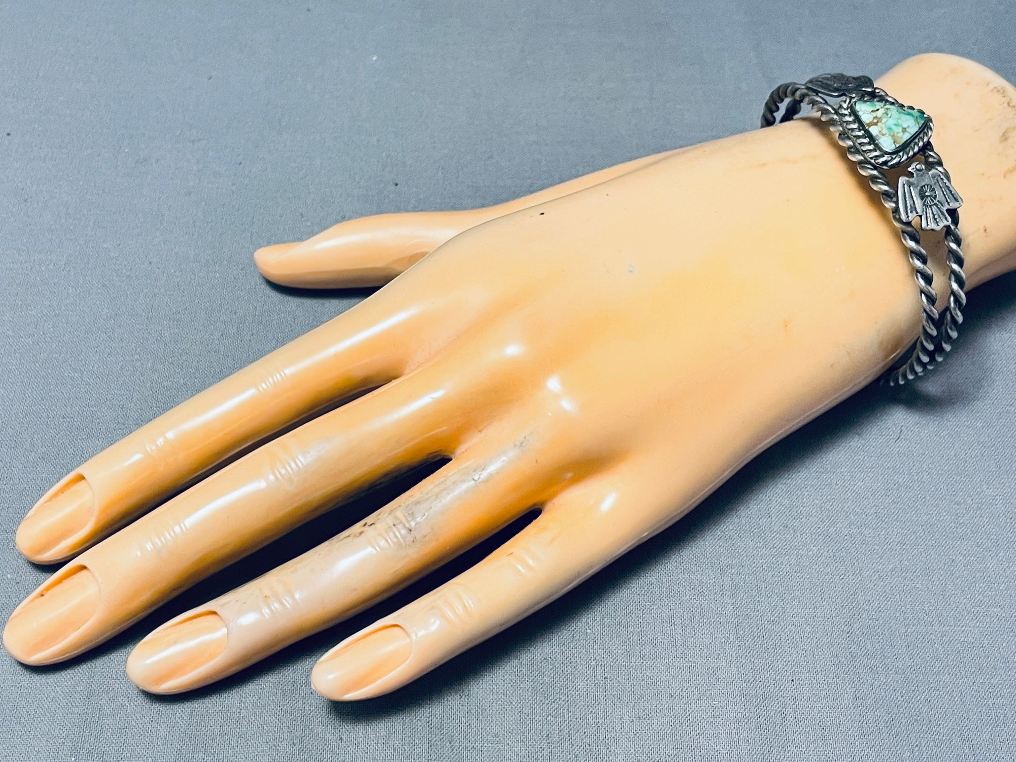 Early Coiled Vintage Native American Navajo Carico Lake Turquoise Sterling Silver Bracelet
