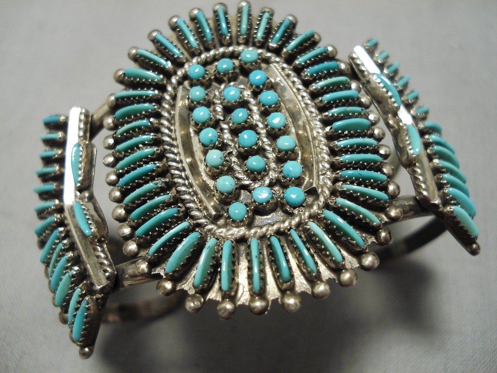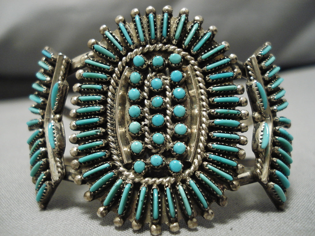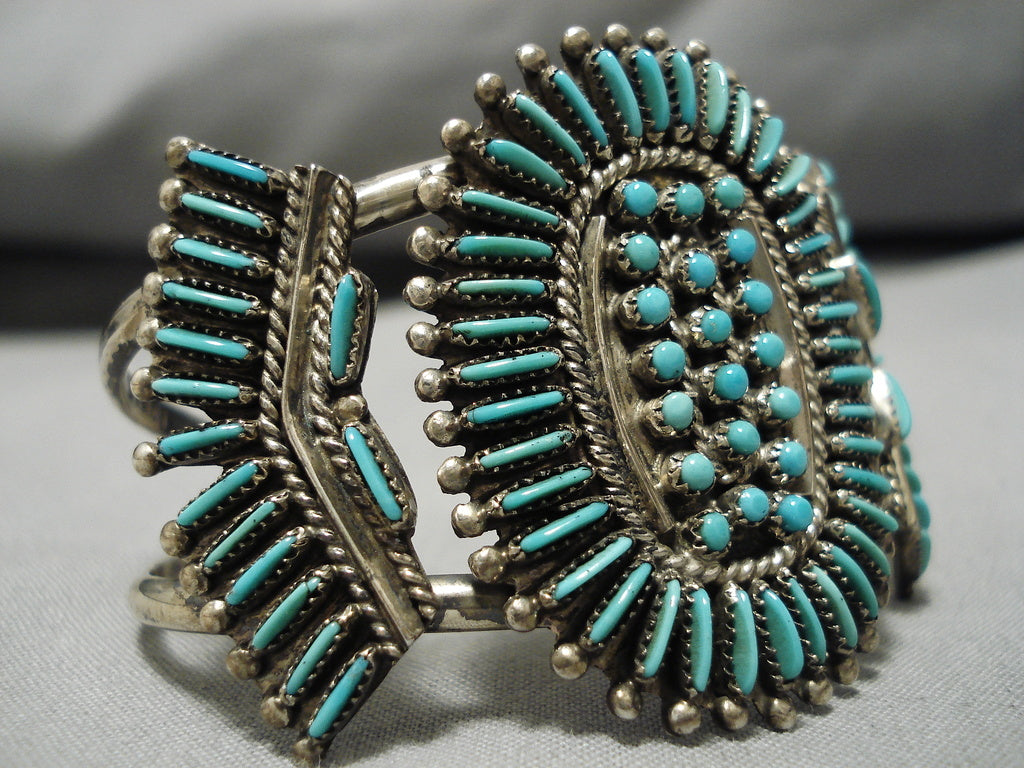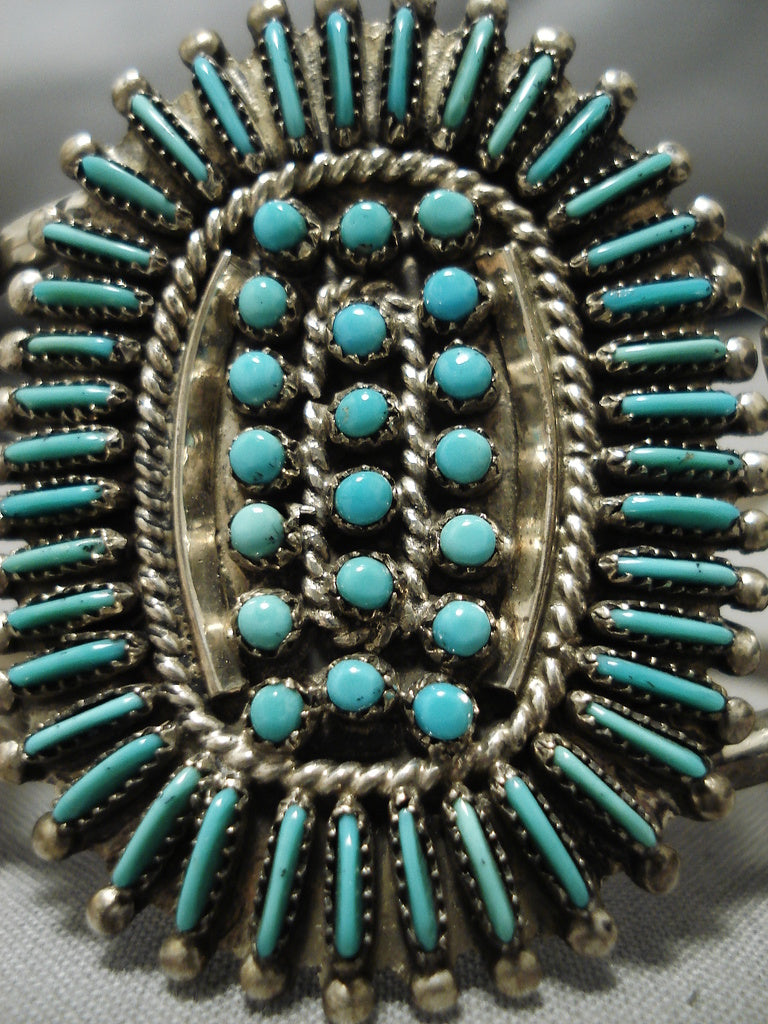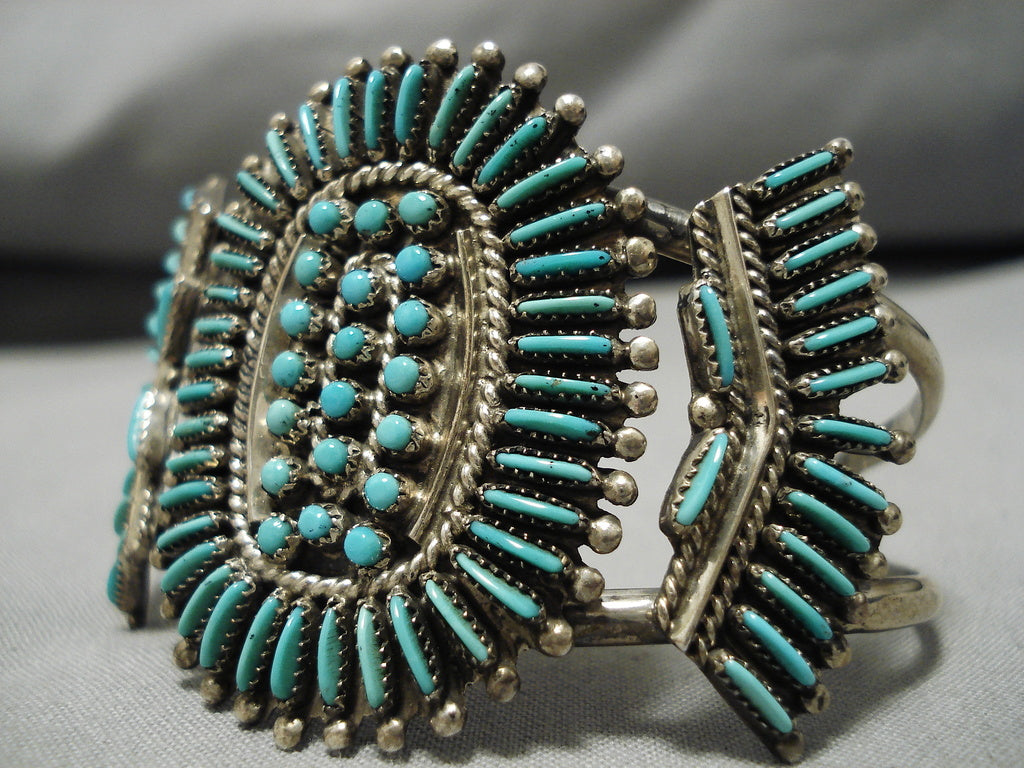 Early Museum Vintage Native American Navajo Zuni Turquoise Sterling Silver Bracelet Old