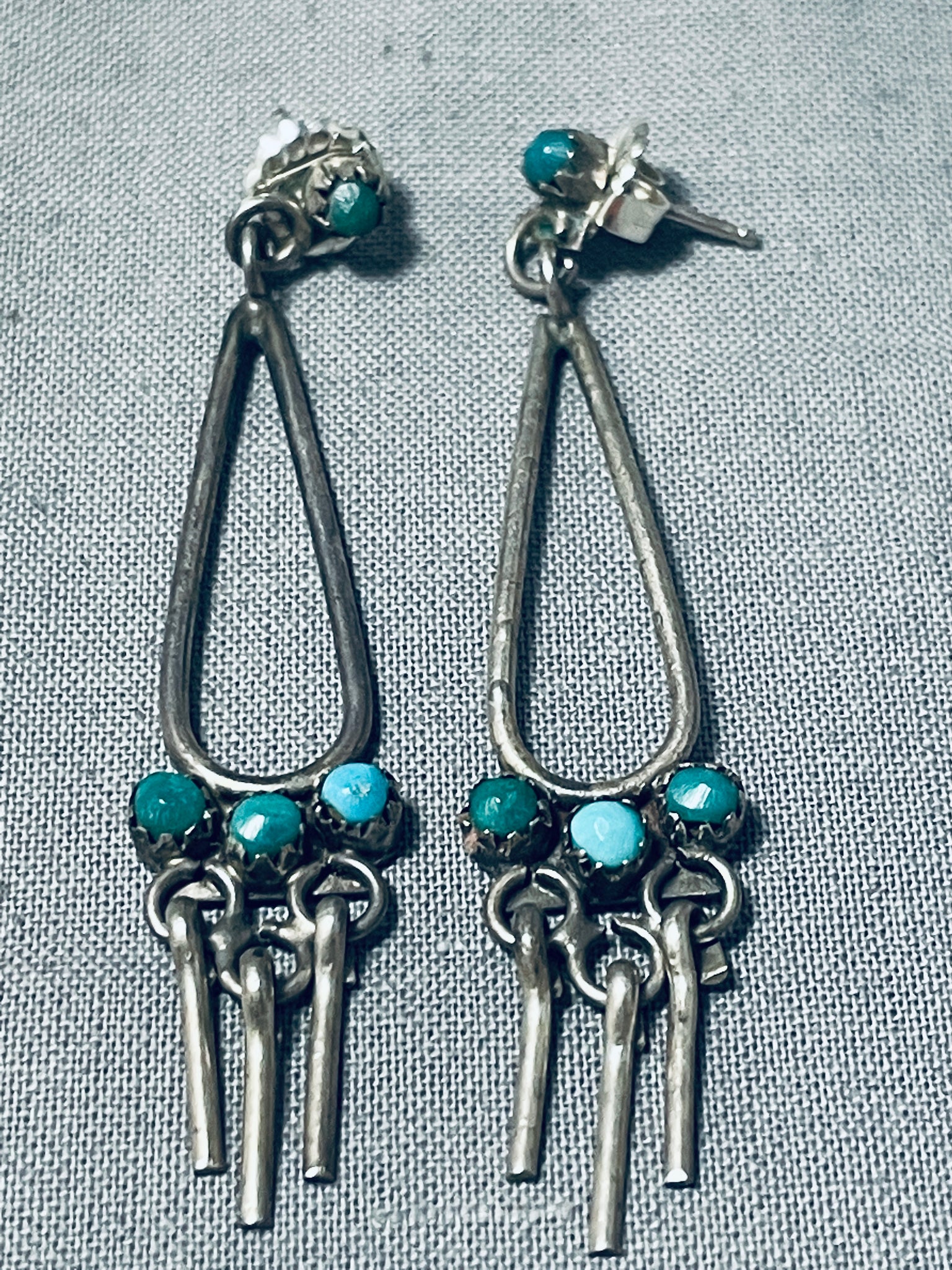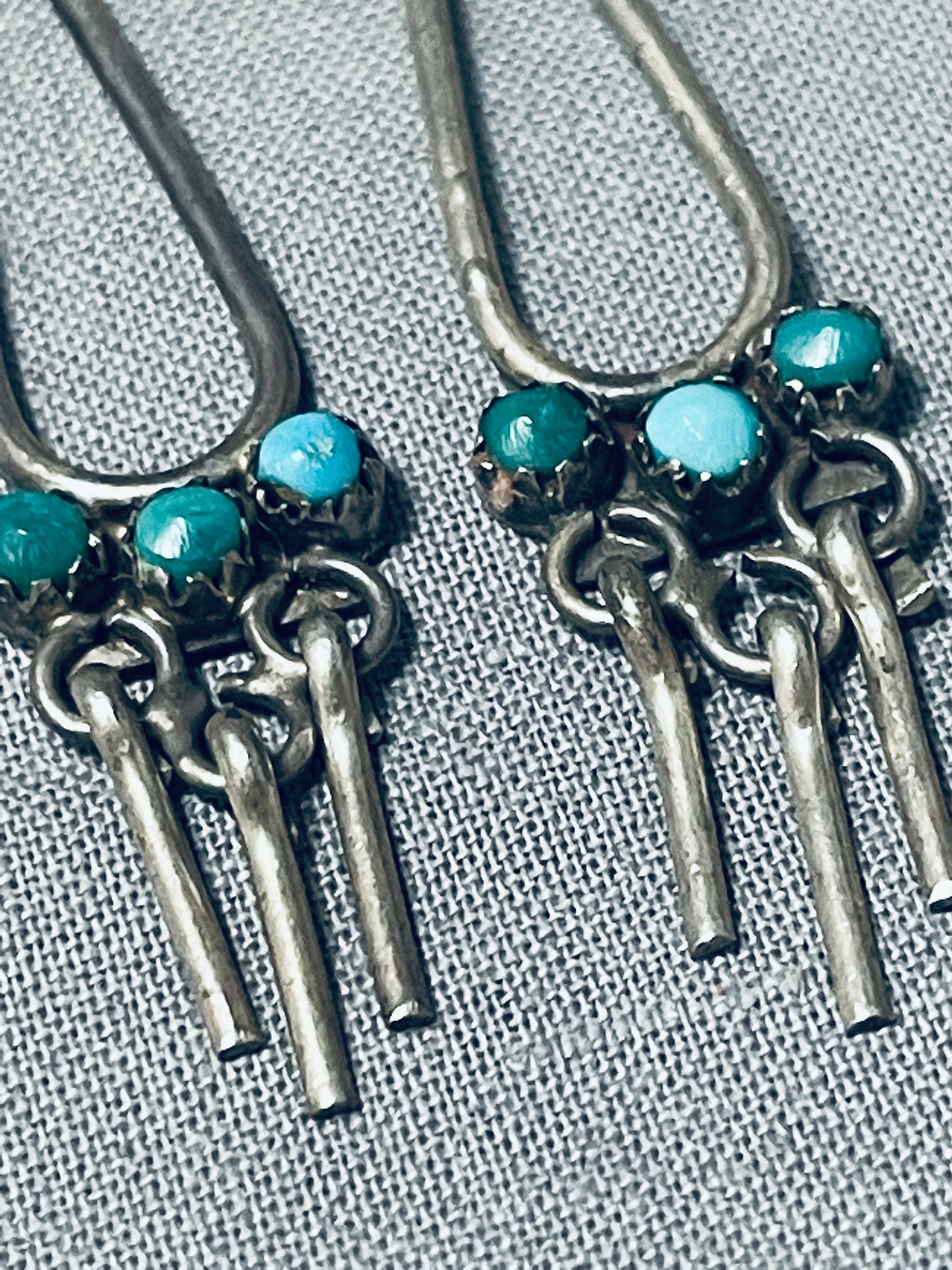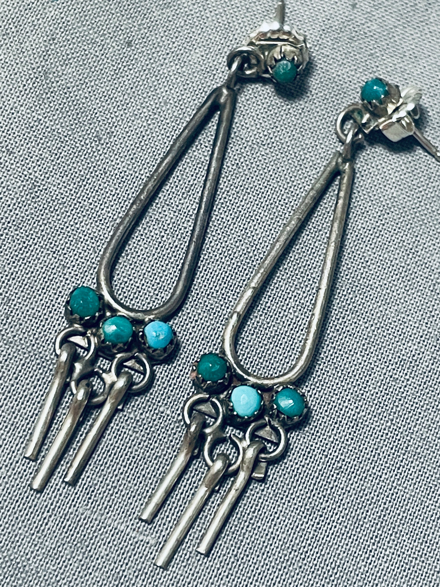 Early Museum Vintage Native American Zuni Turquoise Sterling Silver Earrings