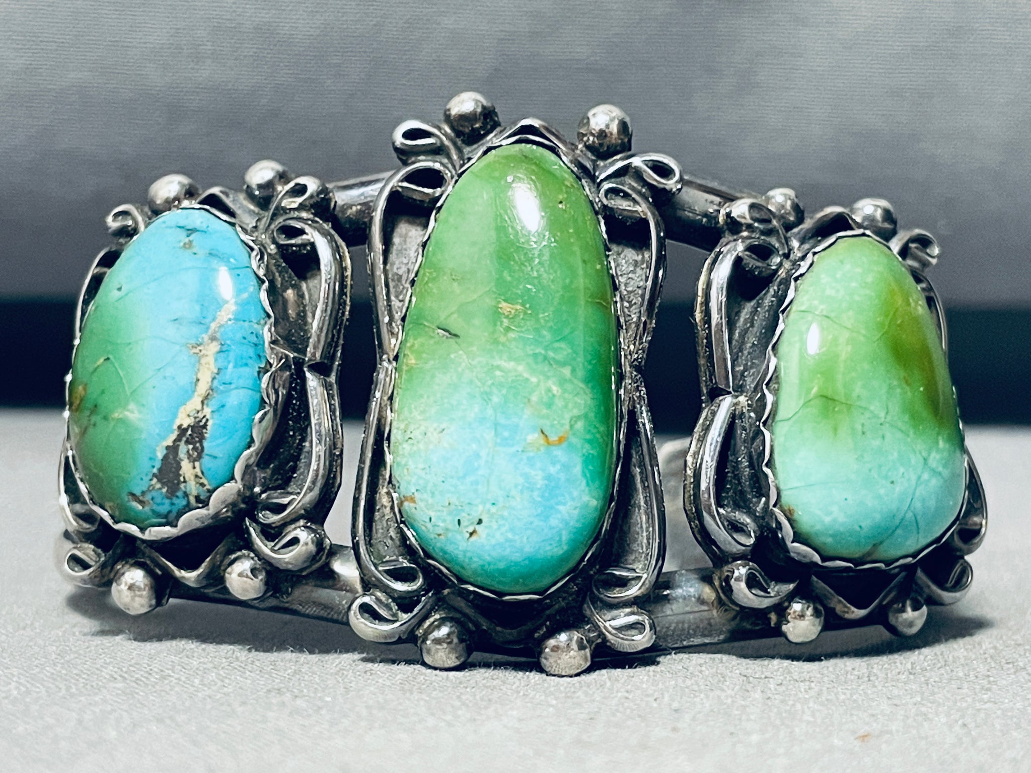 Early Royston Turquoise! Vintage Native American Navajo Sterling Silver Bracelet Old