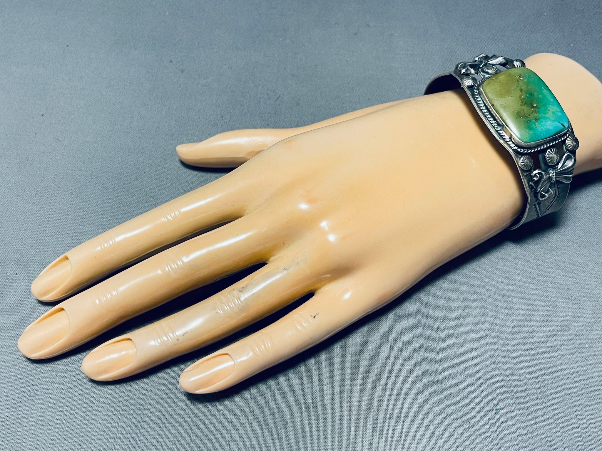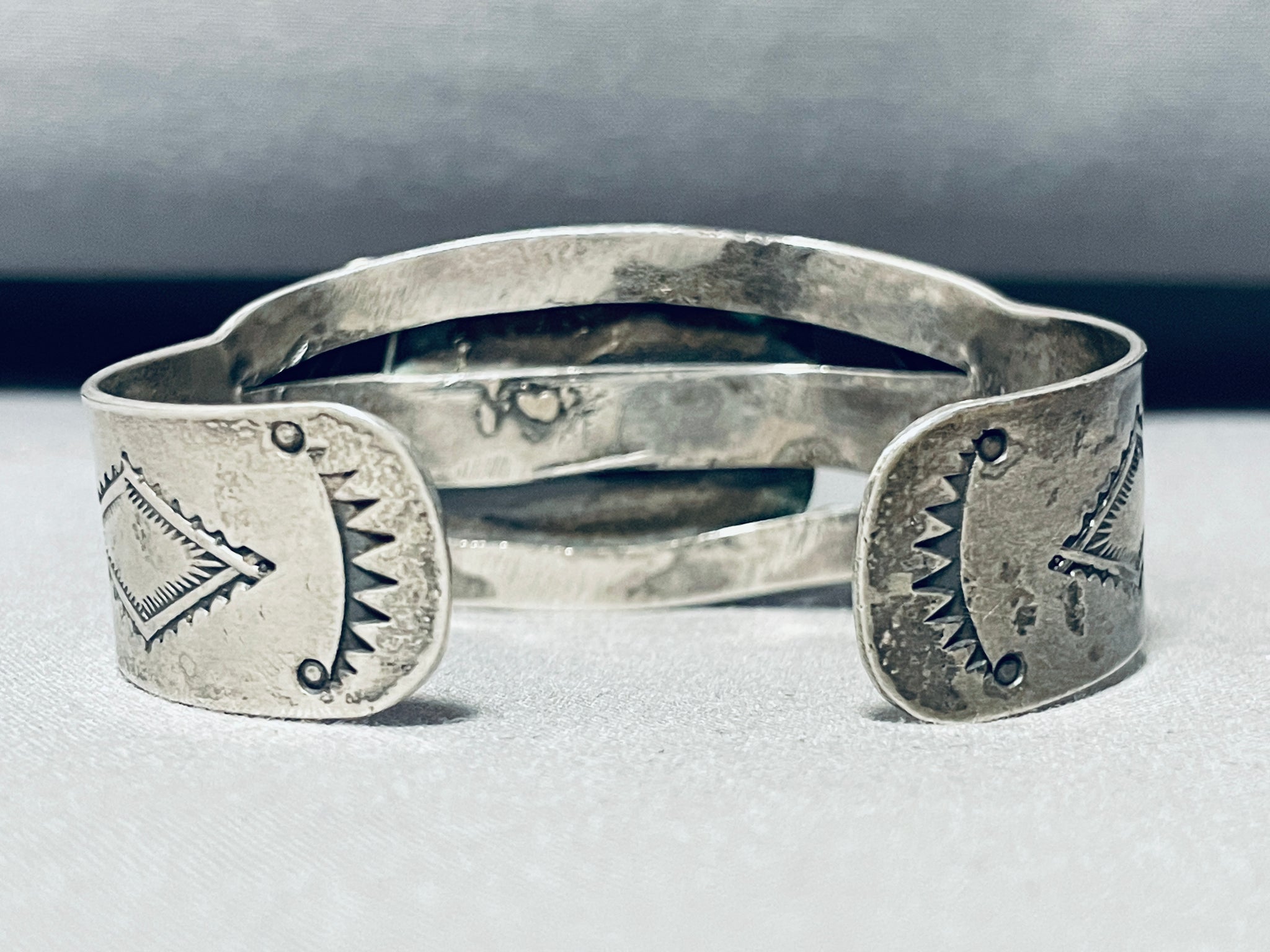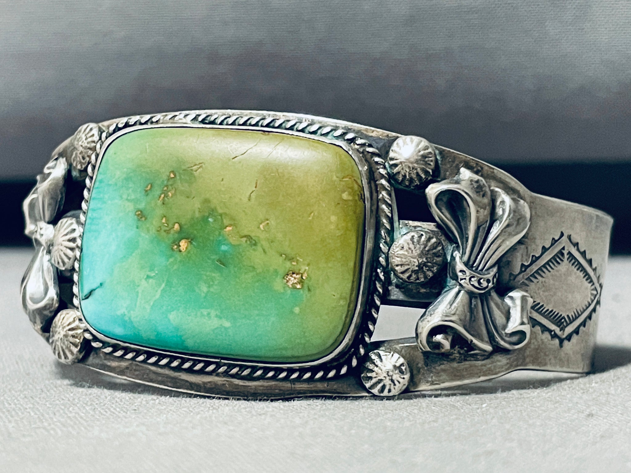Early Sturdy Vintage Native American Navajo Squared Royston Turquoise Sterling Silver Bracelet