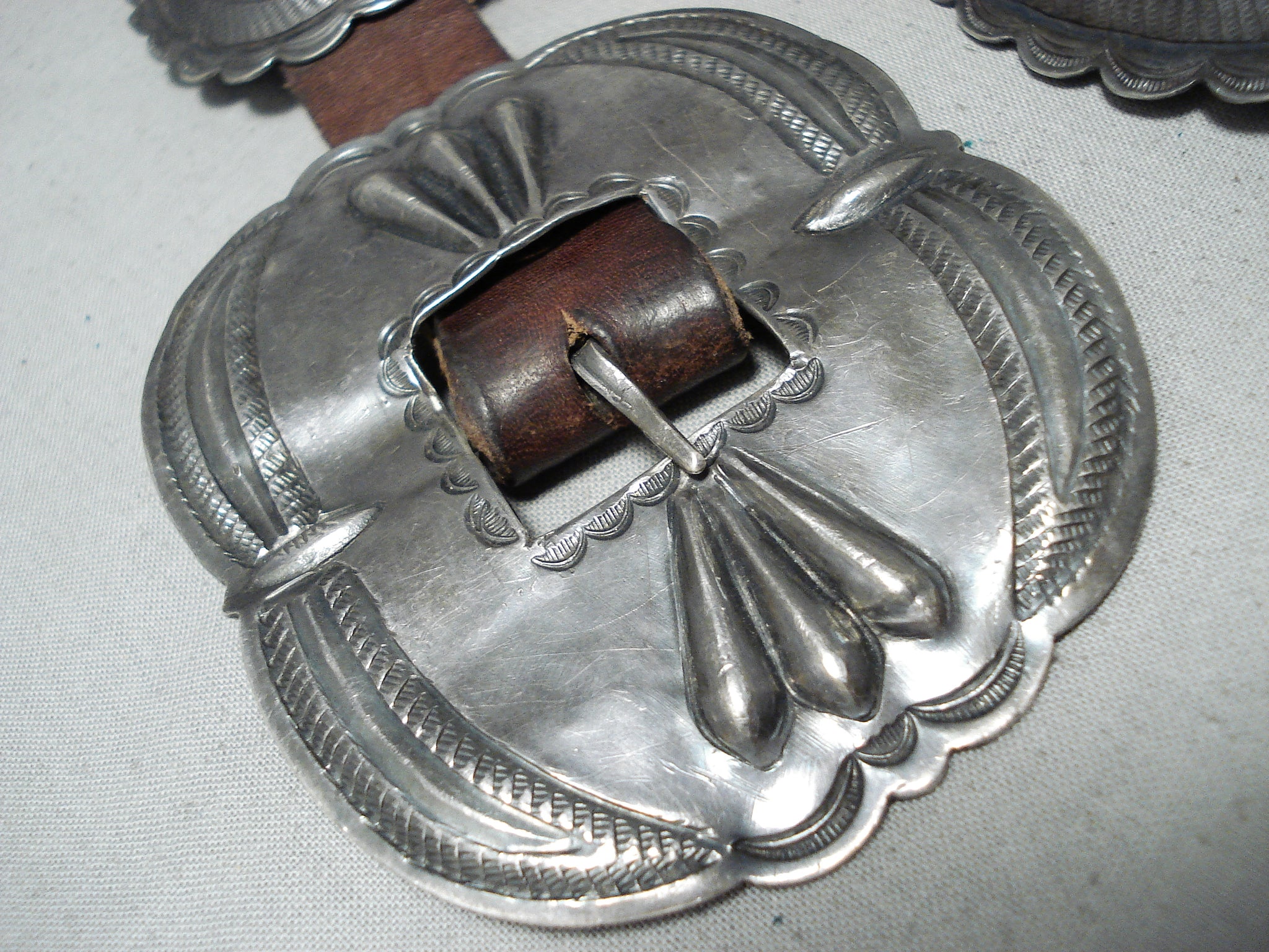 Early Very Old Vintage Native American Navajo Sterling Silver Hand Tooled Concho Belt