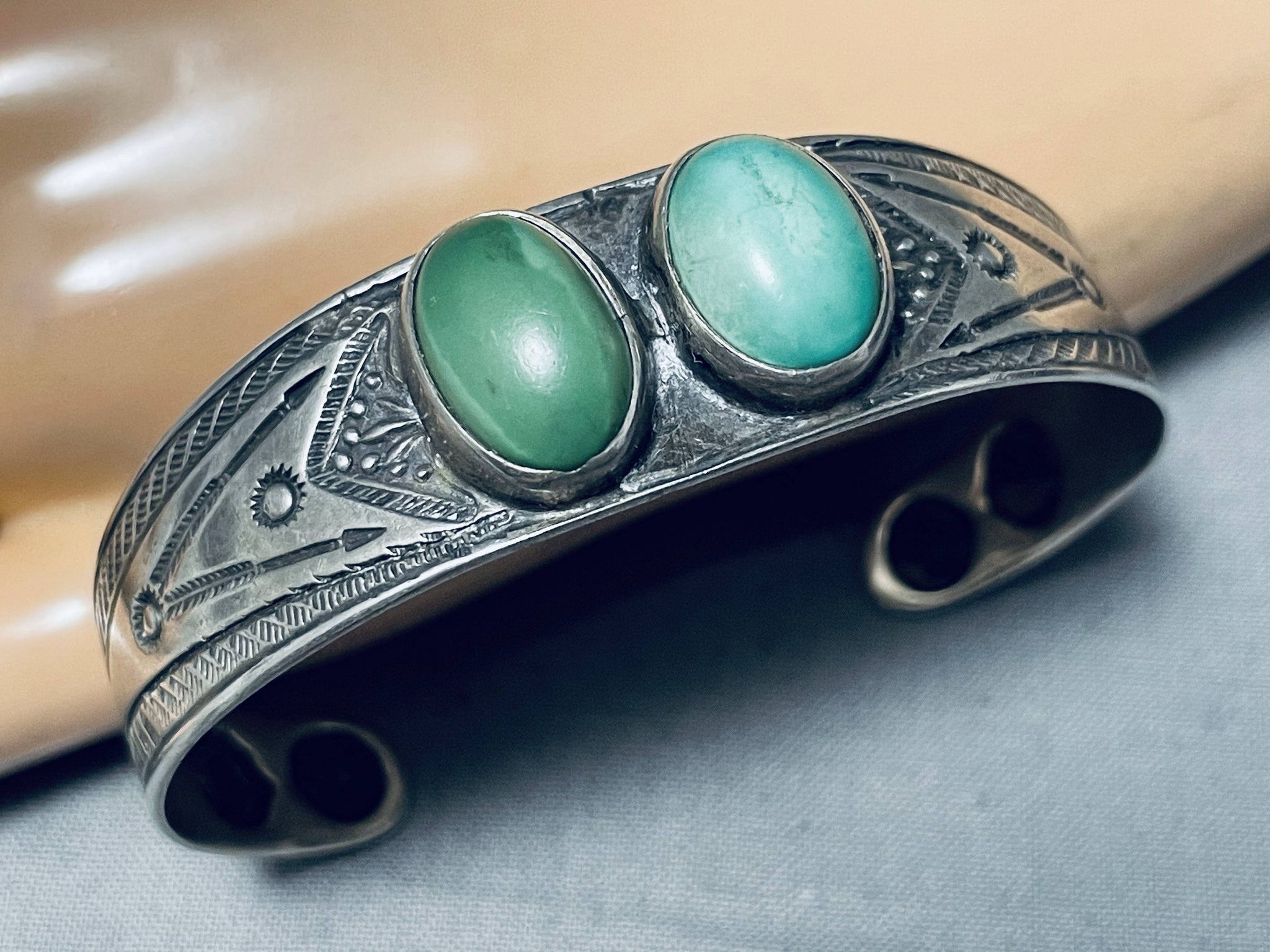 Early Vintage Native American Navajo Carrillos Turquoise Sterling Silver Bracelet Old