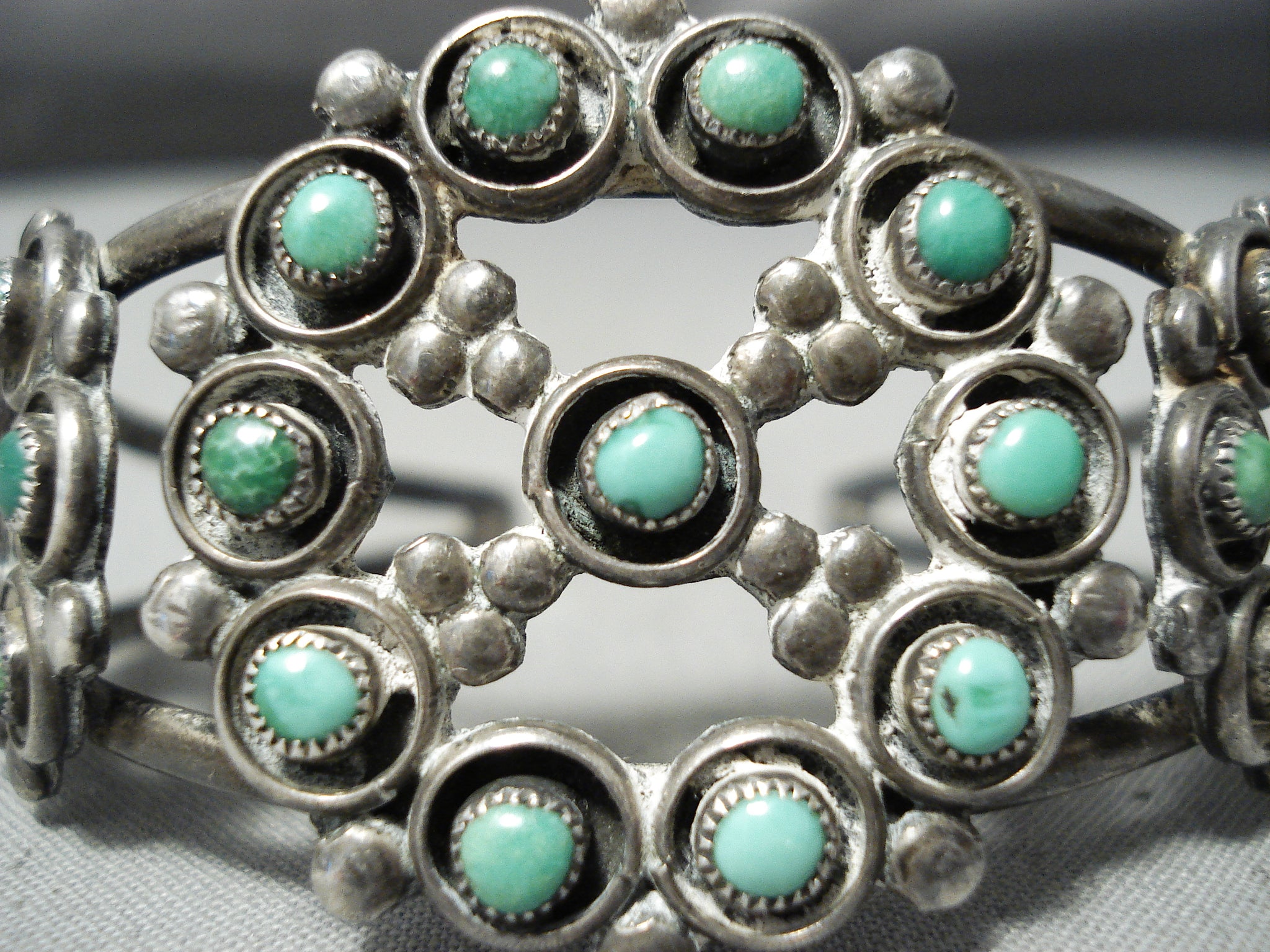 Early Vintage Native American Navajo Cerrillos Snake Eyes Turquoise Sterling Silver Bracelet Old
