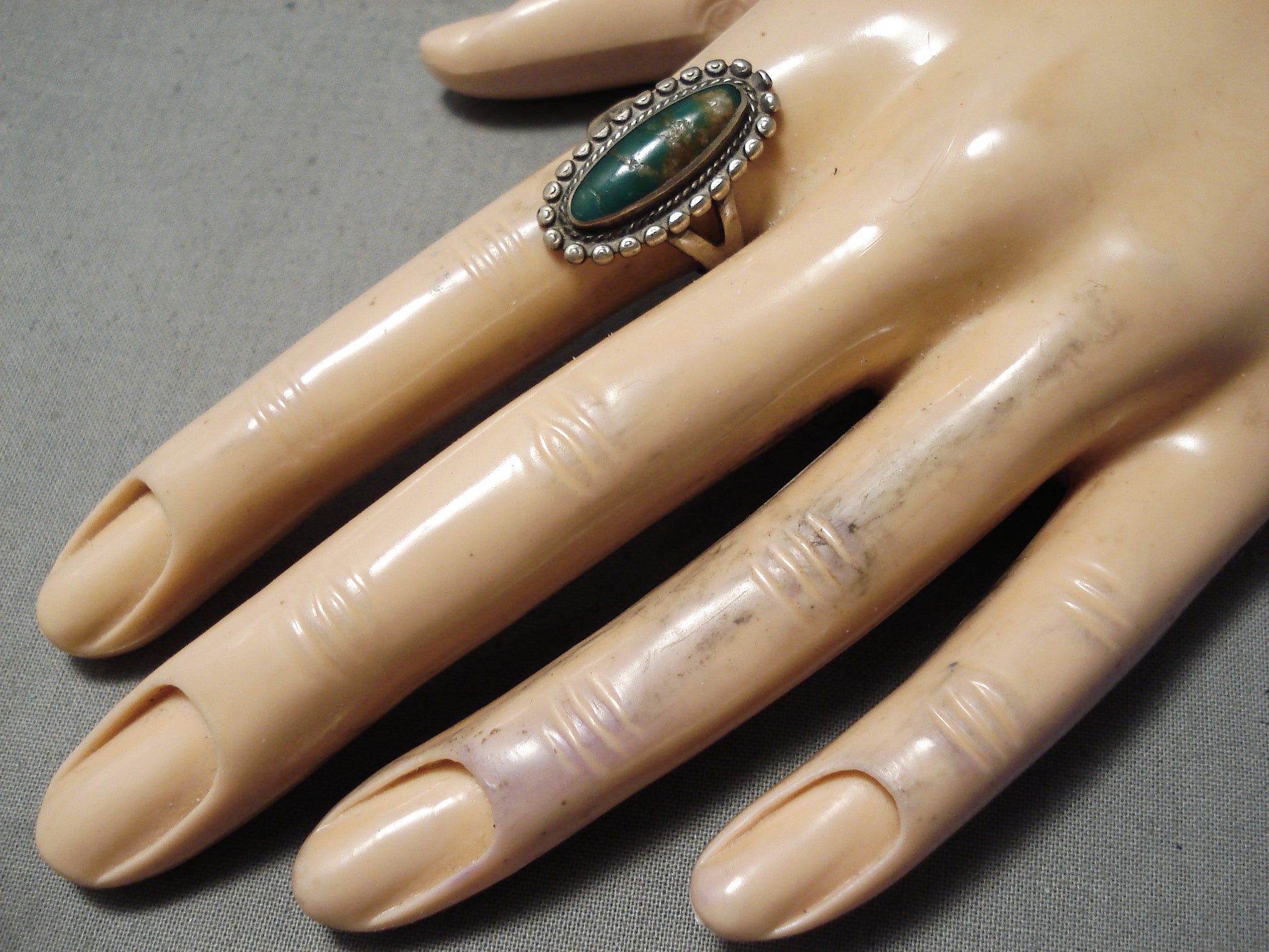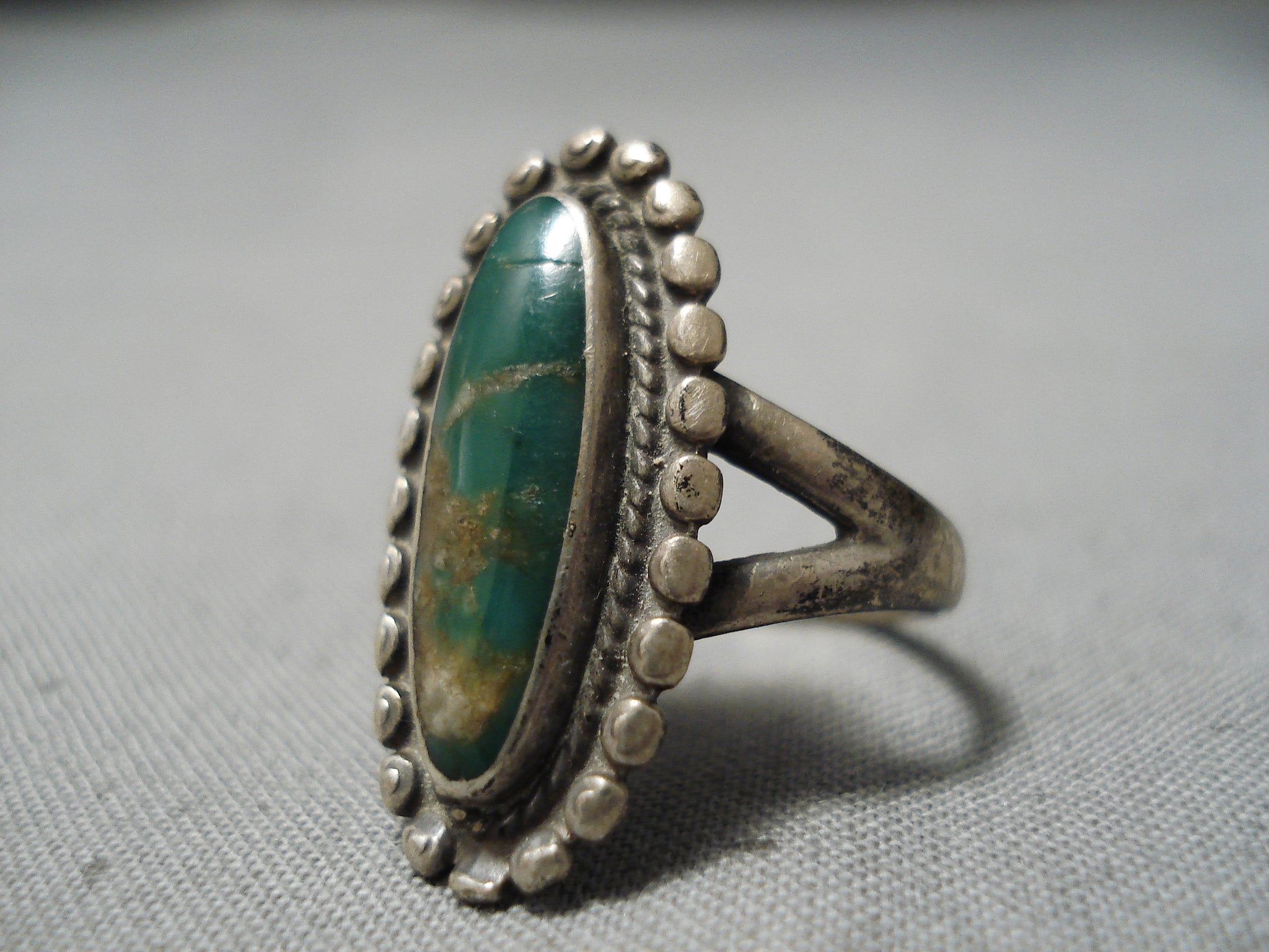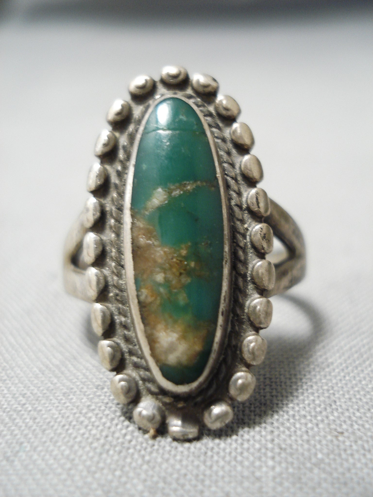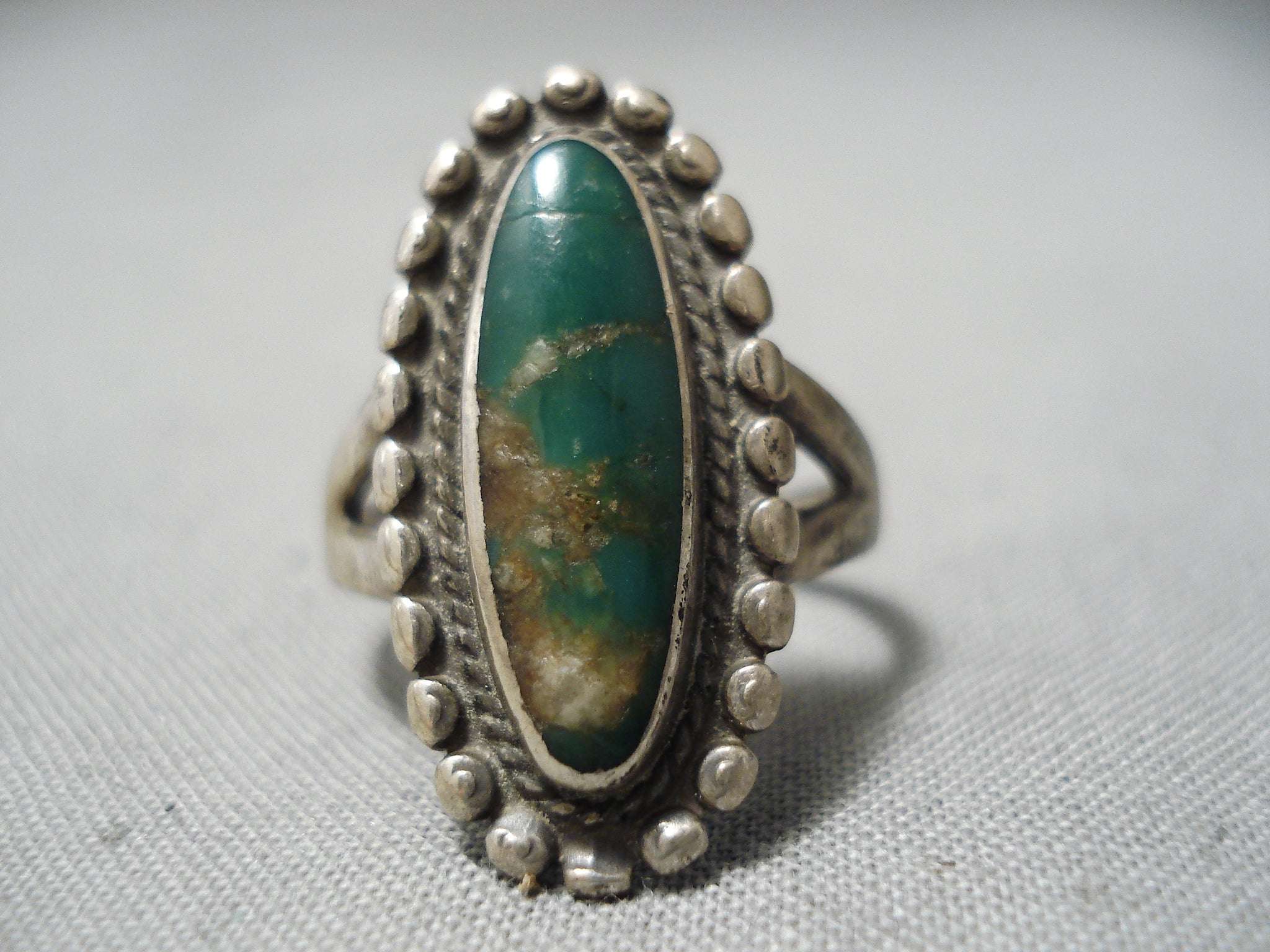 Early Vintage Native American Navajo Cerrillos Turquoise Sterling Silver Ring Old