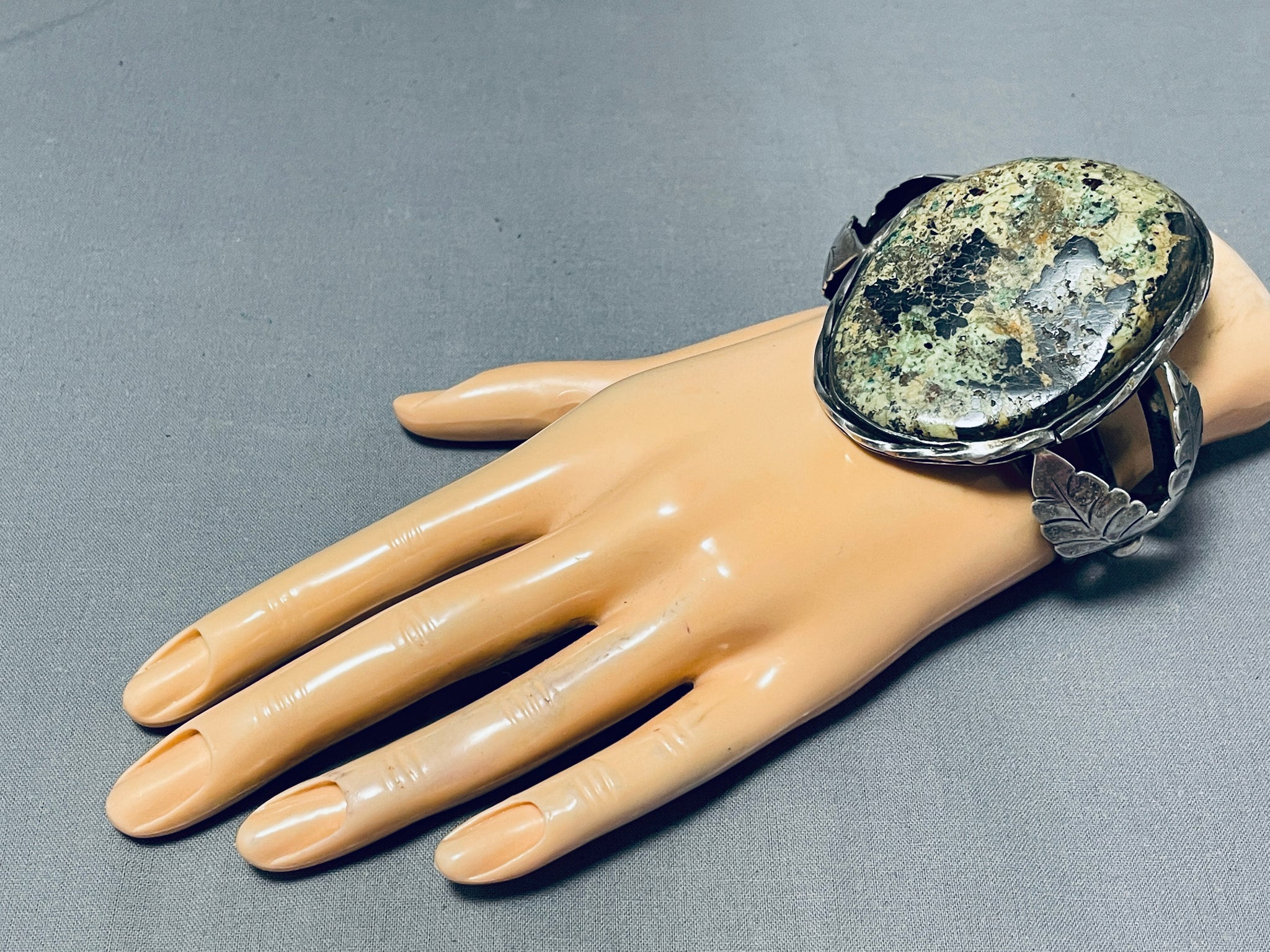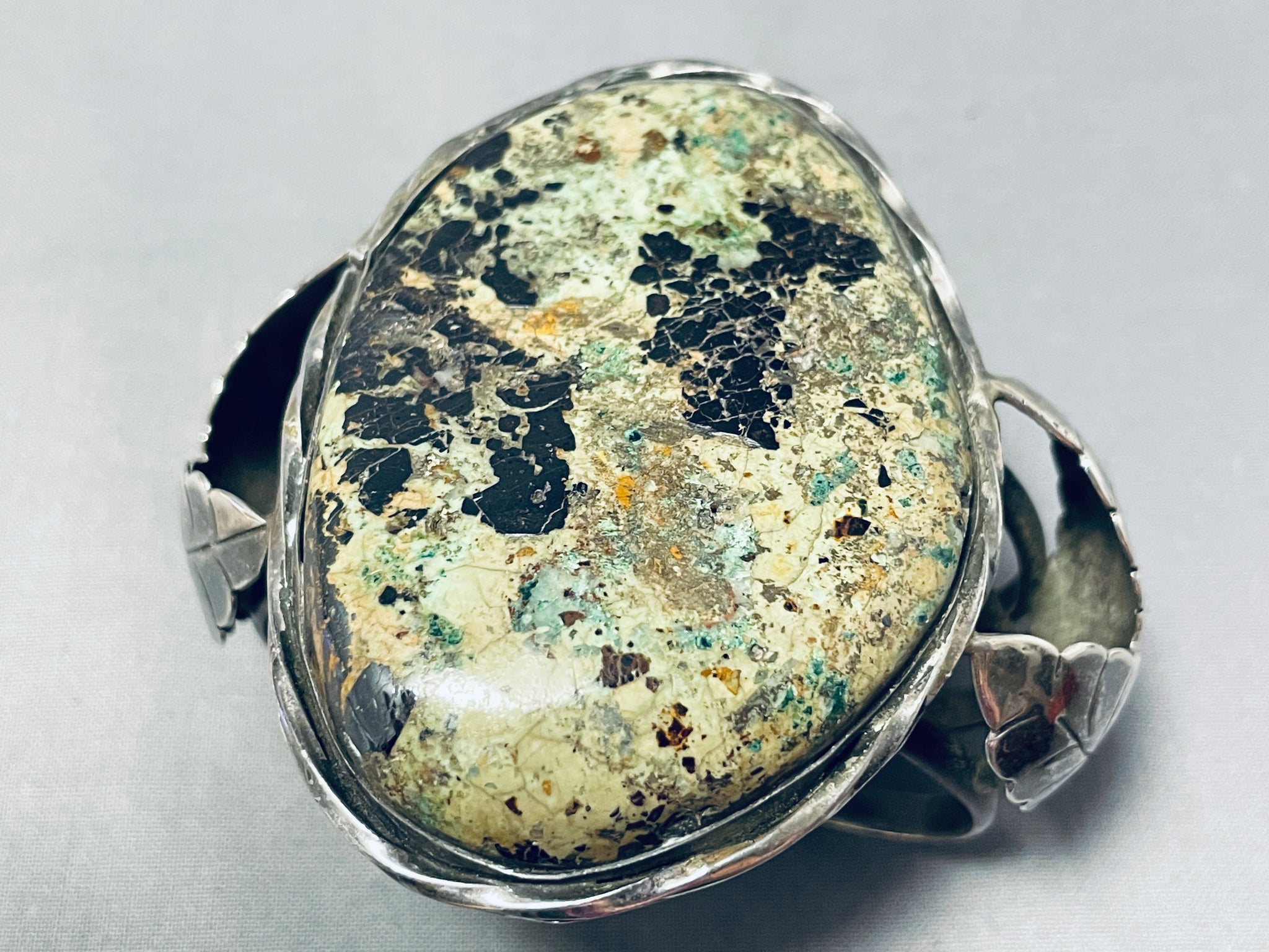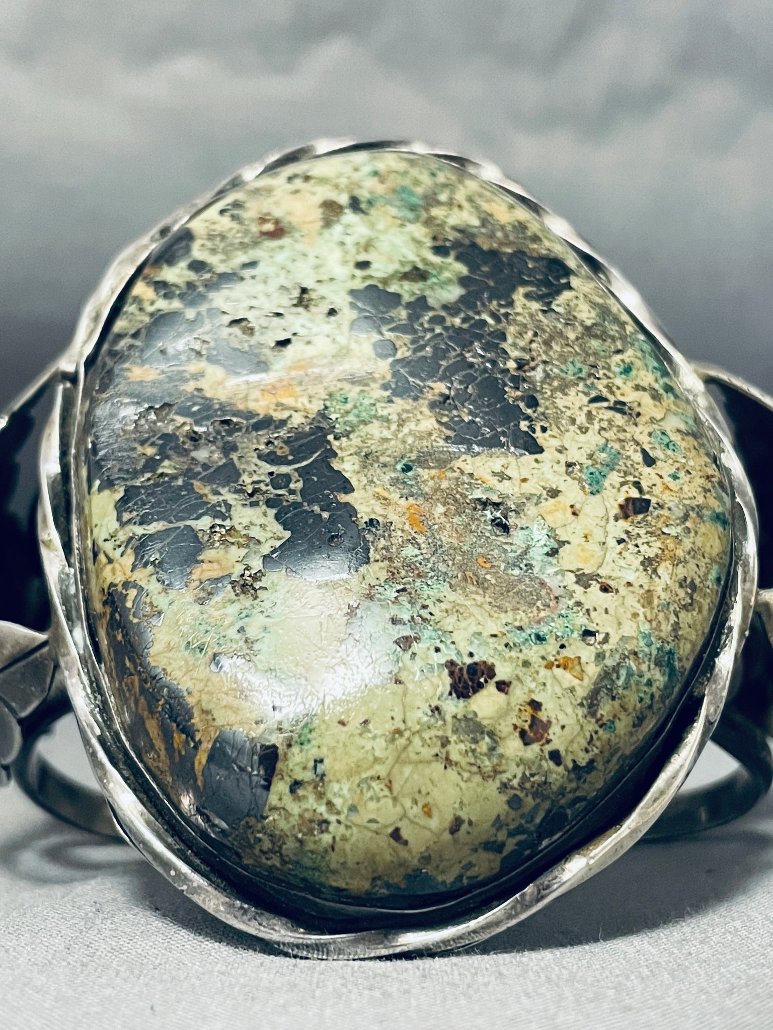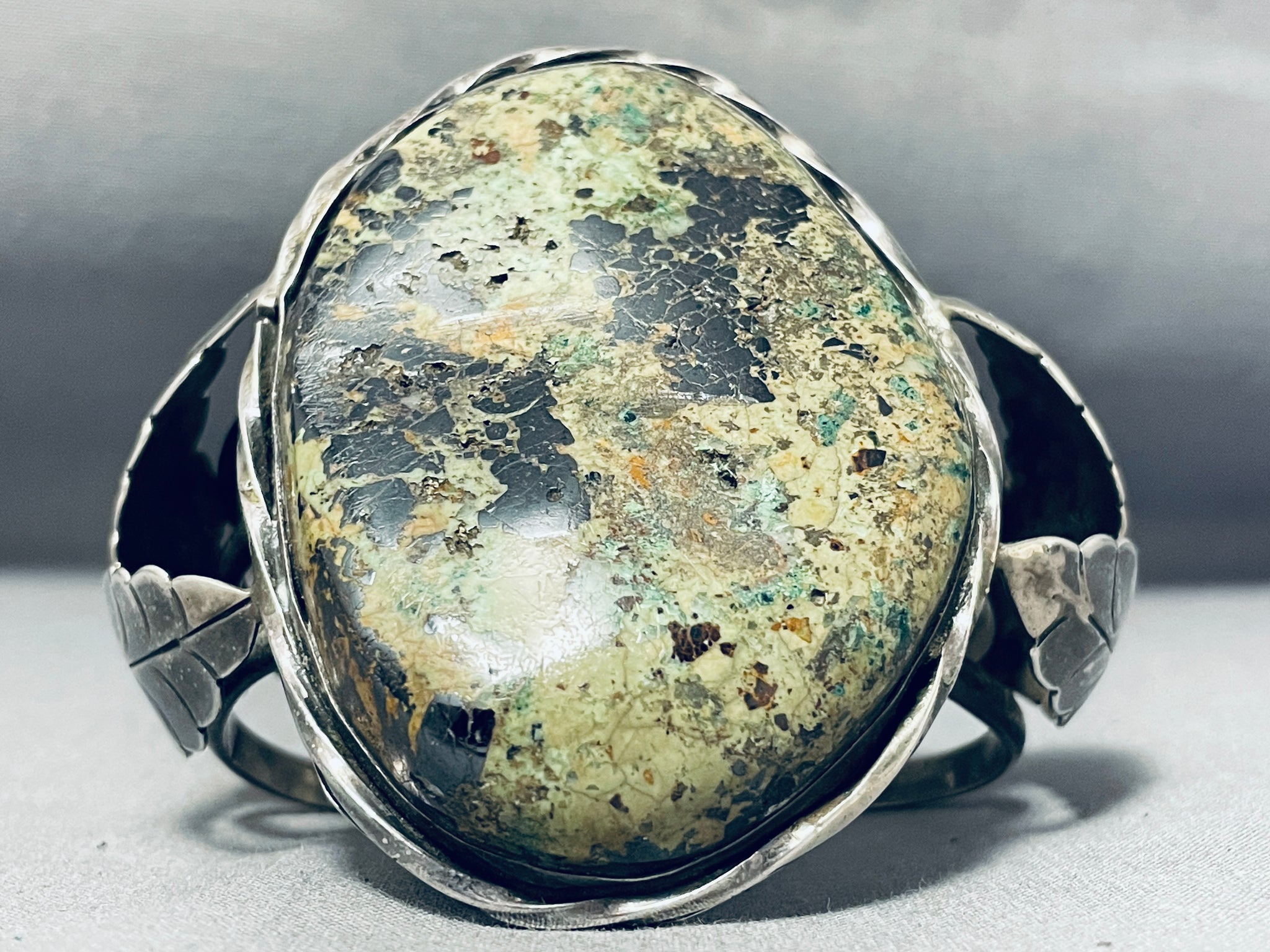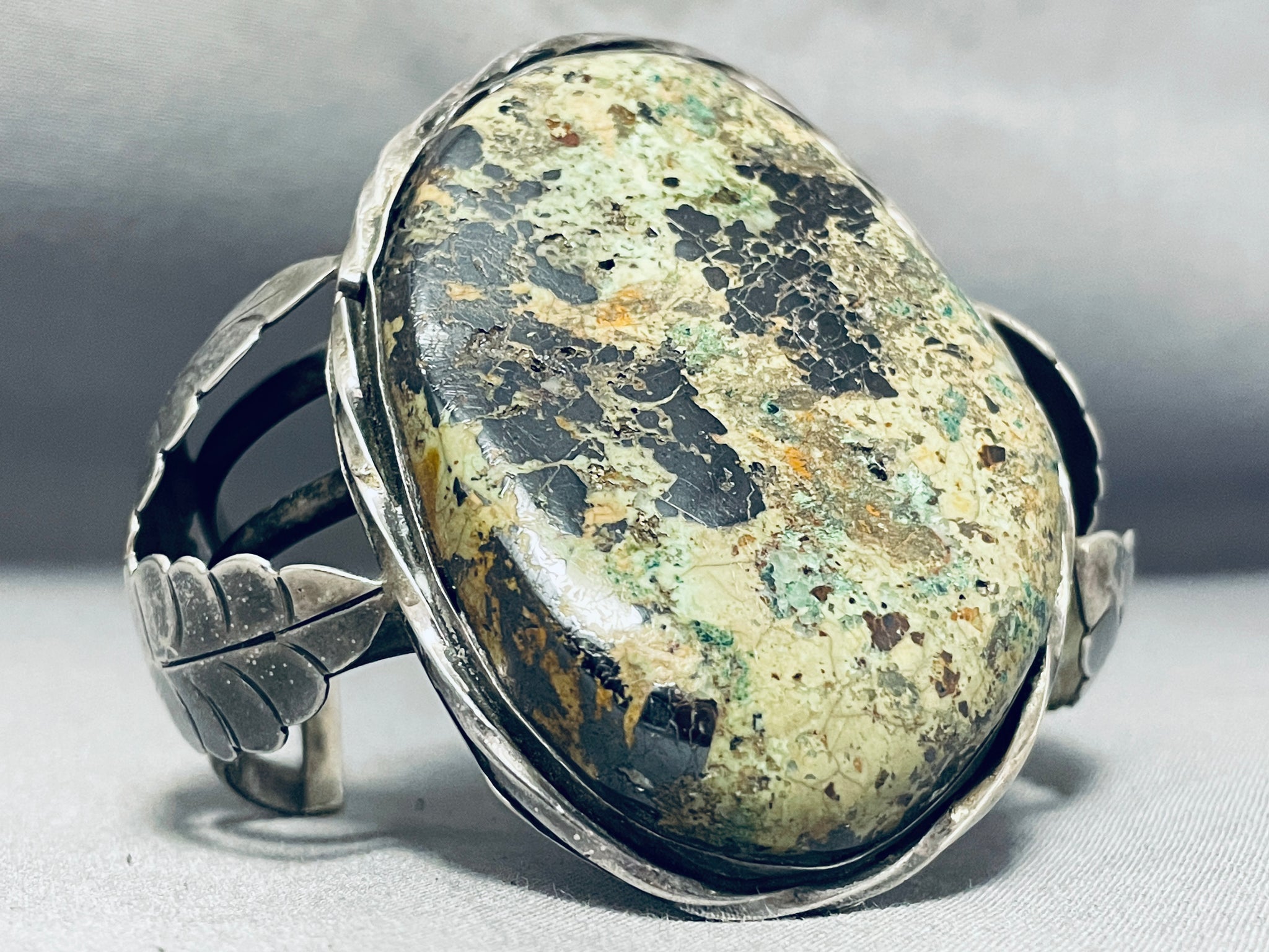 Early Vintage Native American Navajo Moss Green Turquoise Sterling Silver Bracelet