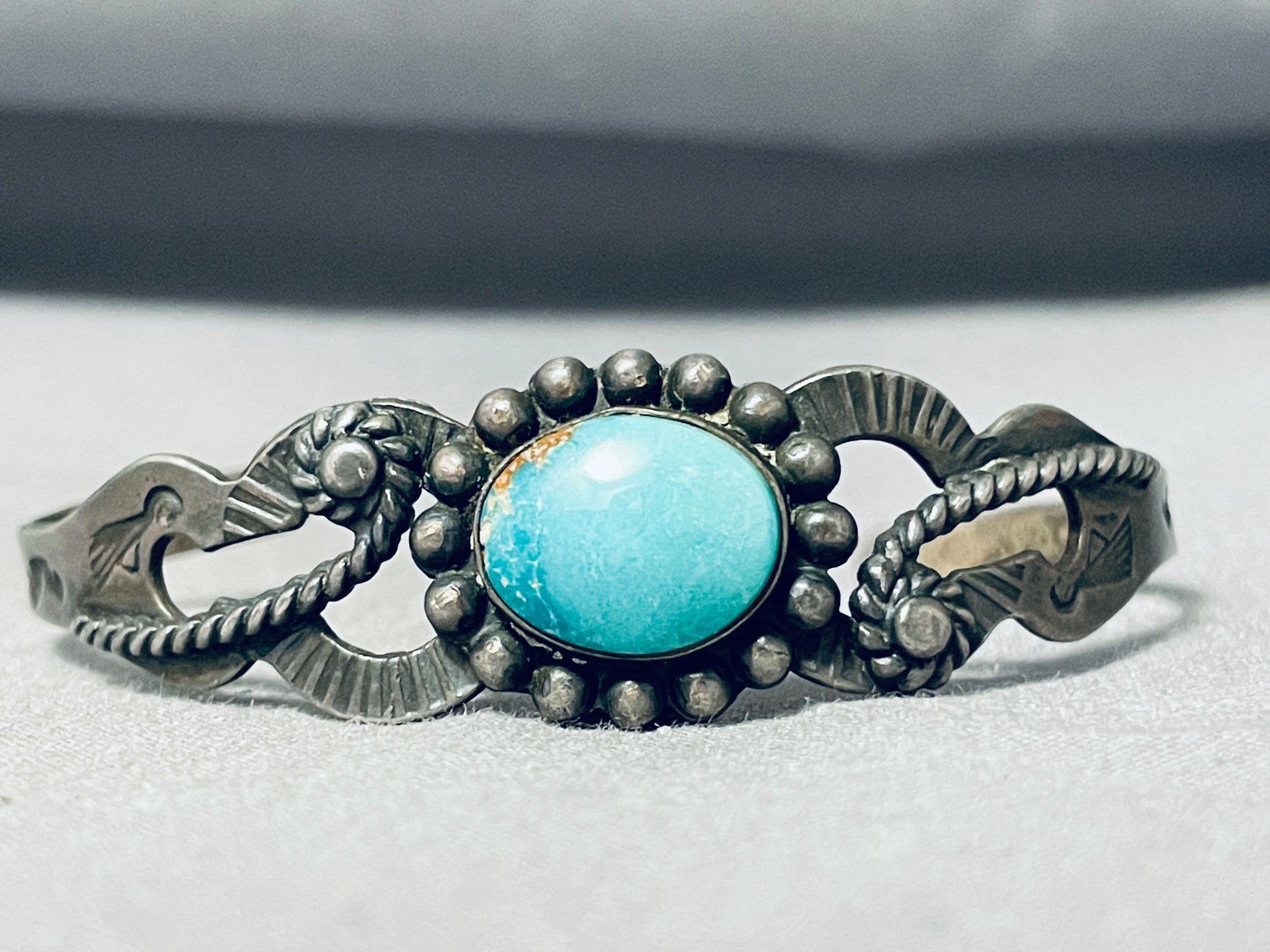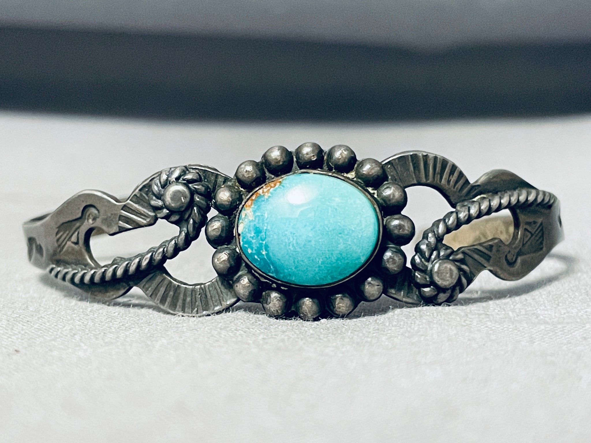 Early Vintage Native American Navajo Old Kingman Turquoise Sterling Silver Bracelet