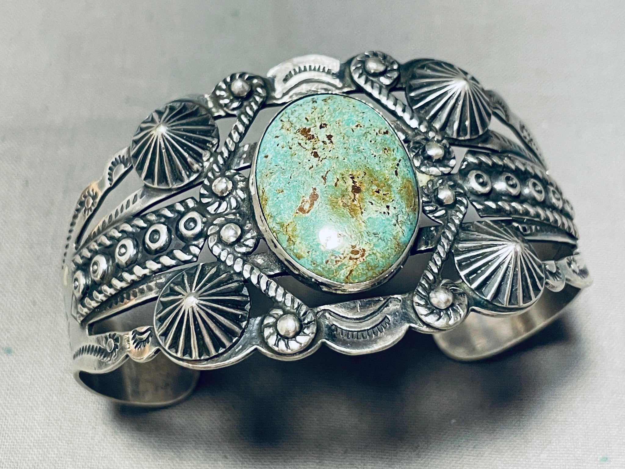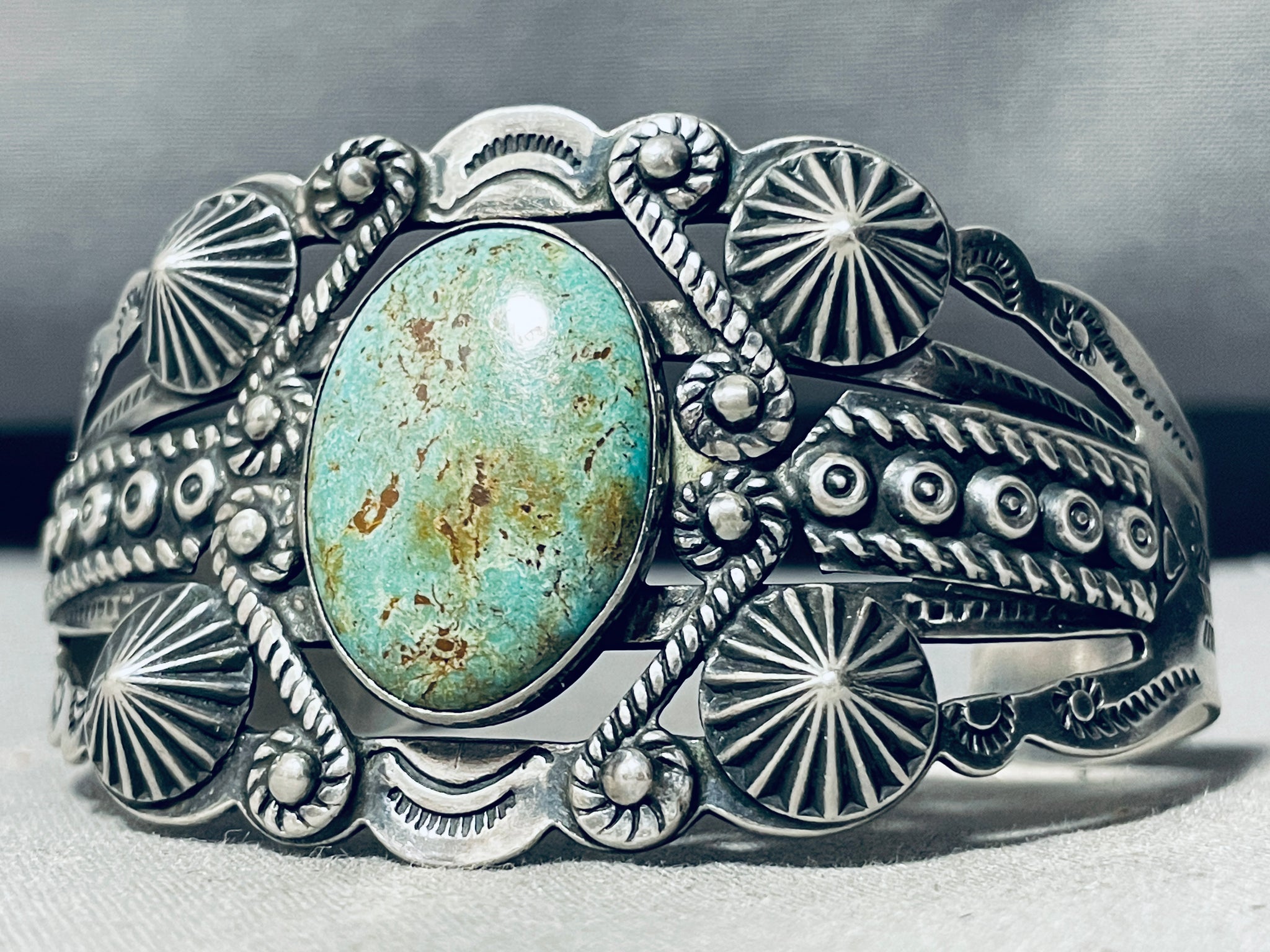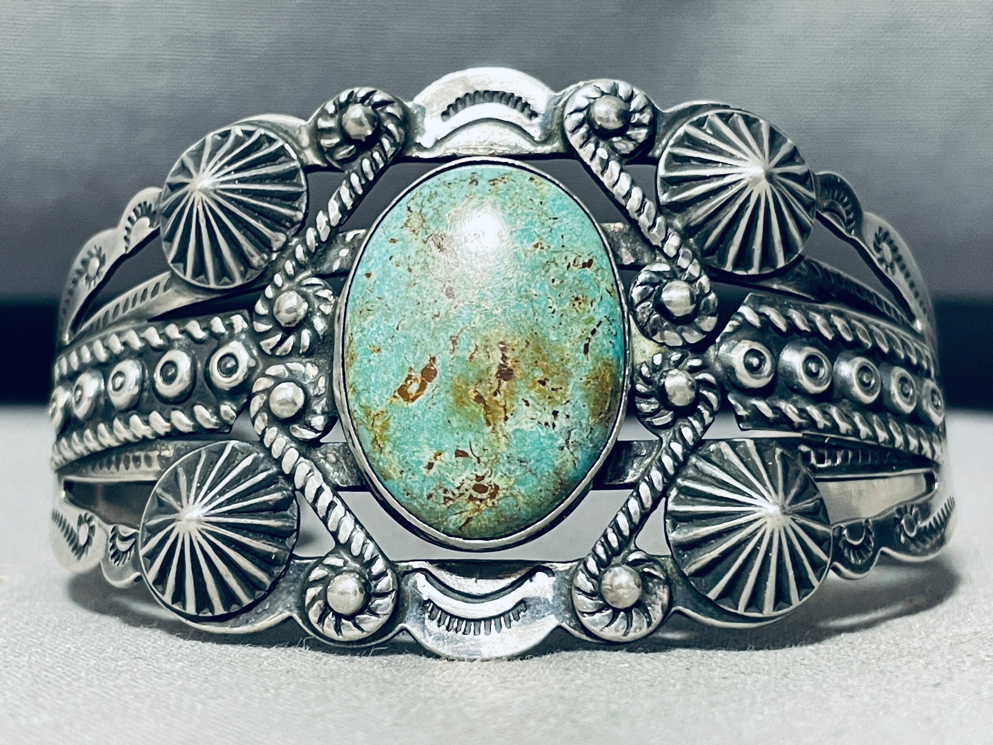 Early Vintage Native American Navajo Royston Turquoise Sterling Silver Button Bracelet