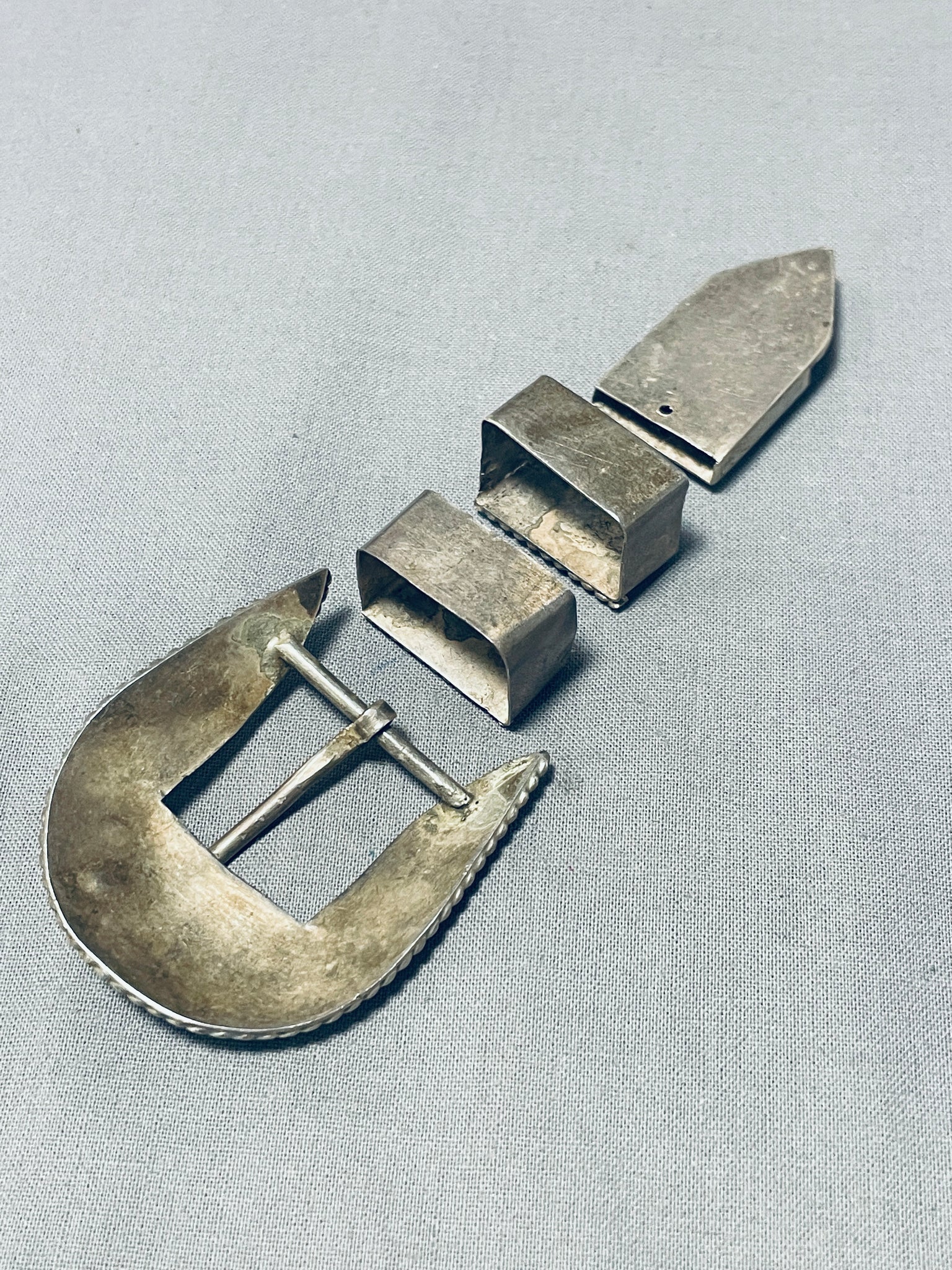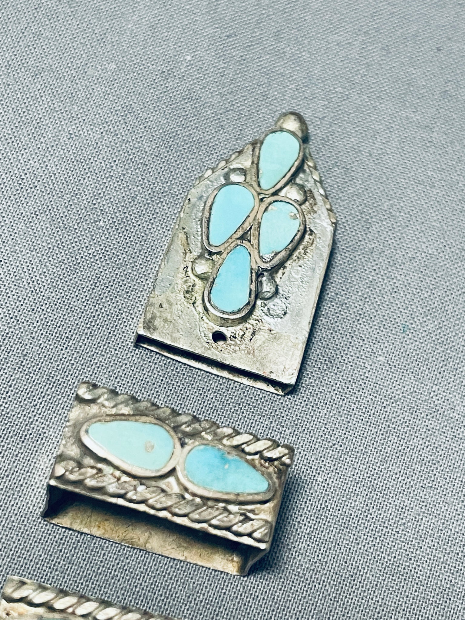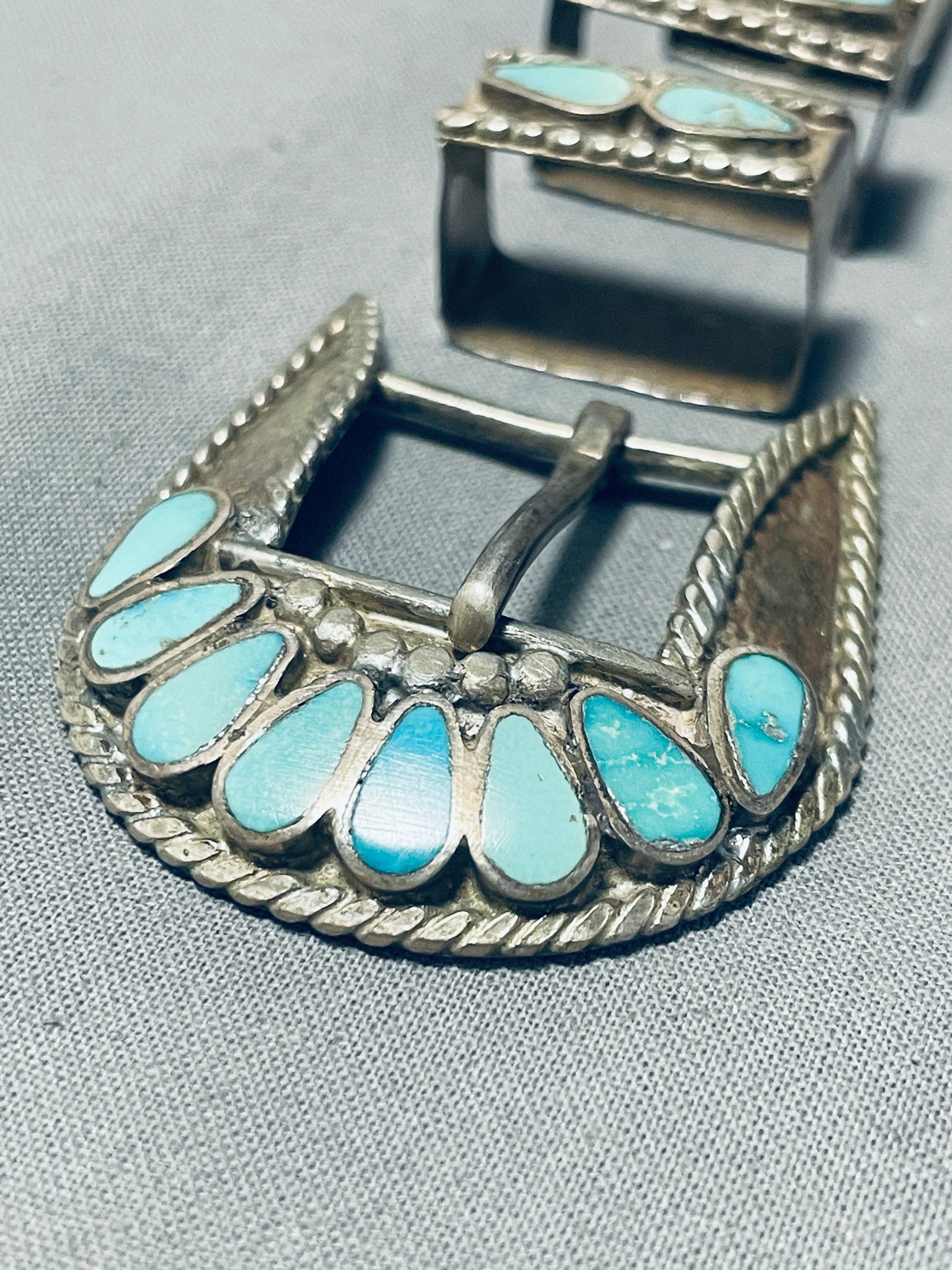 Early Vintage Native American Zuni Dishta Turquoise Sterling Silver Ranger Buckle Set