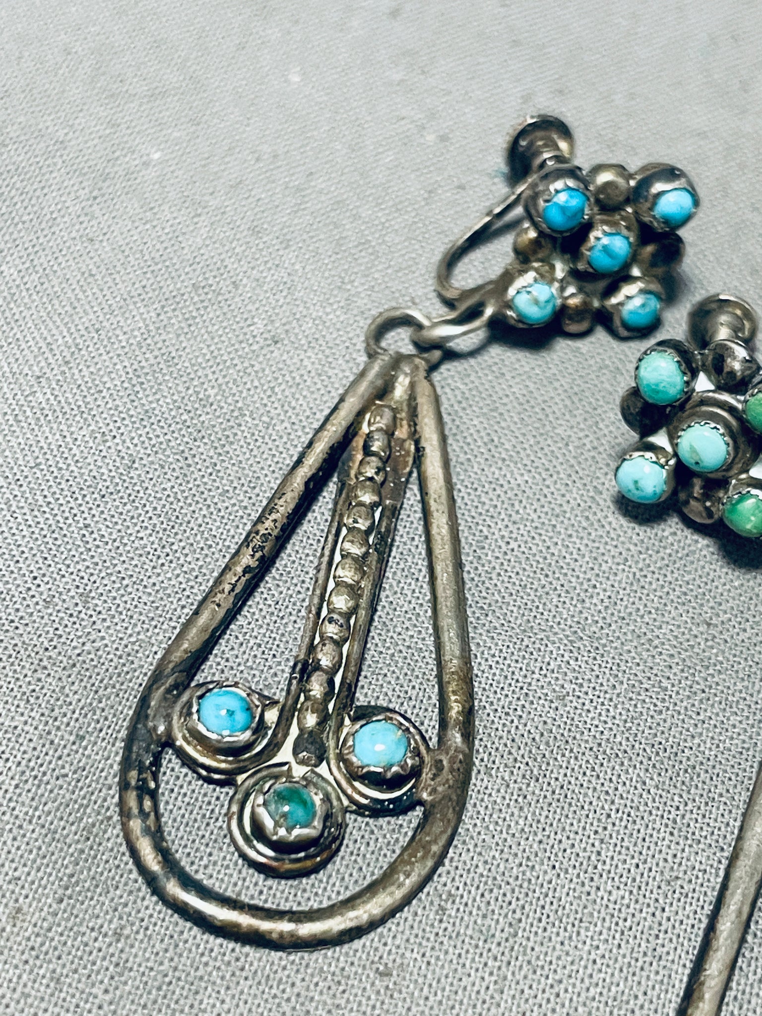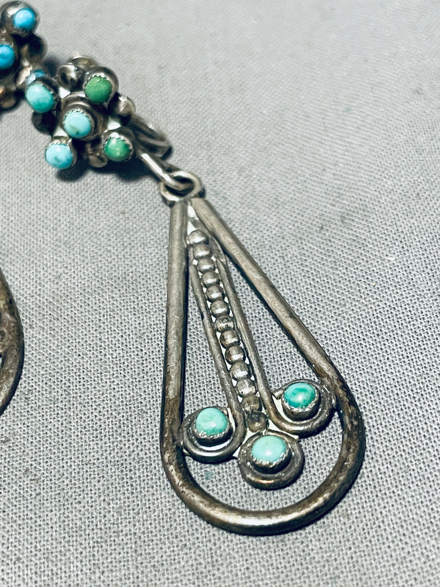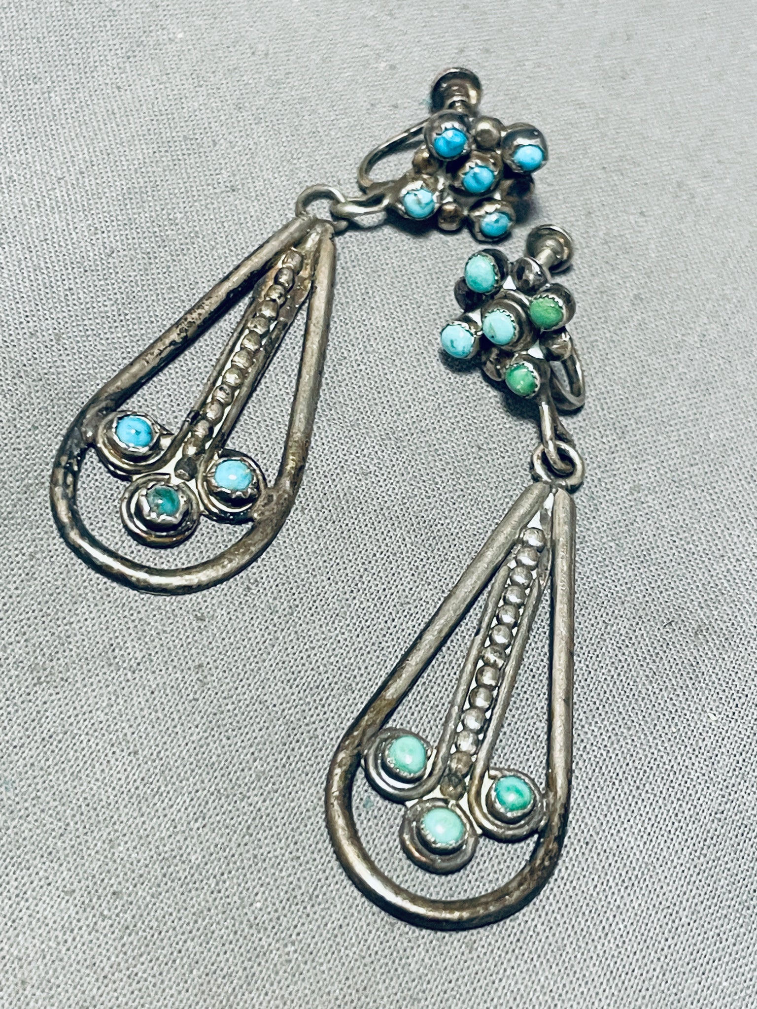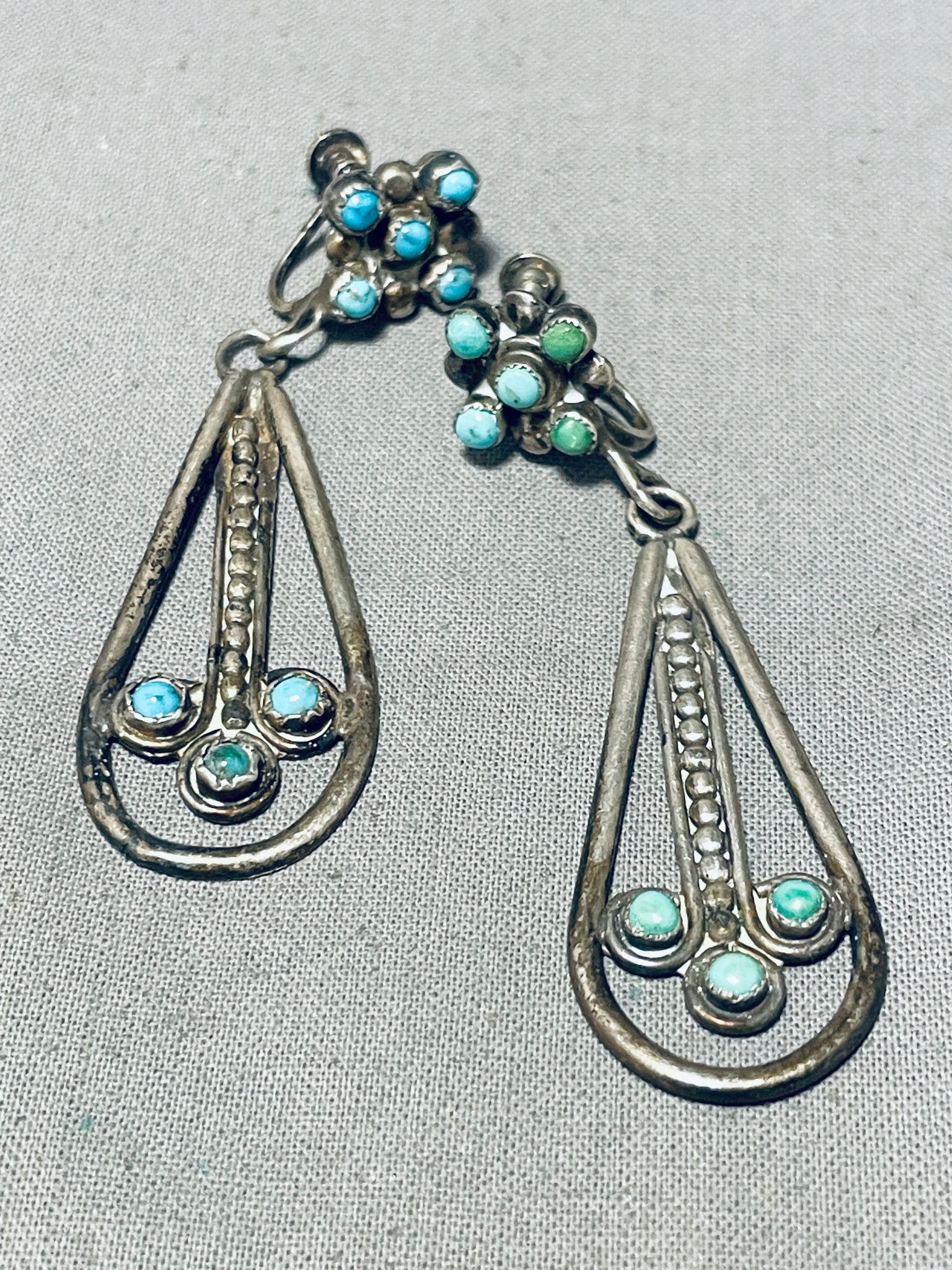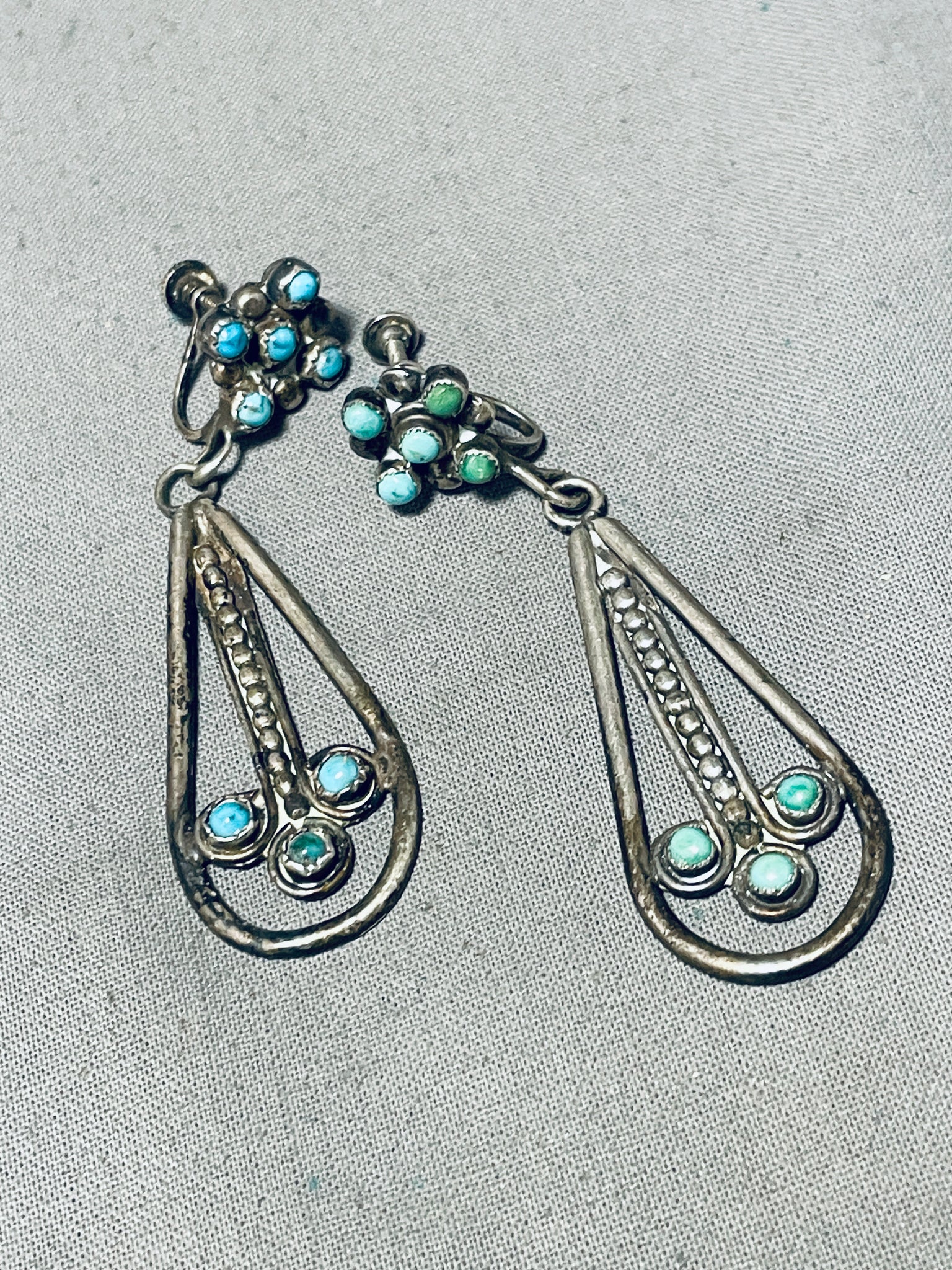Early Vintage Native American Zuni Turquoise Snake Eyes Sterling Silver Earrings Old