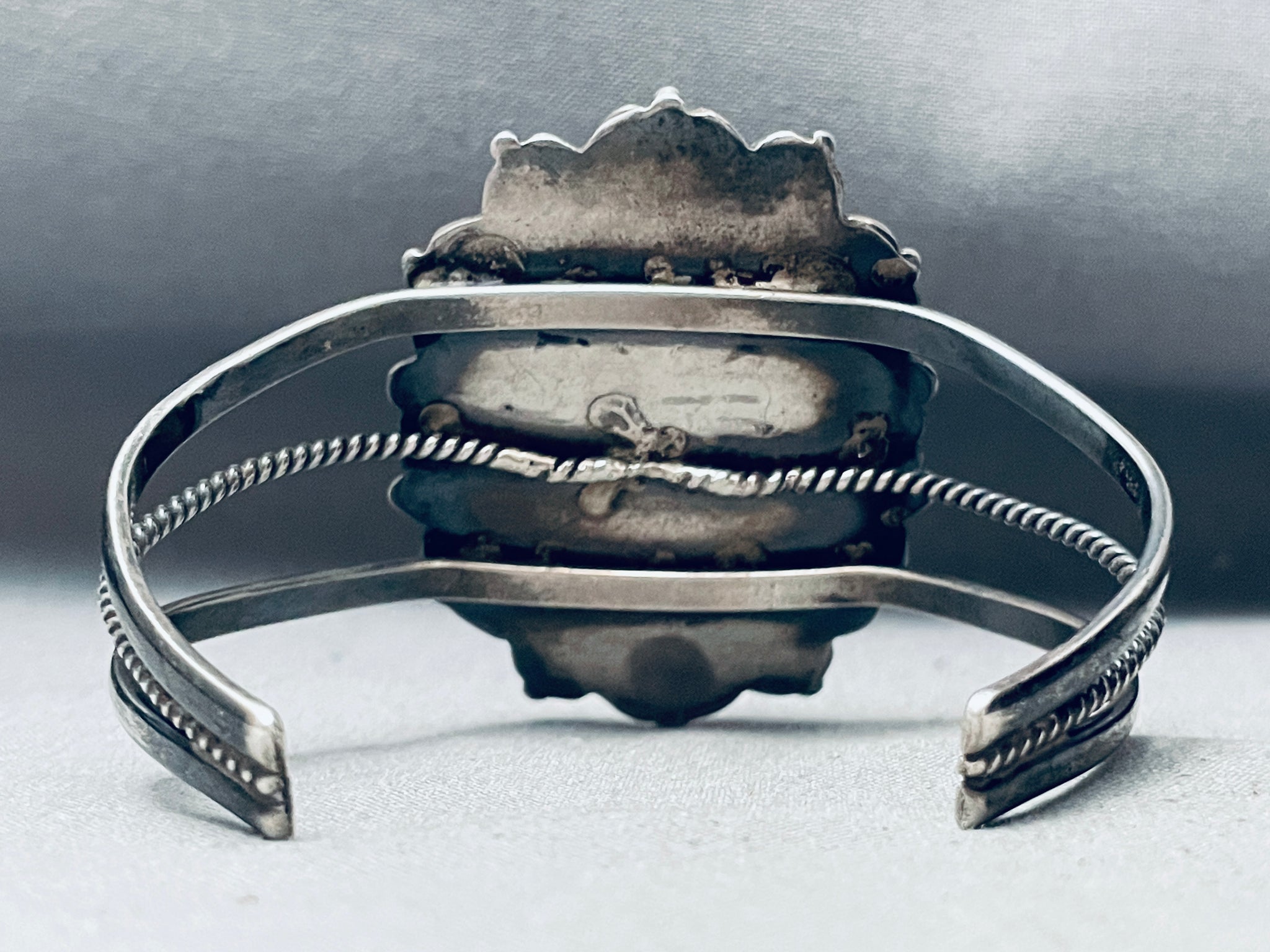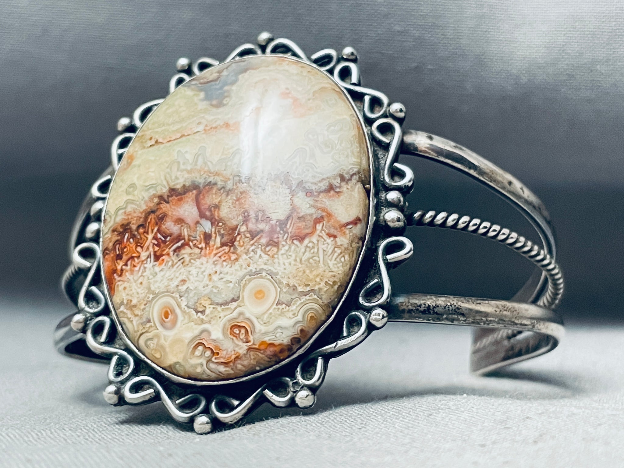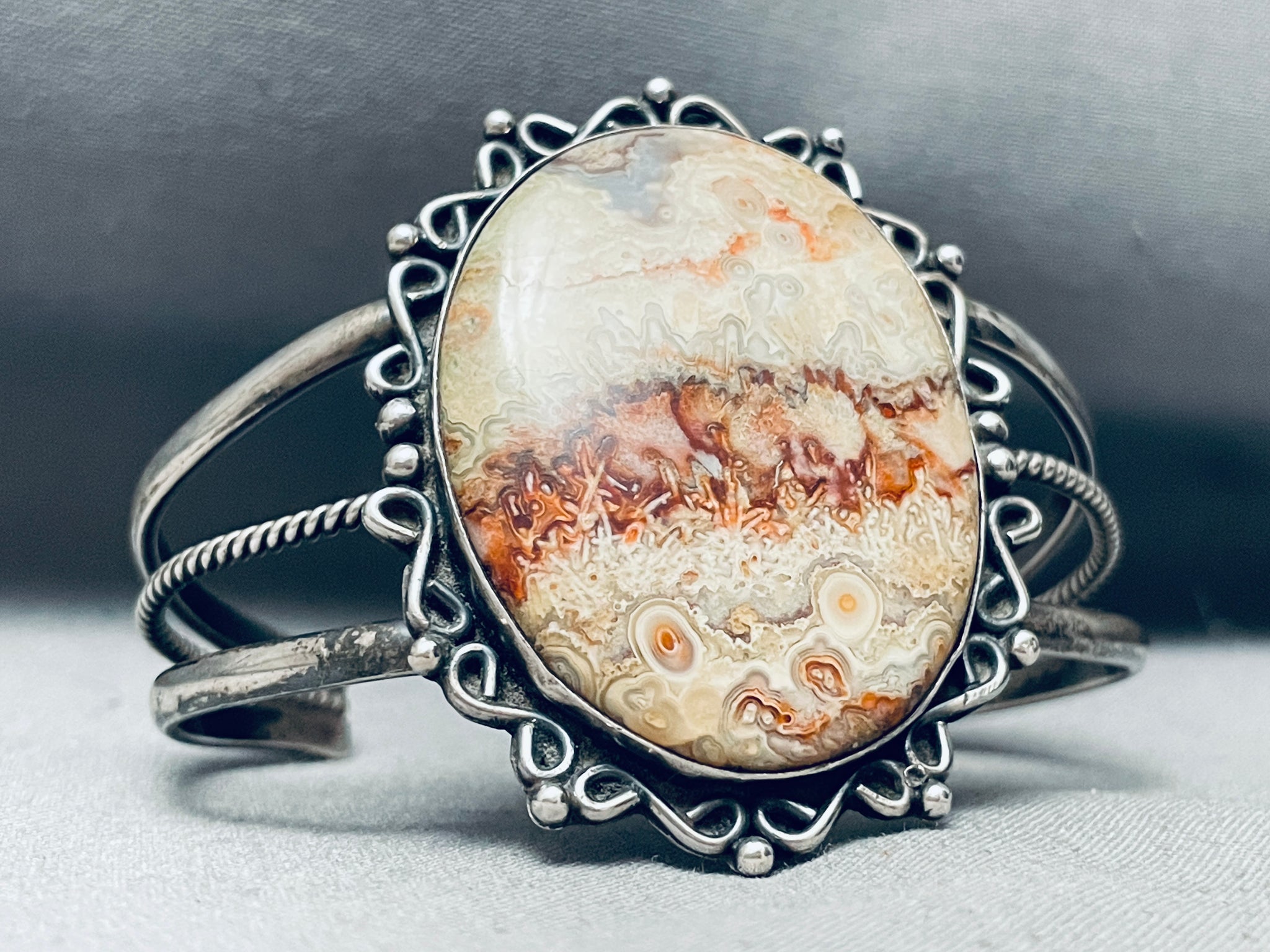 Earth Stone Agate Vintage Native American Navajo Sterling Silver Bracelet
