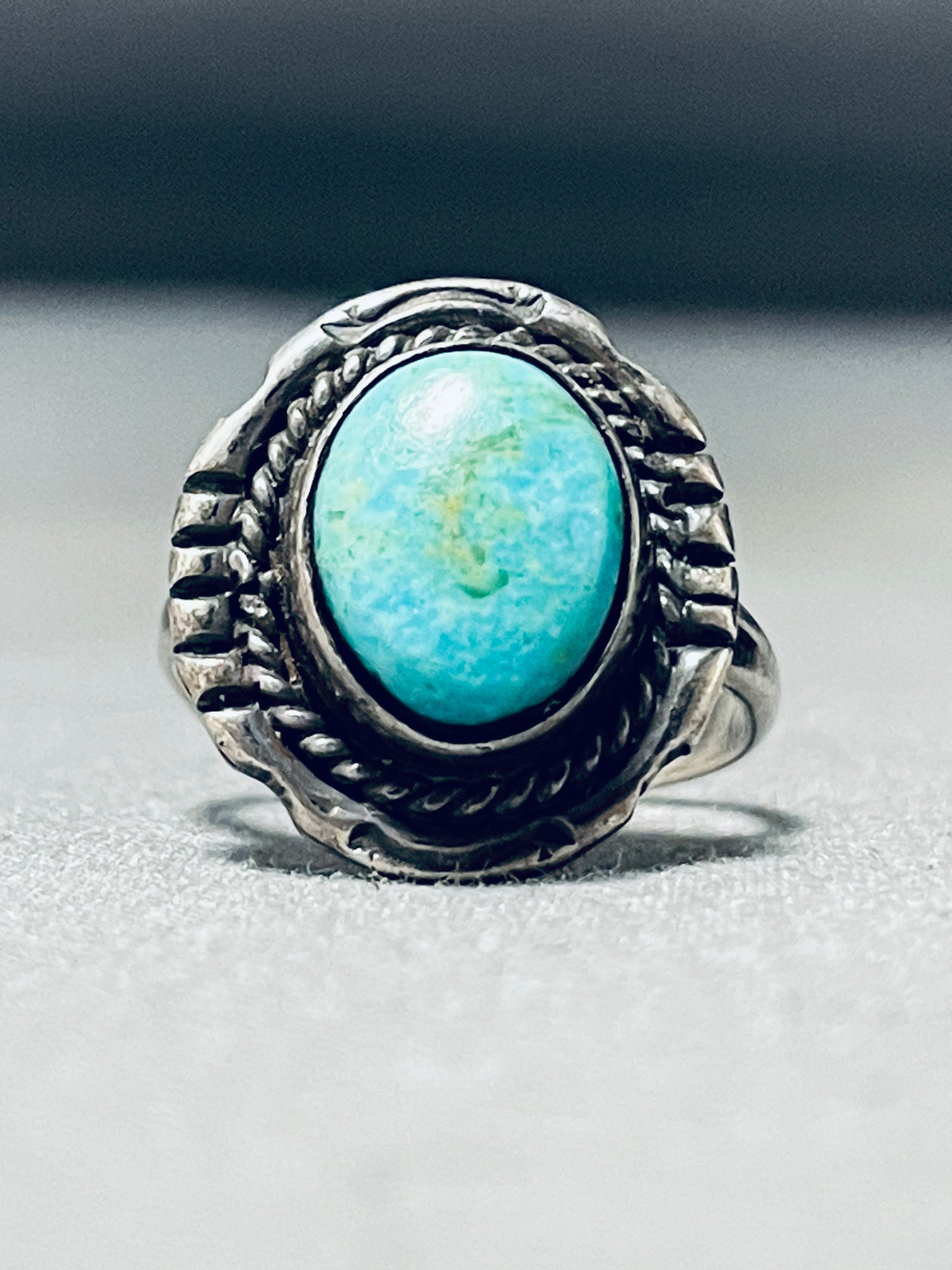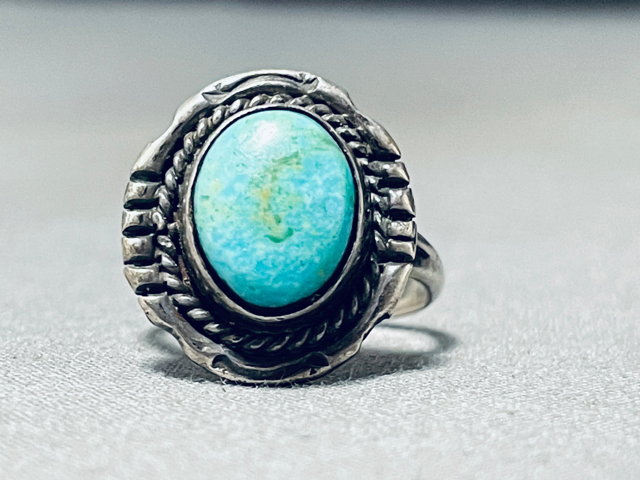 Easter Blue Turquoise Vintage Native American Navajo Sterling Silver Ring Old