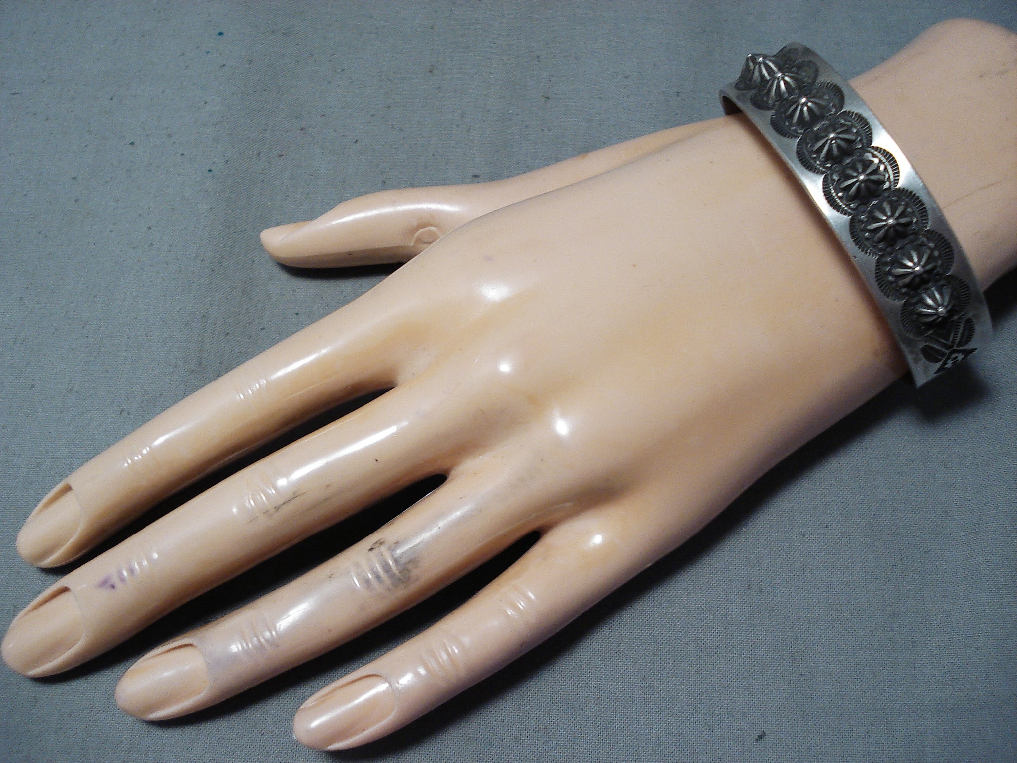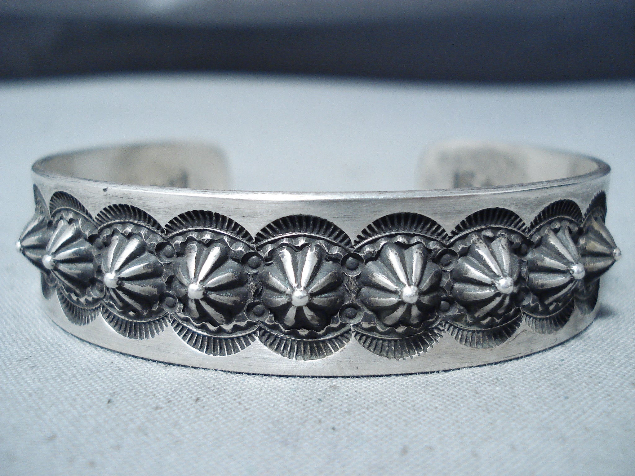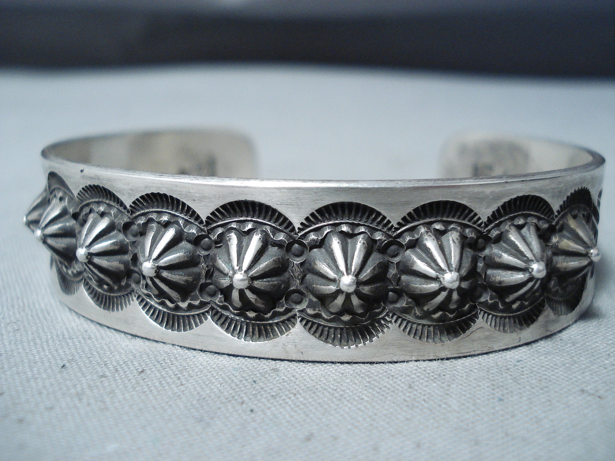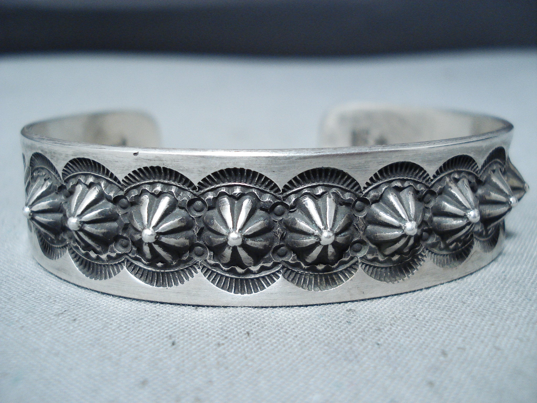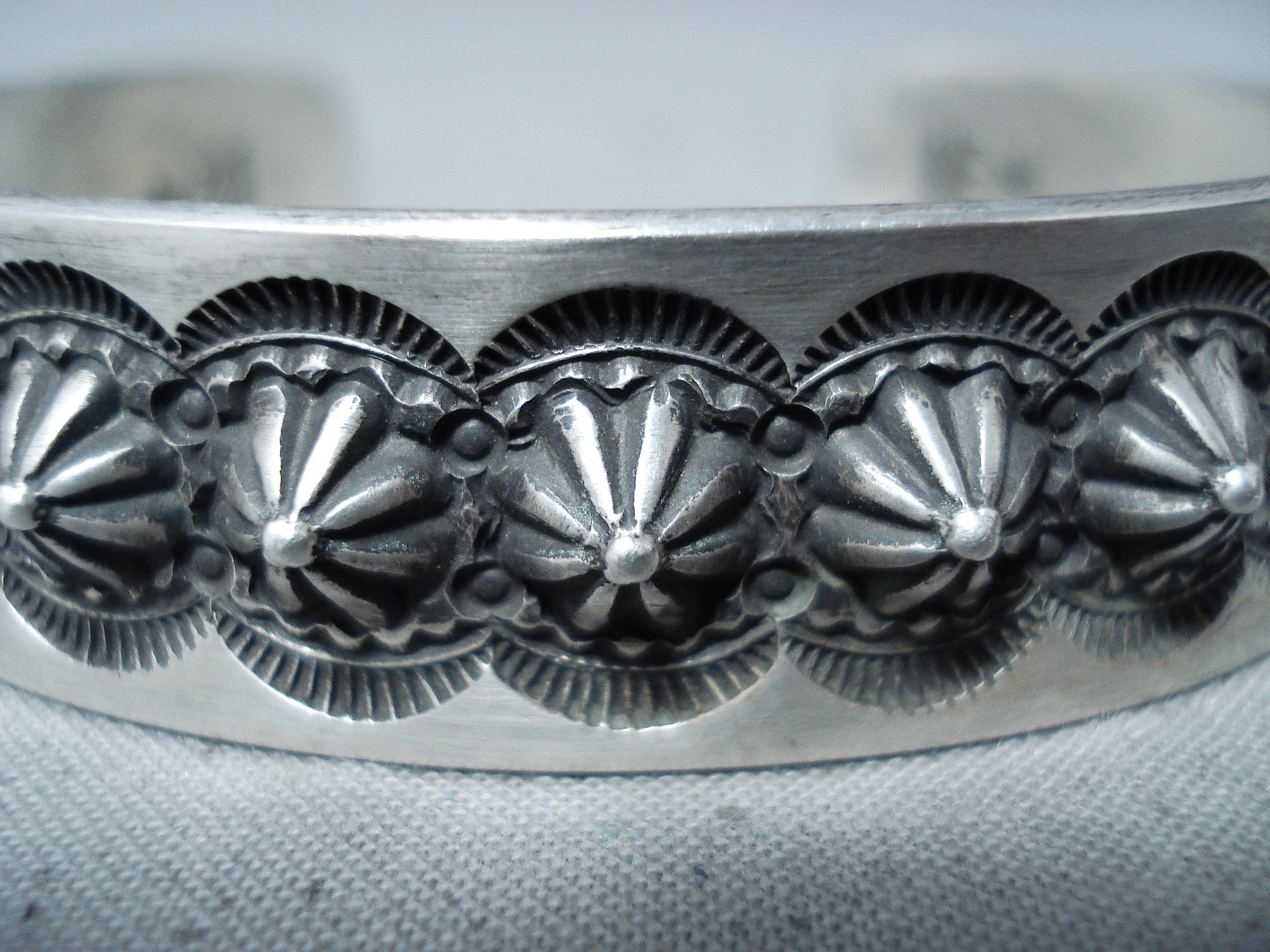 Eddie Smith Vintage Native American Navajo Hand Repoussed Sterling Silver Bracelet
