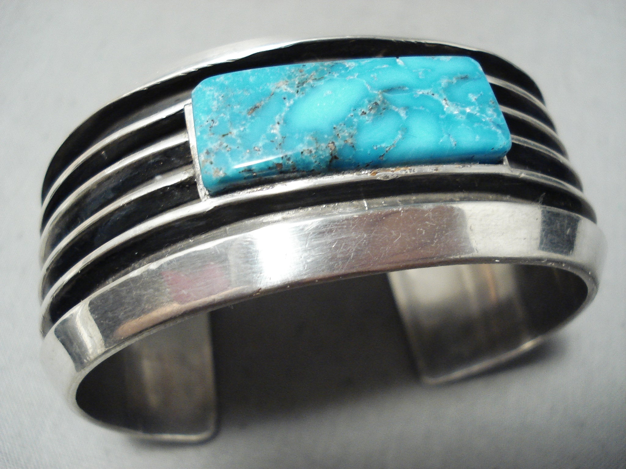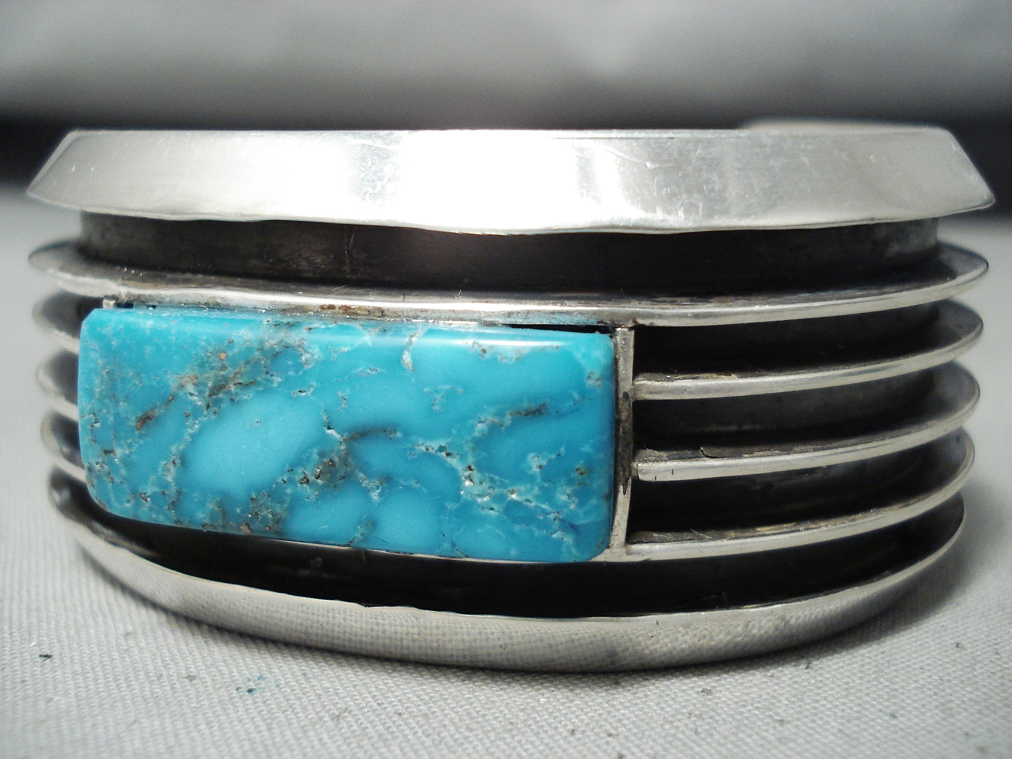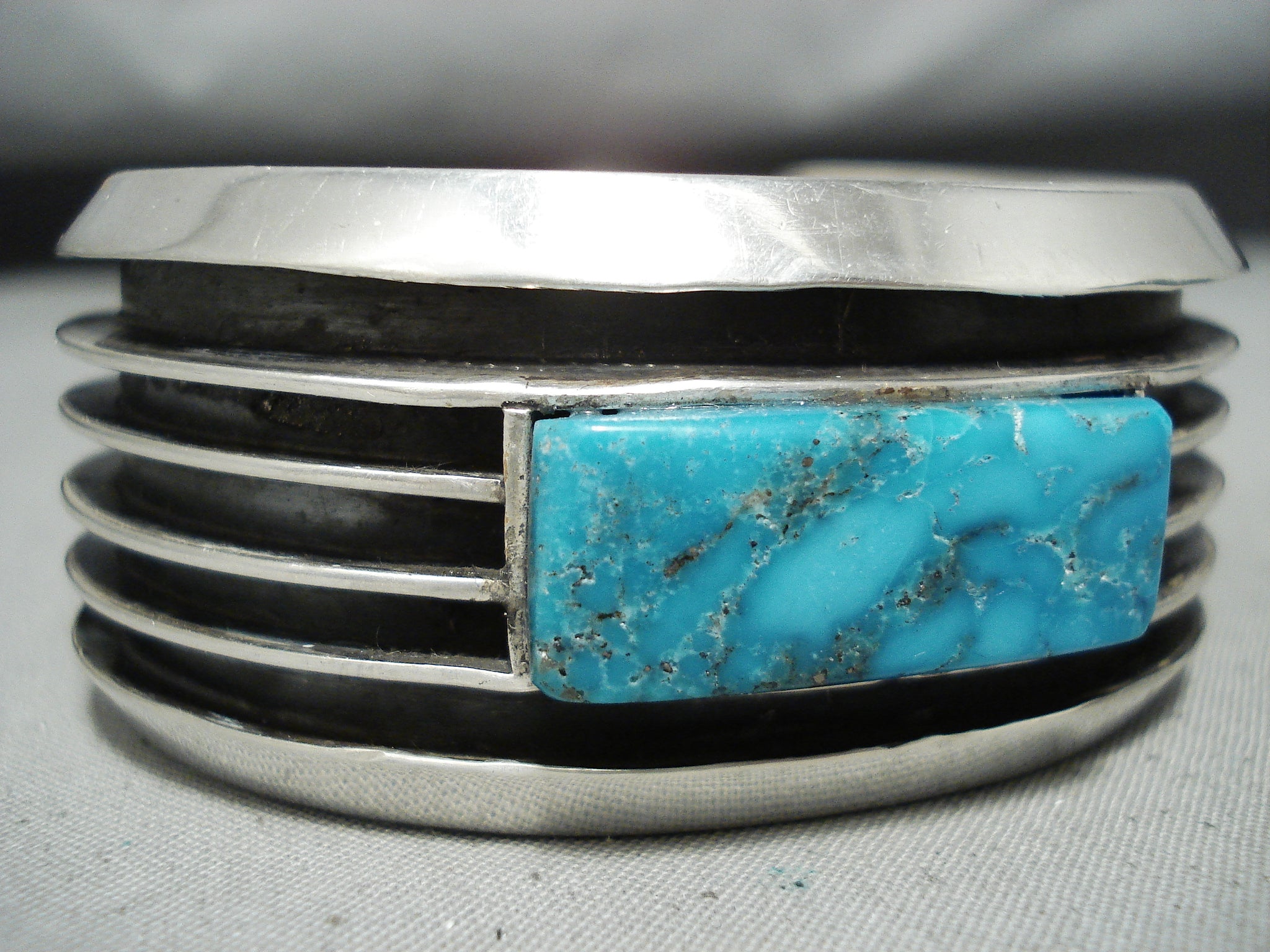 Eddy Smith Vintage Native American Navajo Blue Thunder Turquoise Sterling Silver Bracelet