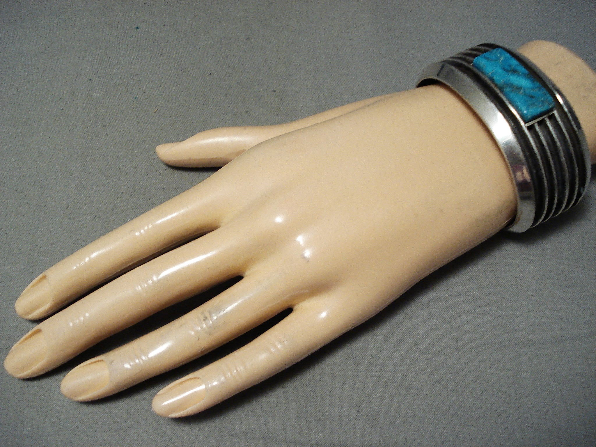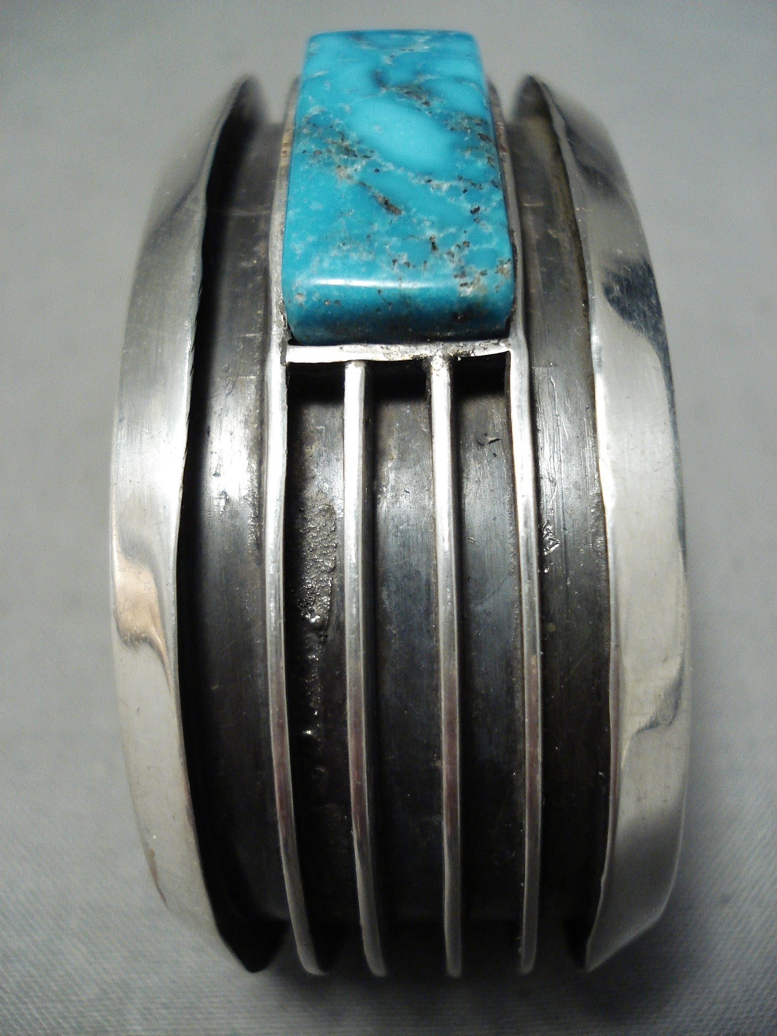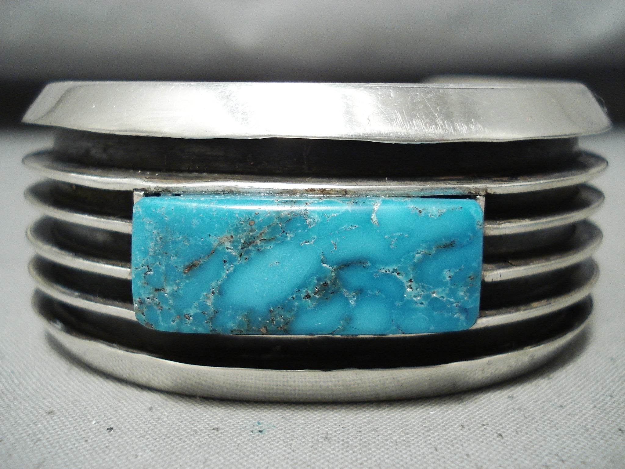 Eddy Smith Vintage Native American Navajo Blue Thunder Turquoise Sterling Silver Bracelet